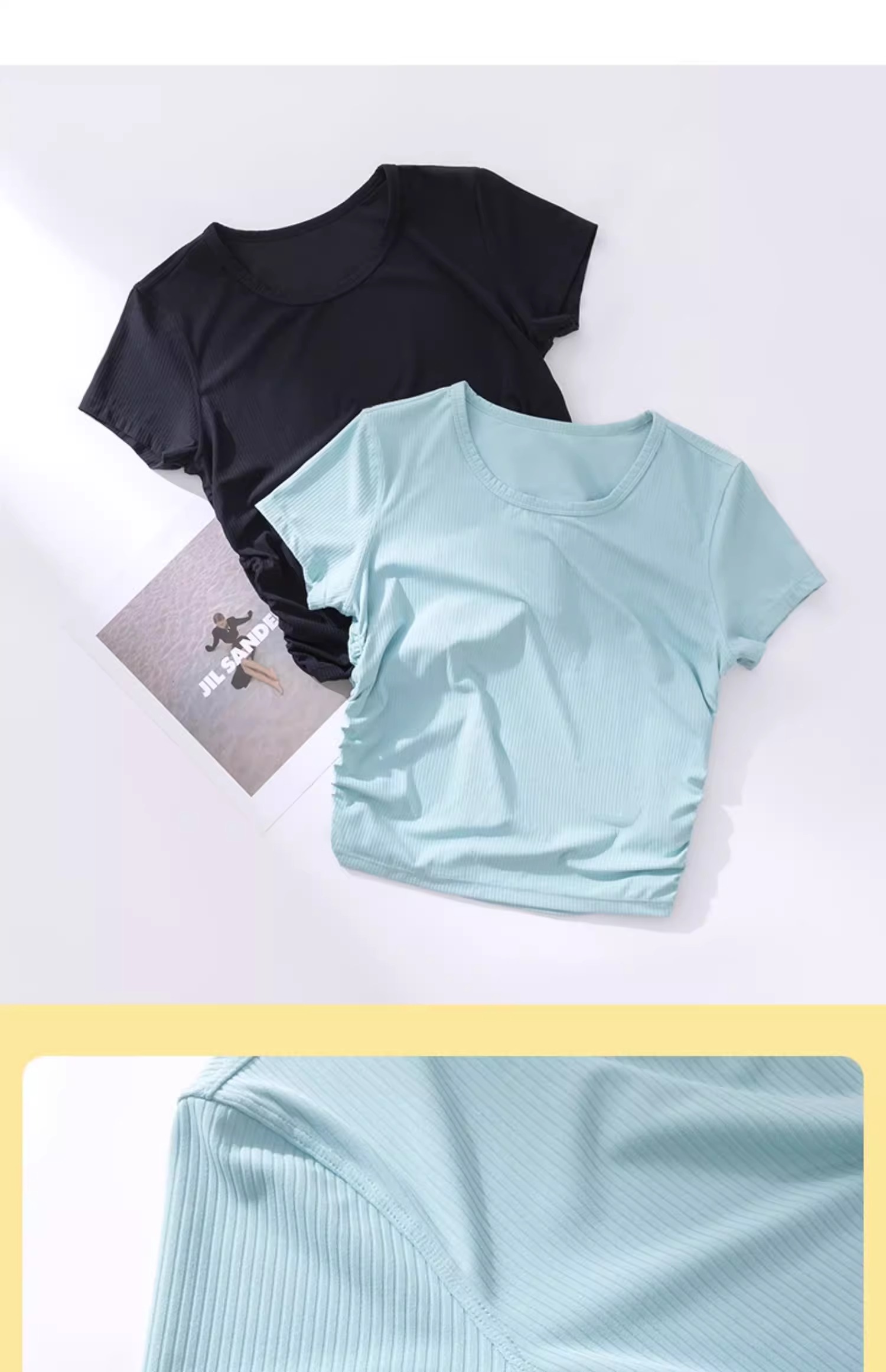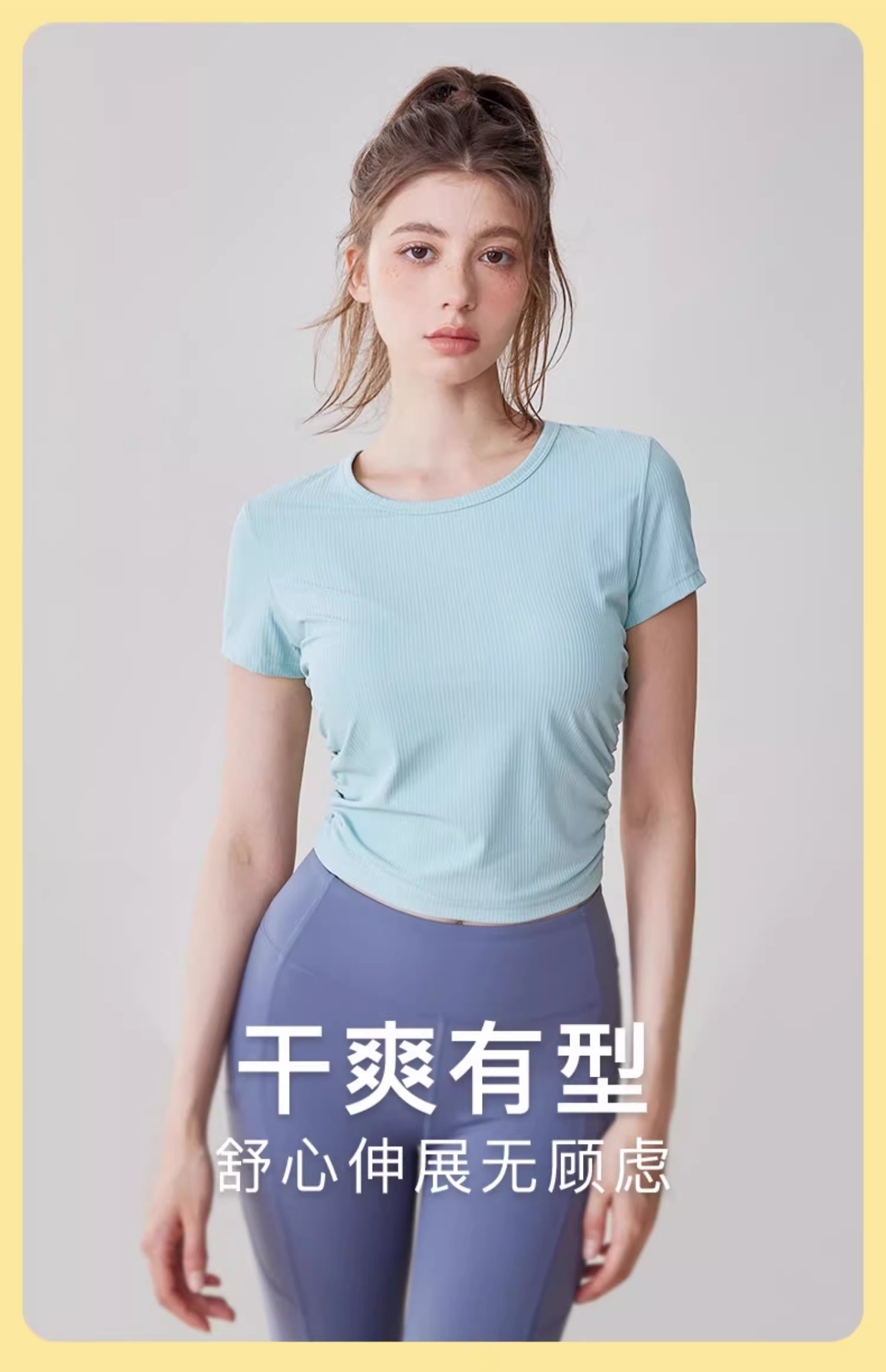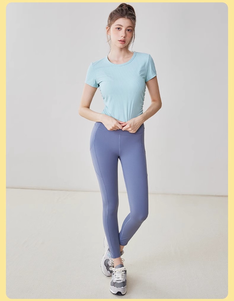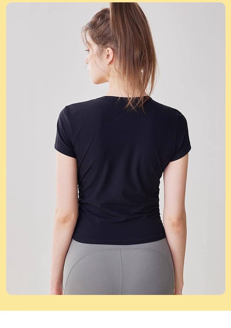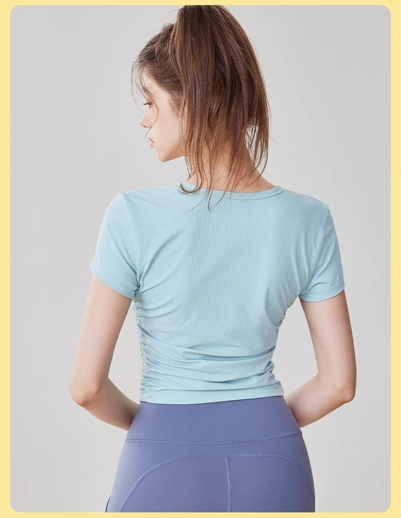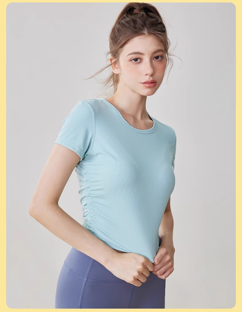 【3~5天发货】跃牌【美度空间】系列 Nuls罗纹裸感夏季瑜伽服女修身显瘦运动瑜伽短袖夏款透气健身上衣TX1585(无胸垫)