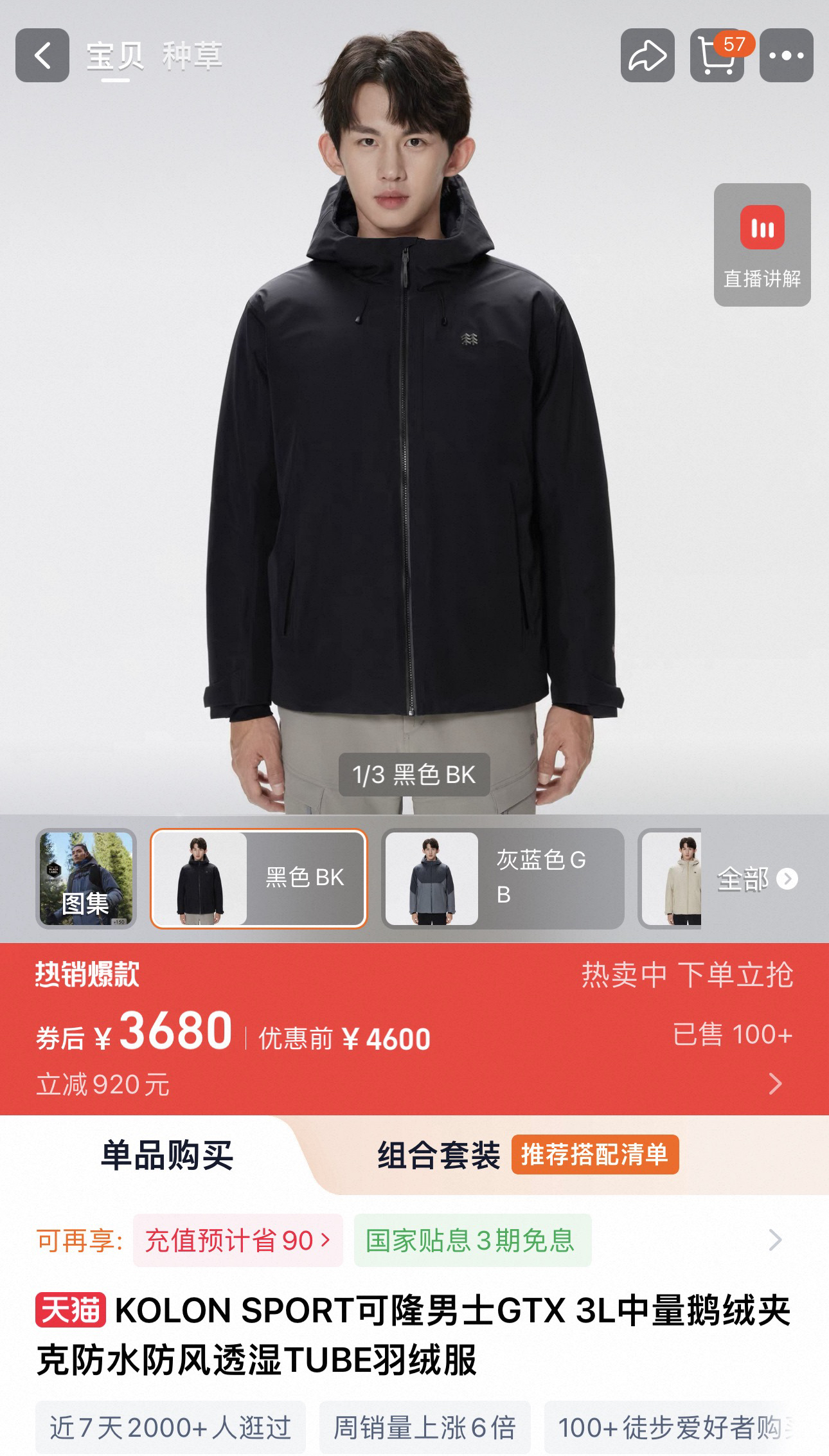 💰599顺丰包邮 已入库 国内代工厂回货 极致性价比 原单科隆男士GTX连帽羽绒服~ 官网在售4600 同步两色 标牌齐全,自留款 可直接送人!
