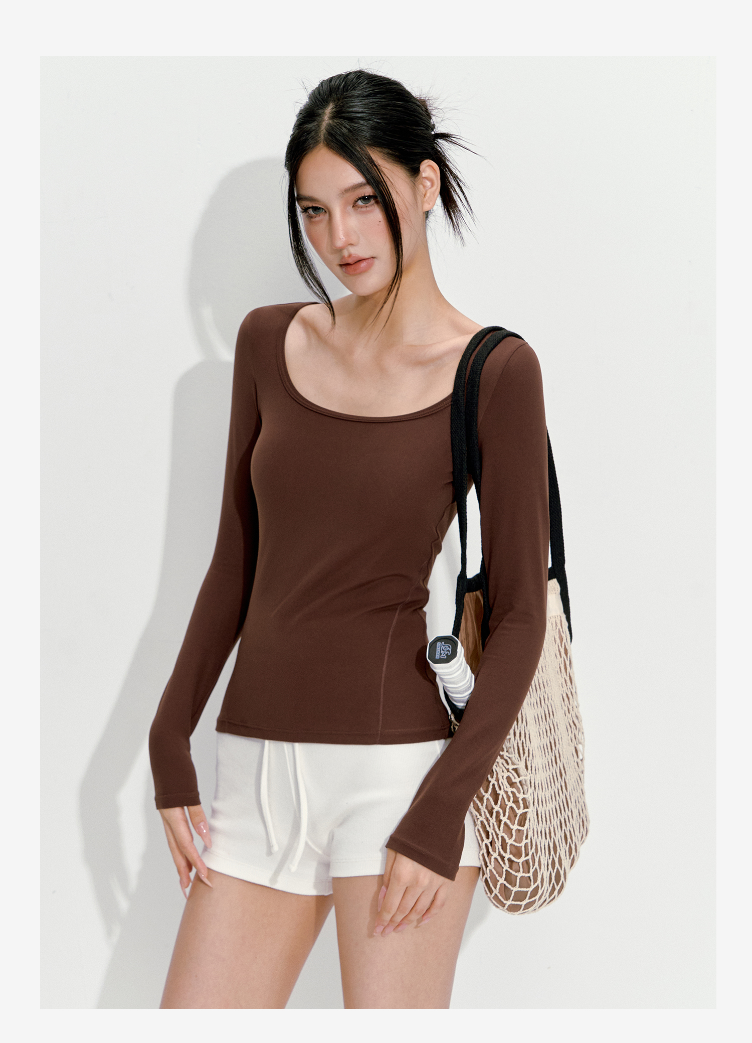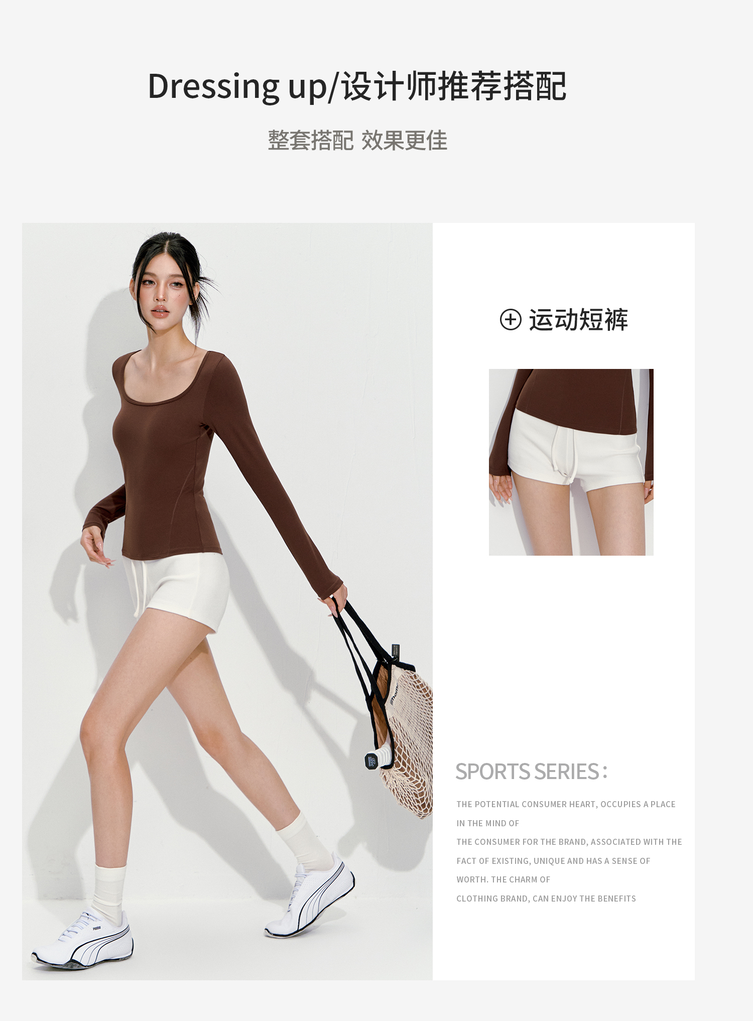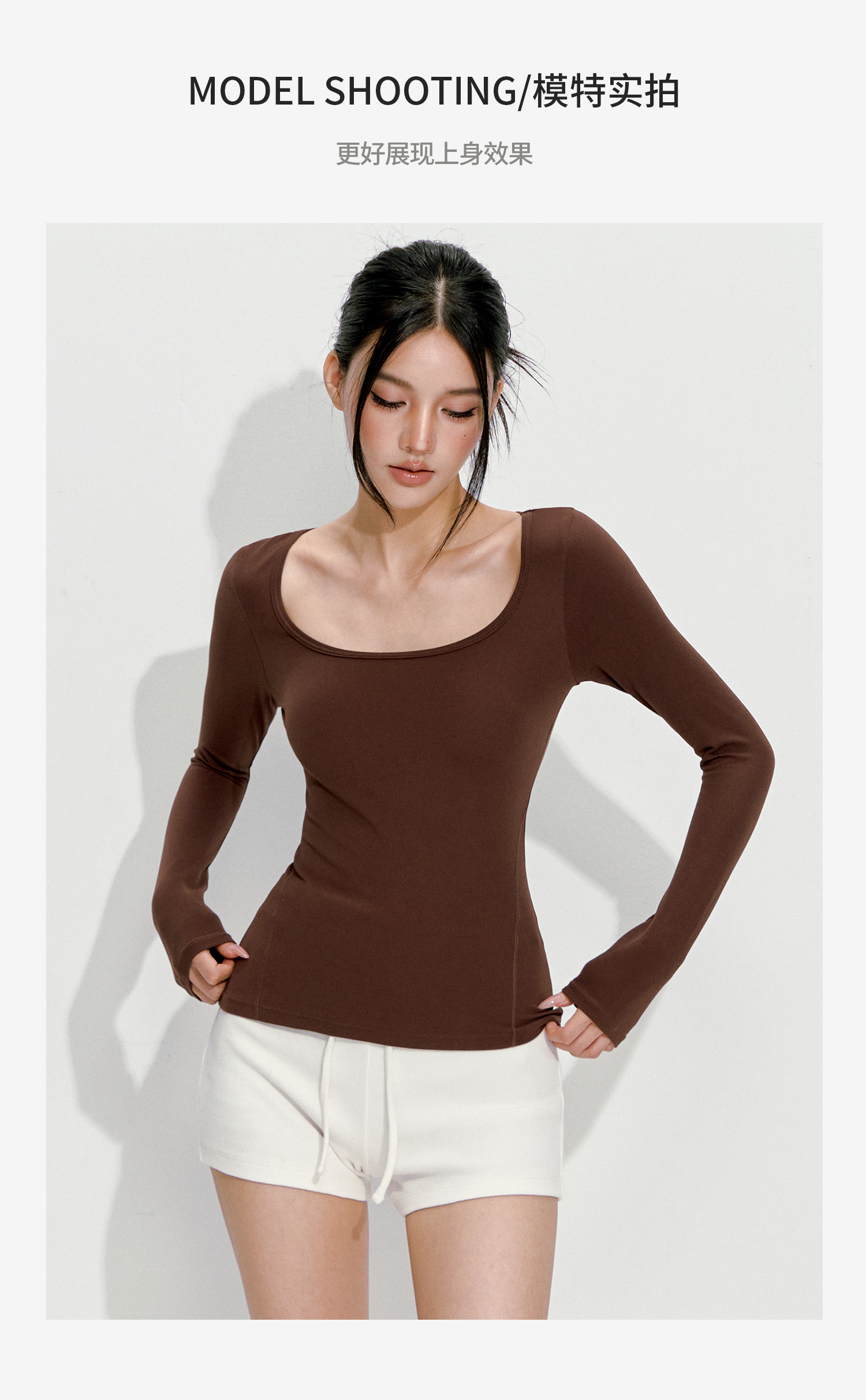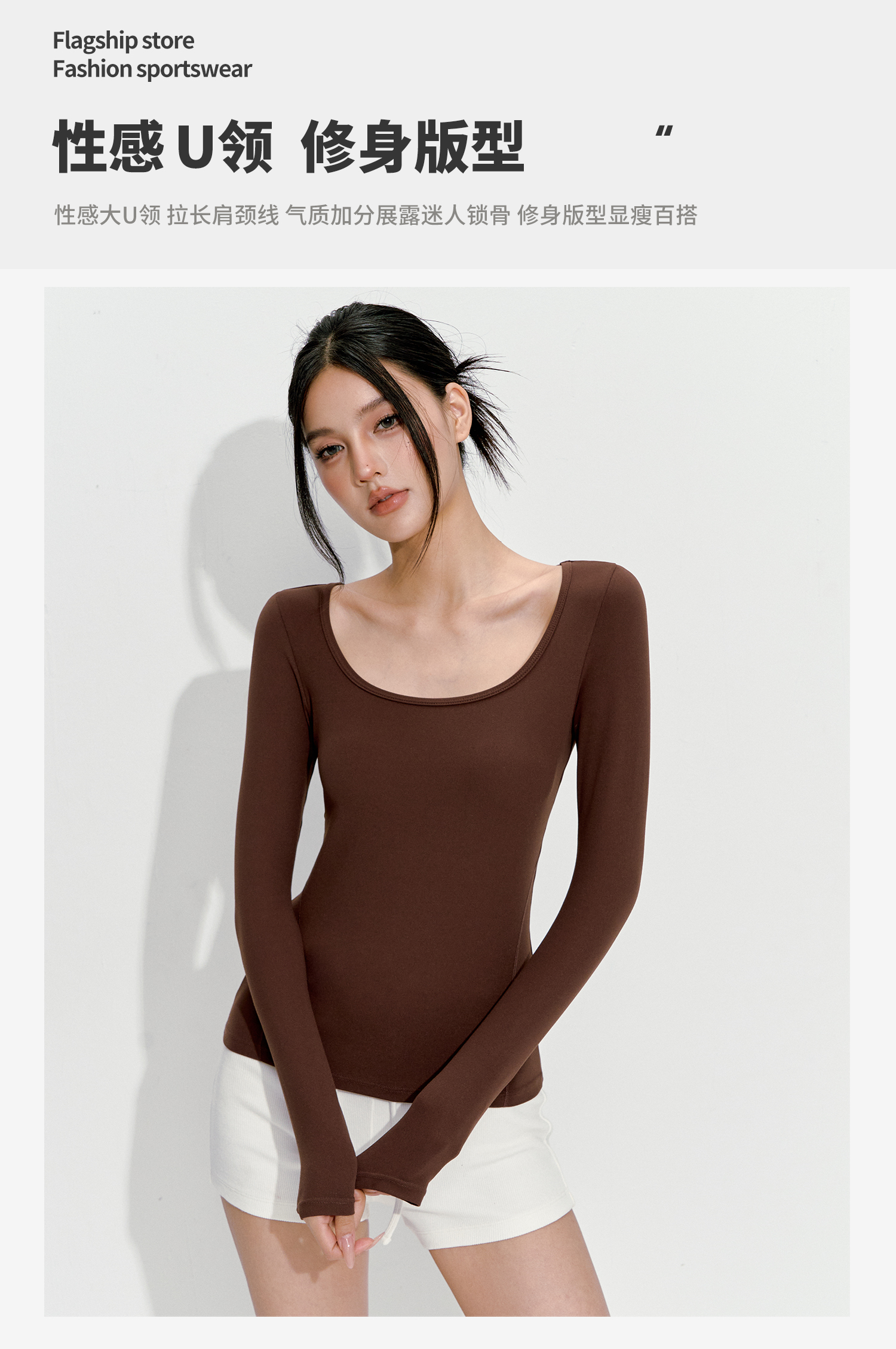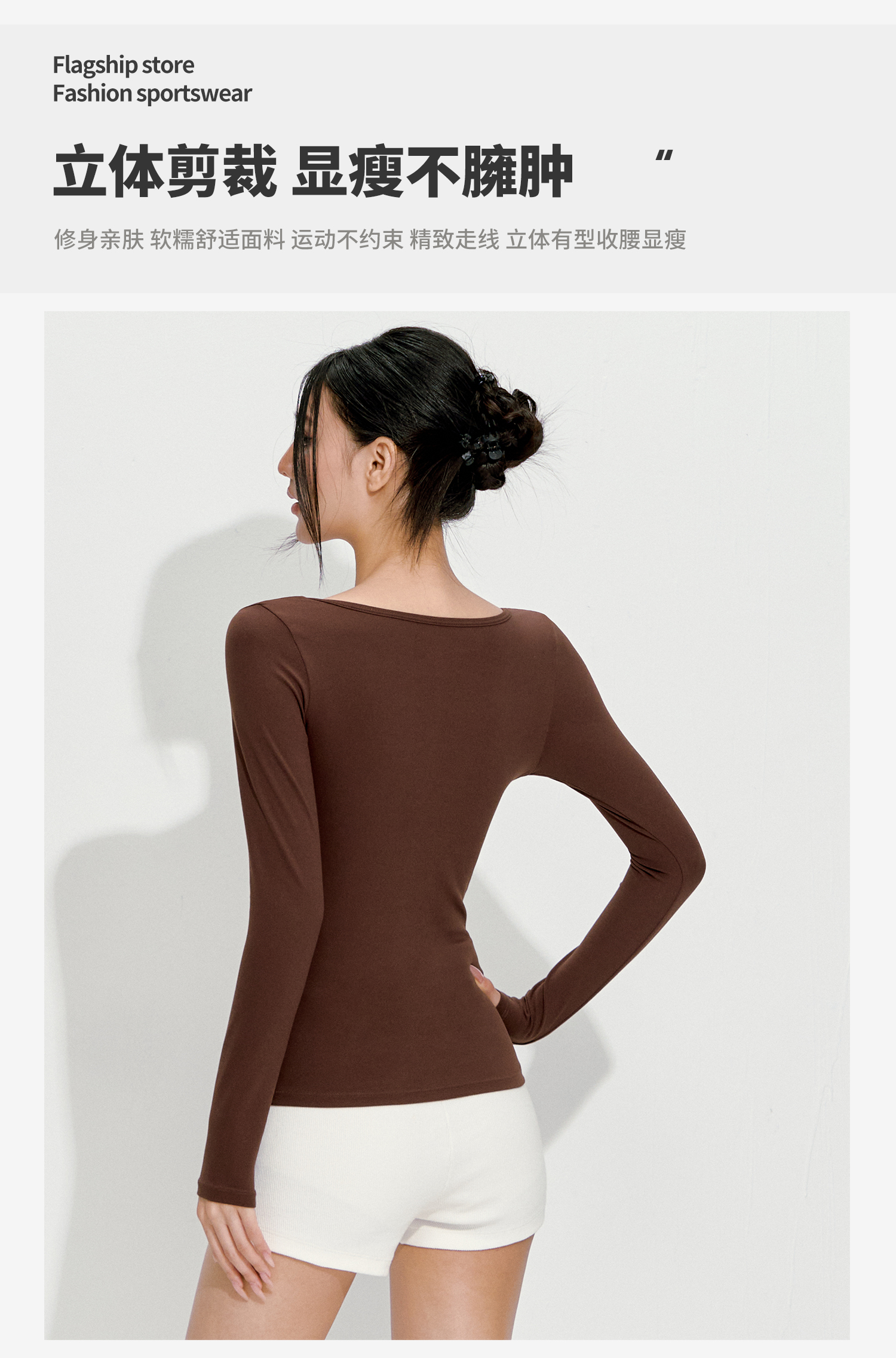 【限时秒】YOGACODE【火树银花系列】裸感高弹长袖瑜伽服上衣修身显瘦性感大领口运动上衣女DWT125581