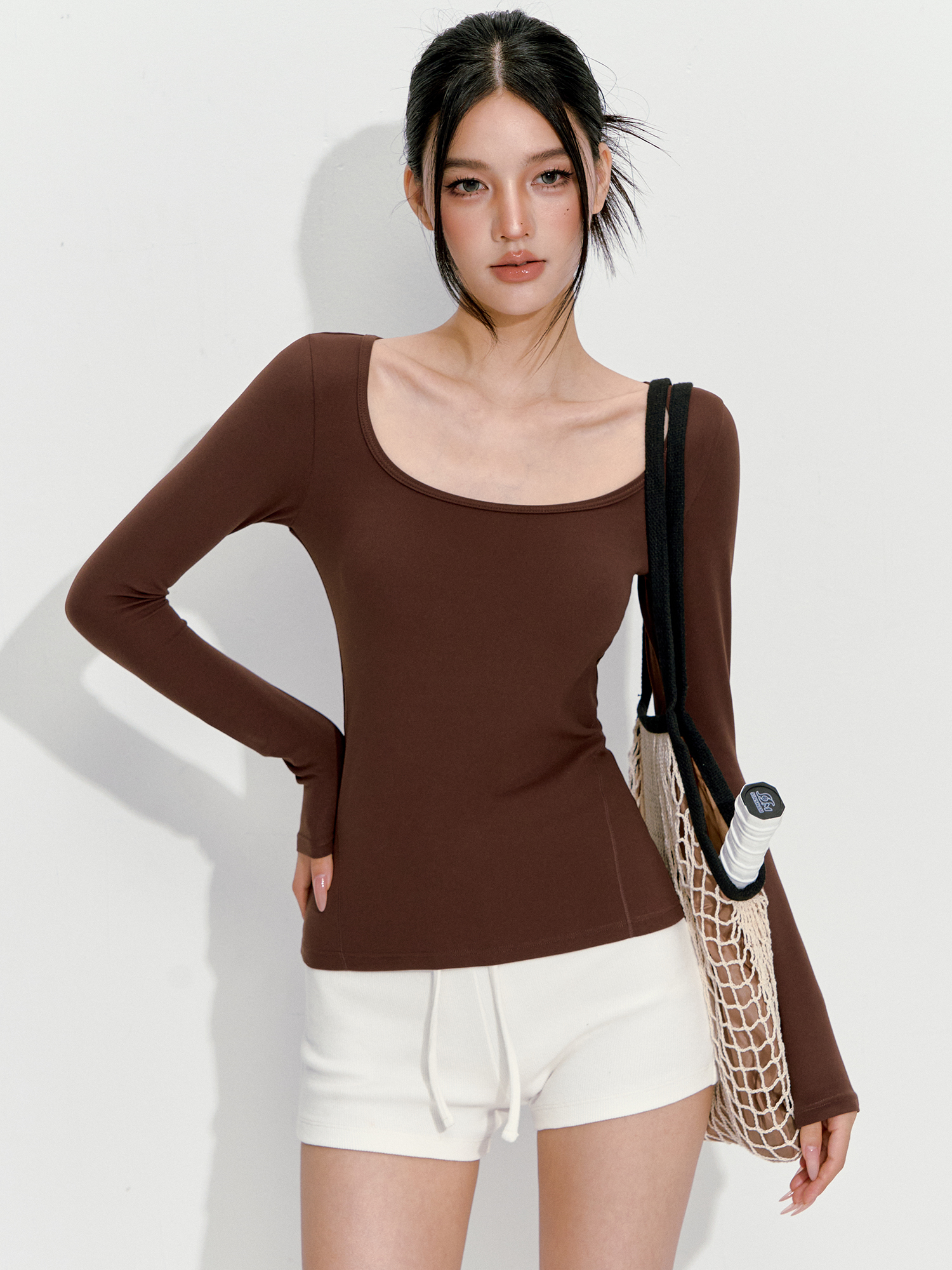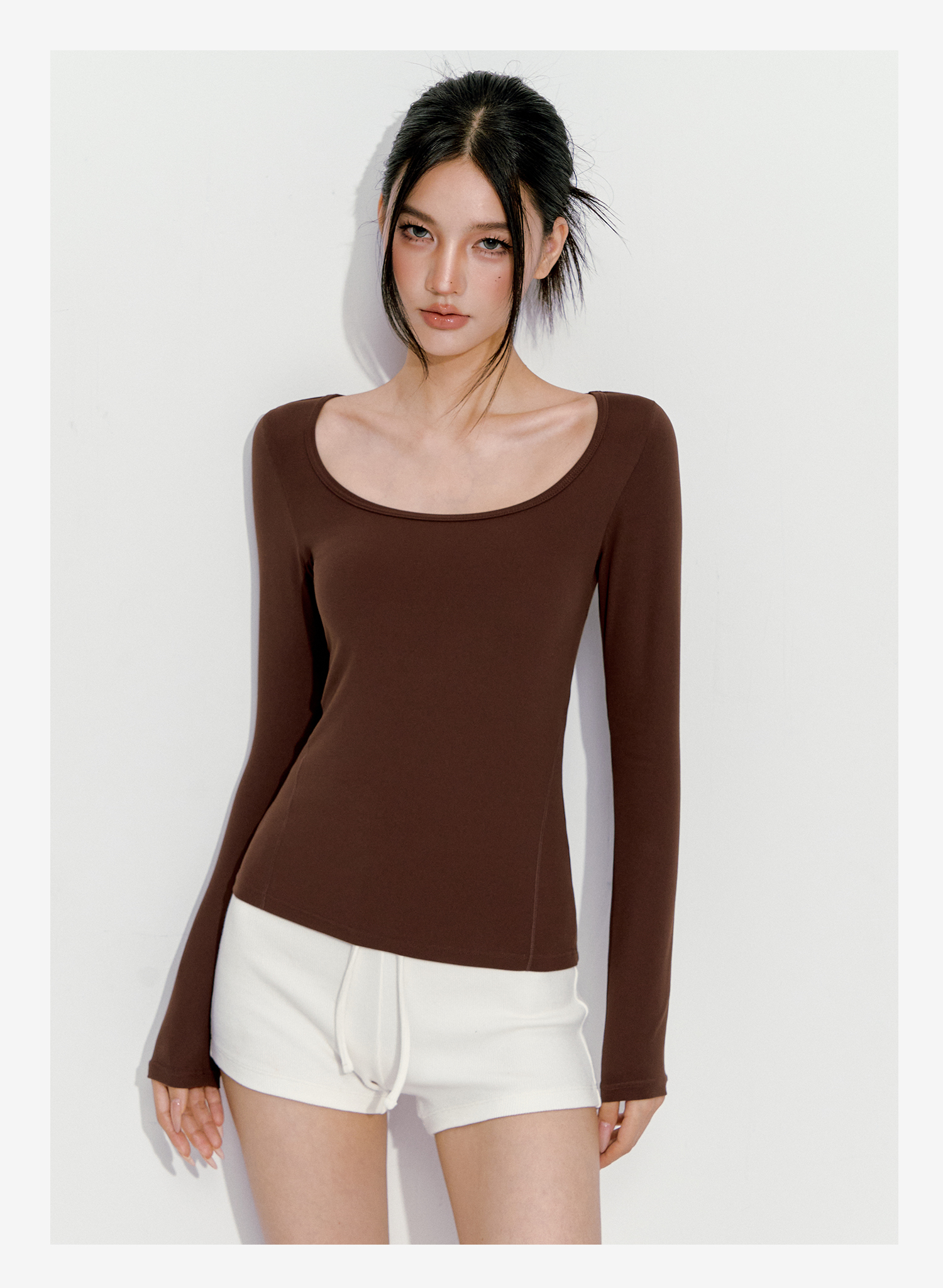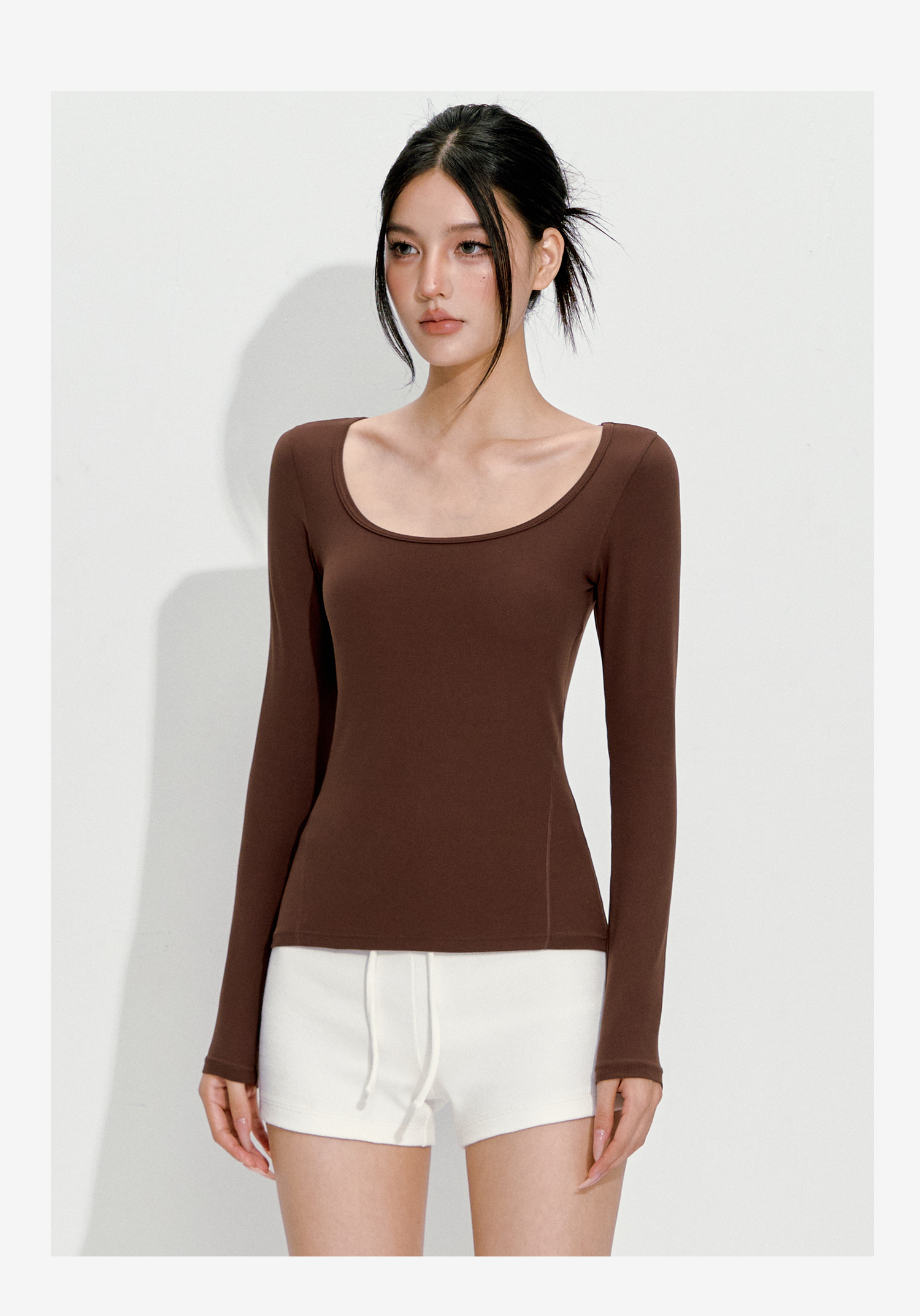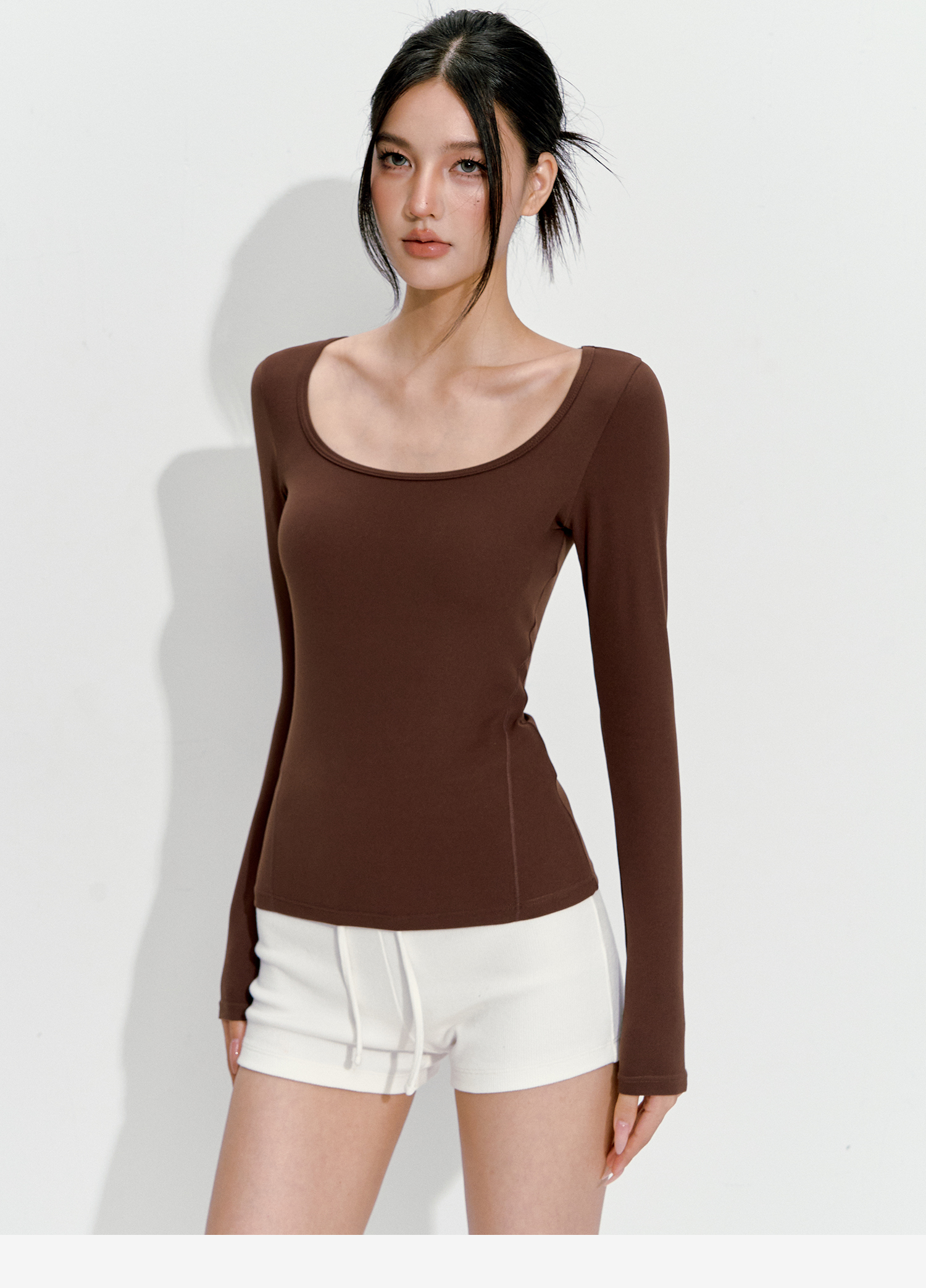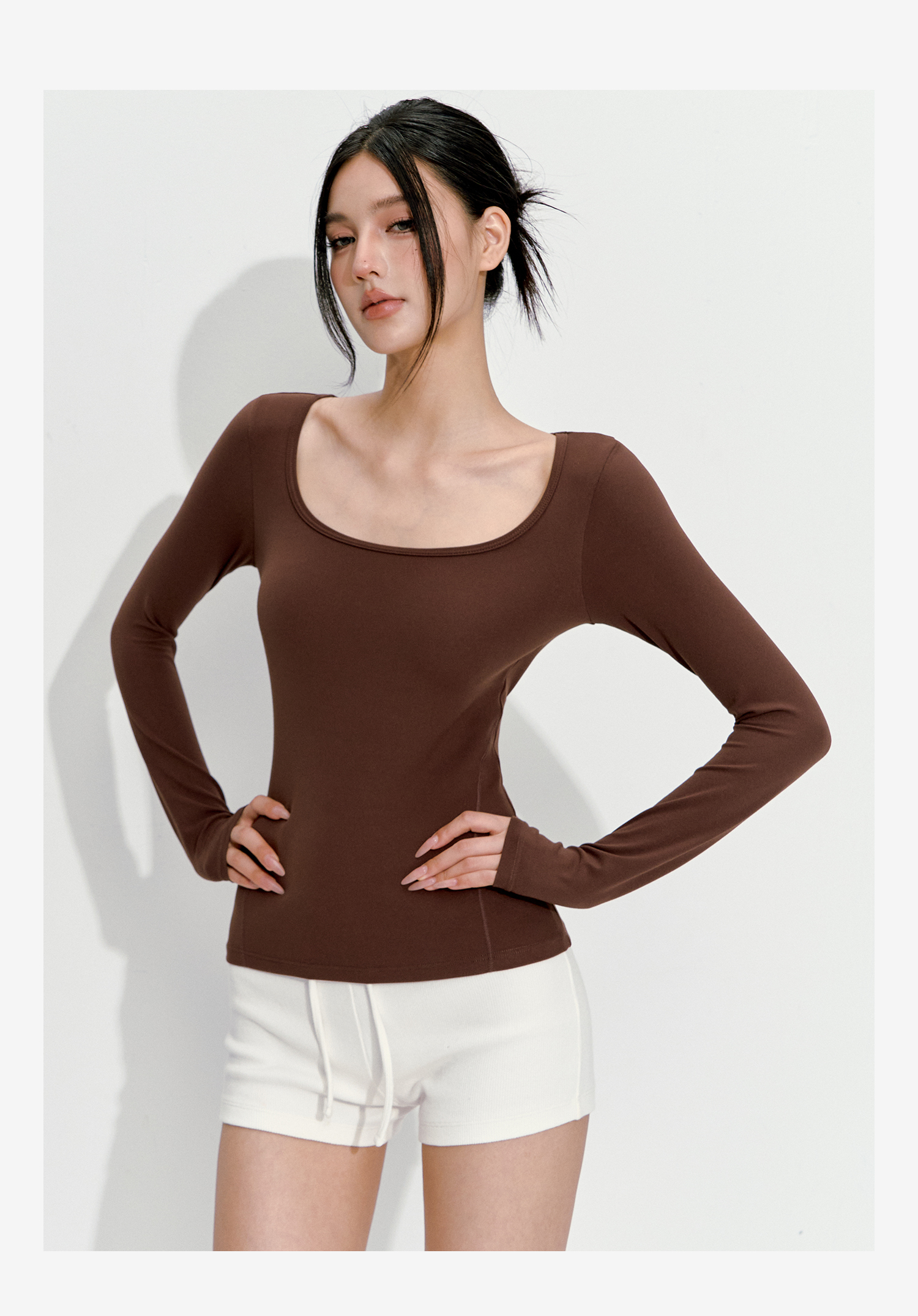 【限时秒】YOGACODE【火树银花系列】裸感高弹长袖瑜伽服上衣修身显瘦性感大领口运动上衣女DWT125581