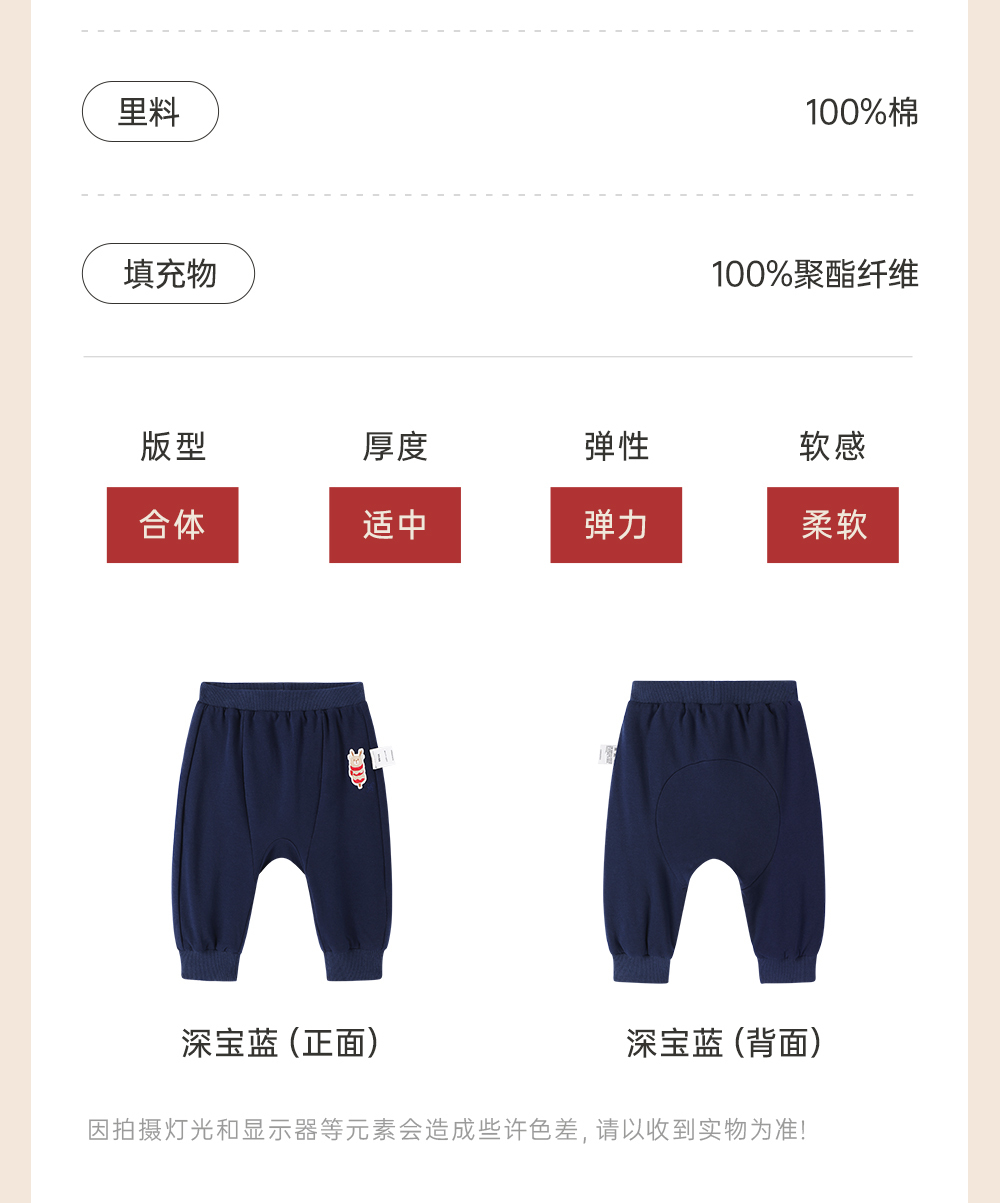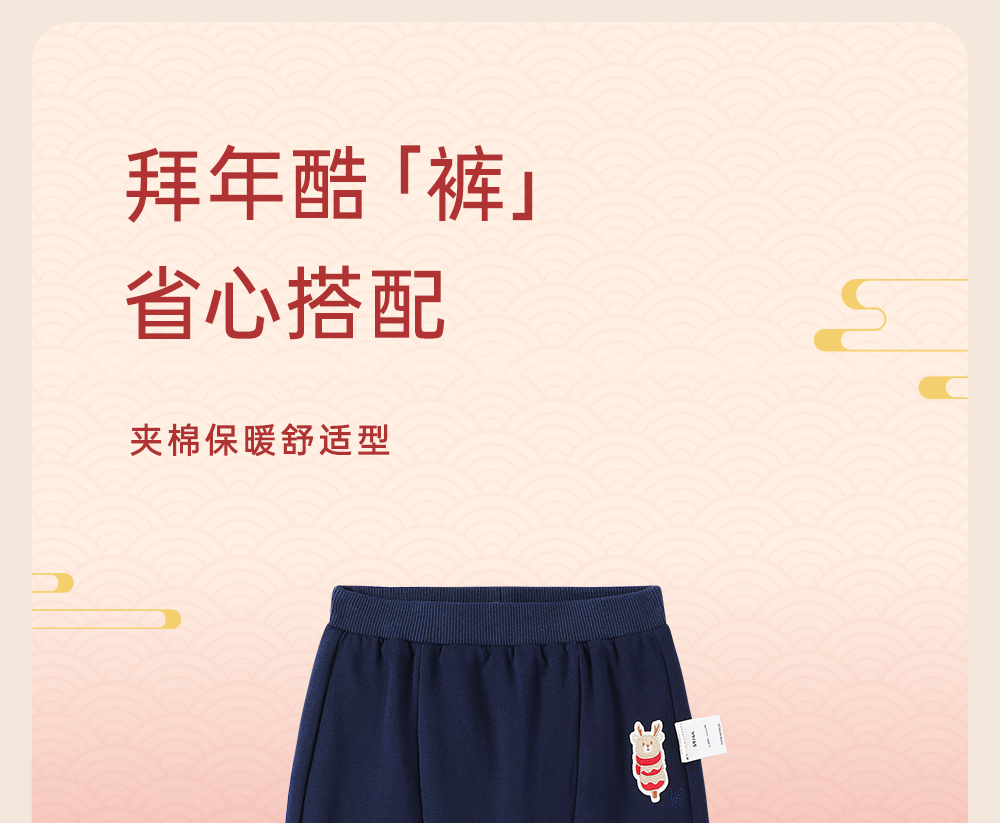 【商场同款】英氏儿童裤子秋冬夹棉卫裤男童女童休闲裤新年装裤子