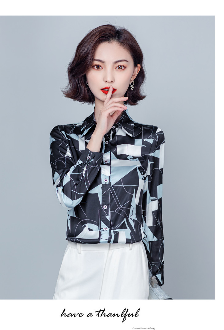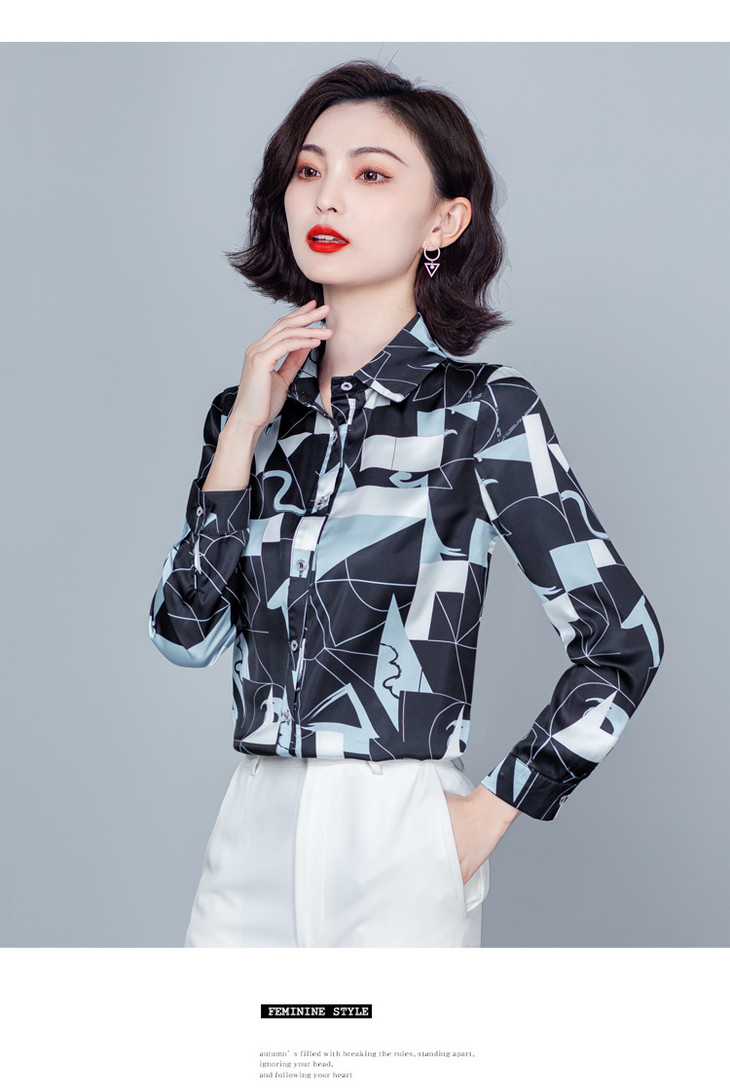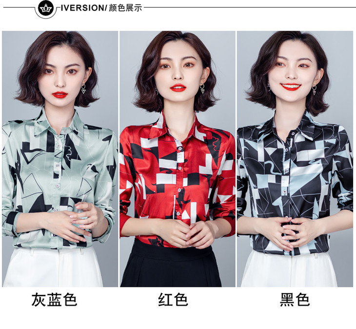 KQL A139N801优雅显瘦缎面衬衣秋装韩范时尚气质衬衫
