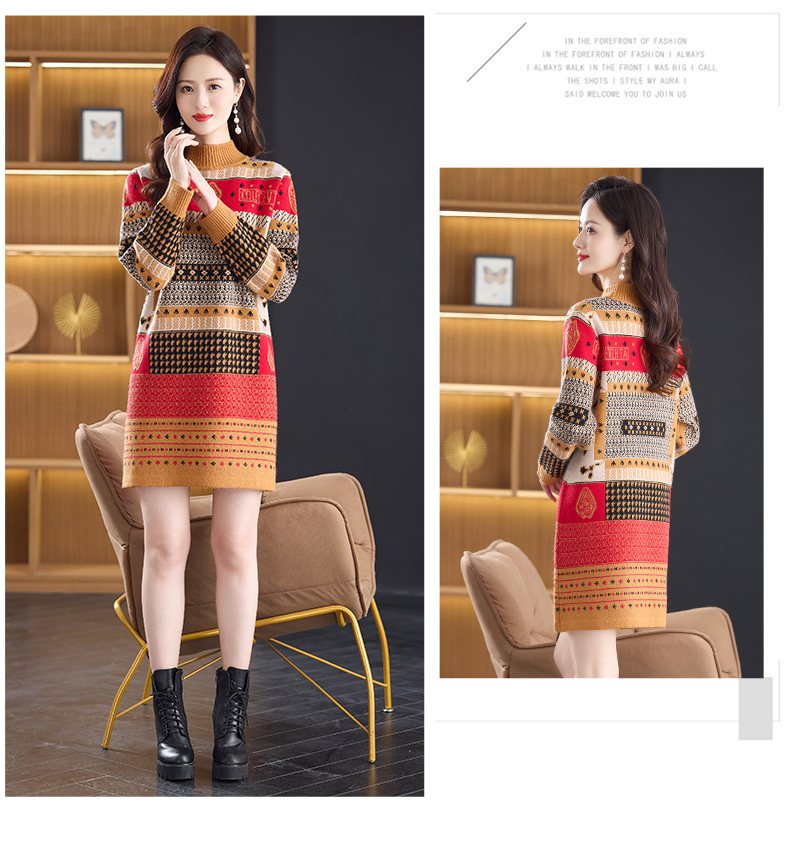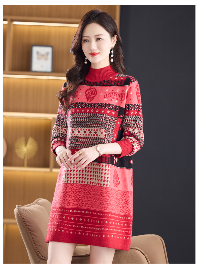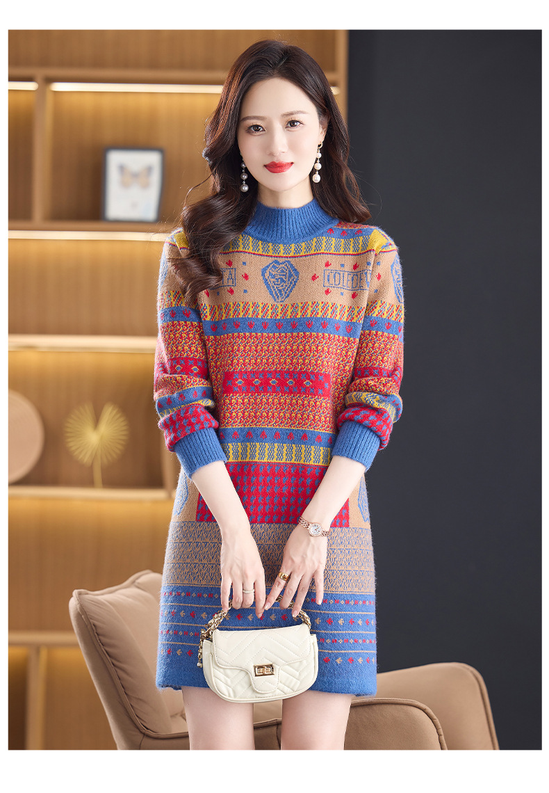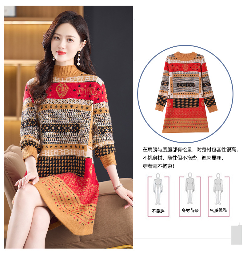 CC 0818时尚提花针织连衣裙洋气百毛衣裙