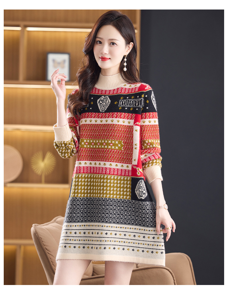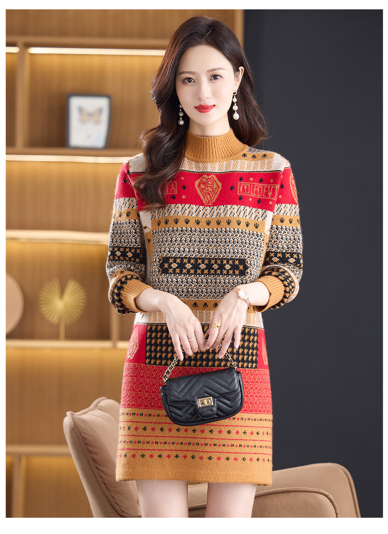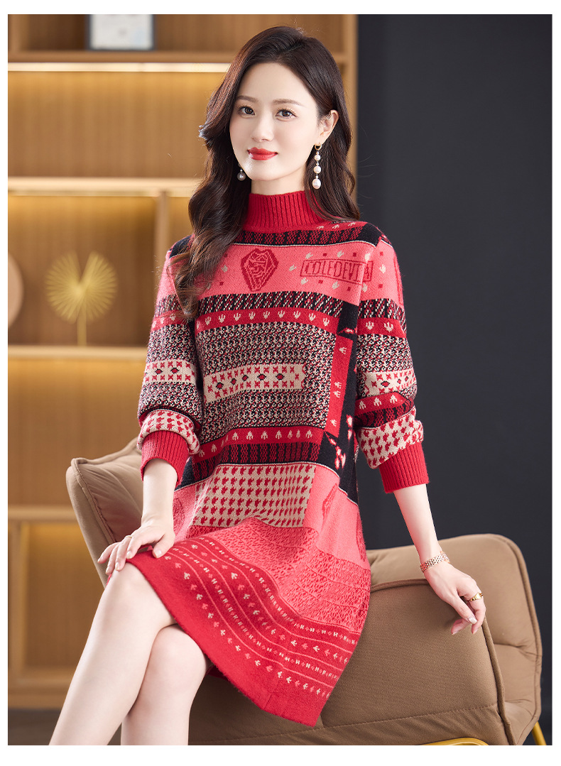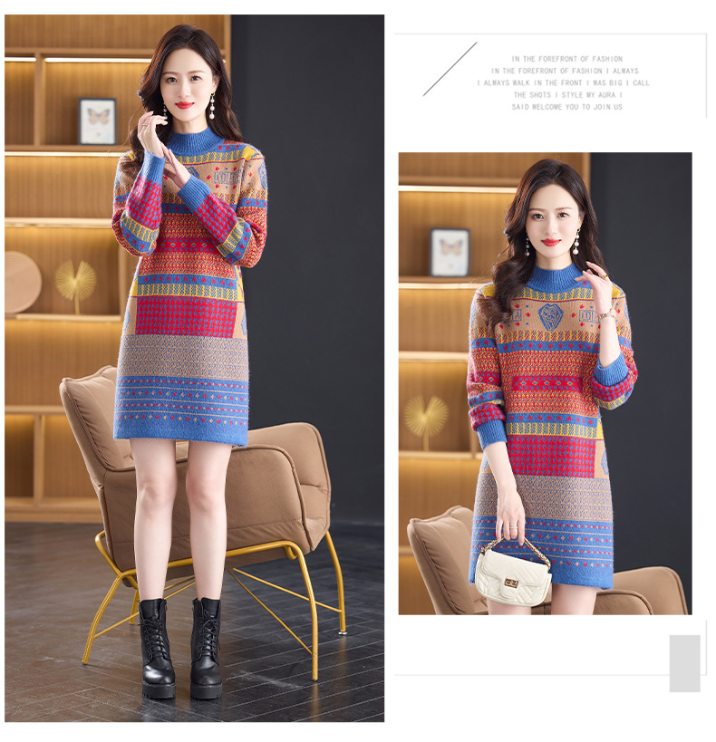 CC 0818时尚提花针织连衣裙洋气百毛衣裙
