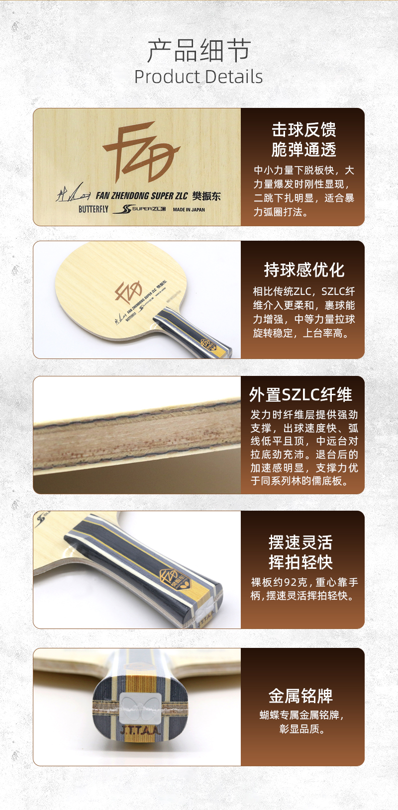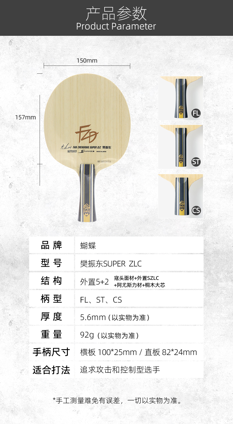 Butterfly蝴蝶超级樊振东ZLC【37251/37254/24210】樊振东SUPER ZLC暴力进攻型专业乒乓球拍底板