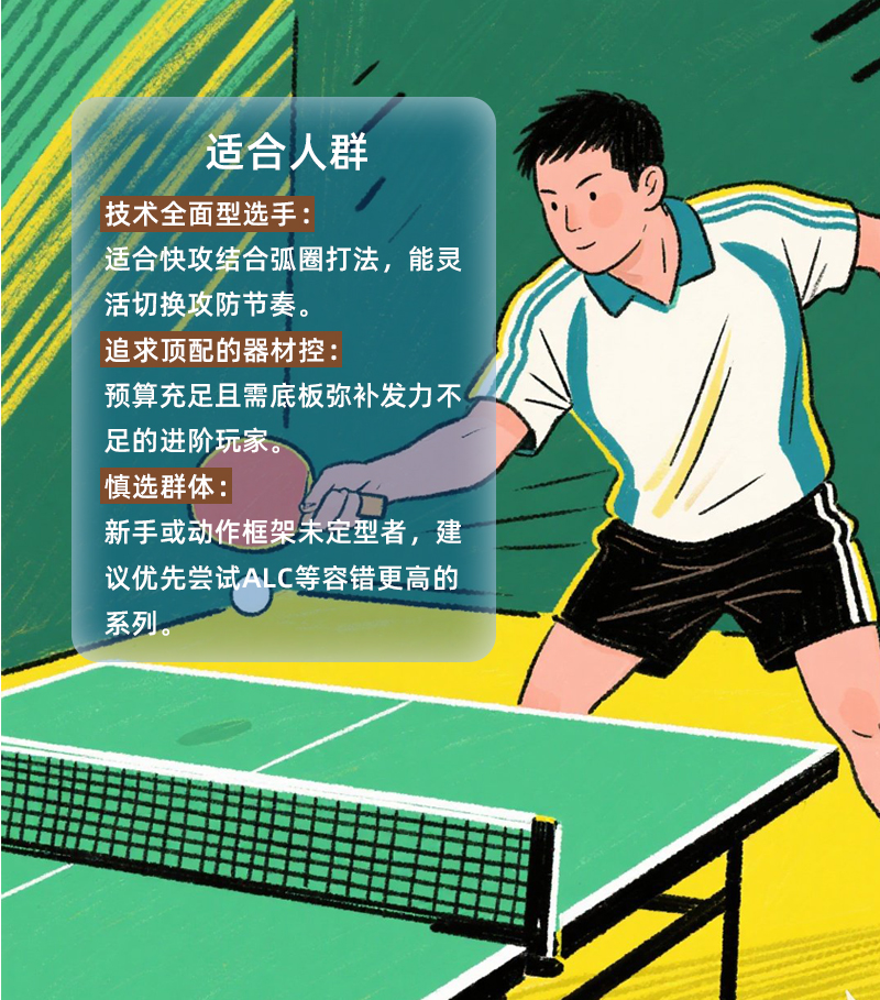 全面的底板,适合有一定基础的乒乓球爱好者使用。