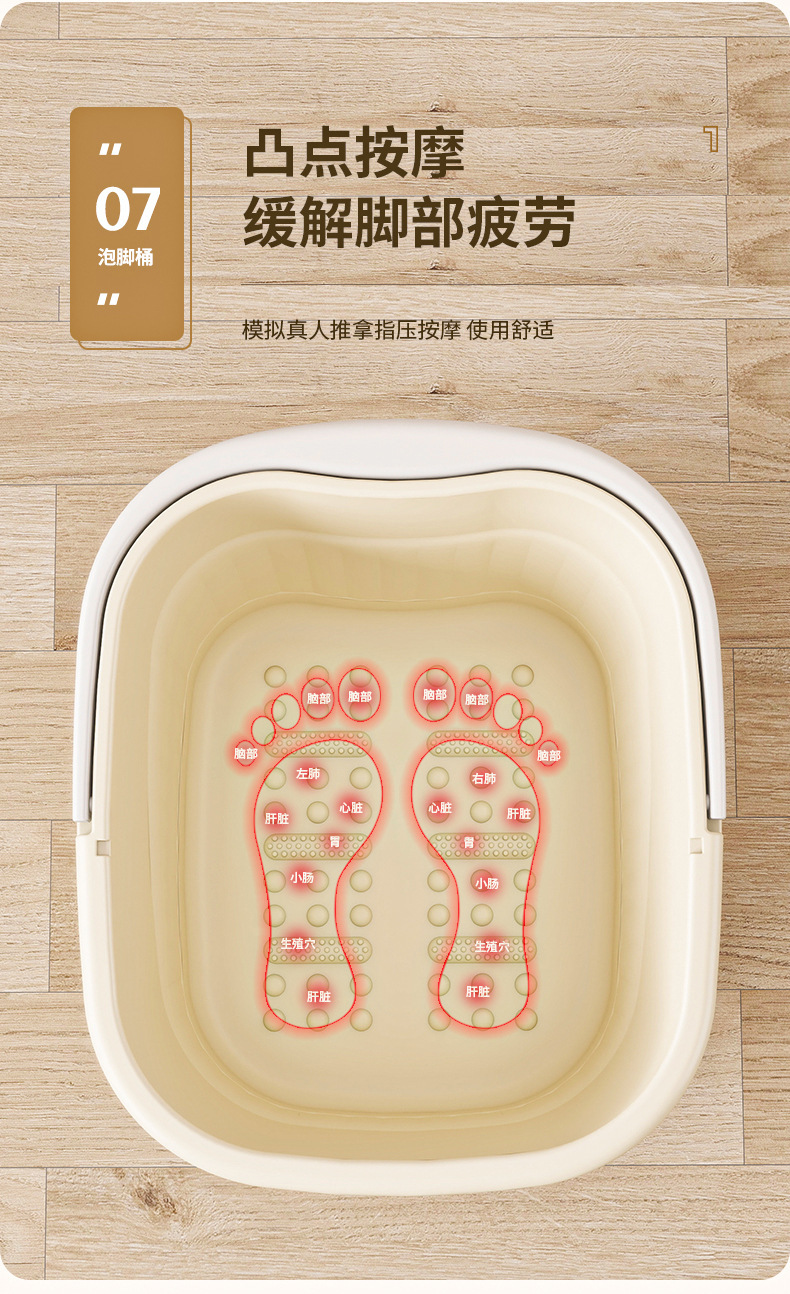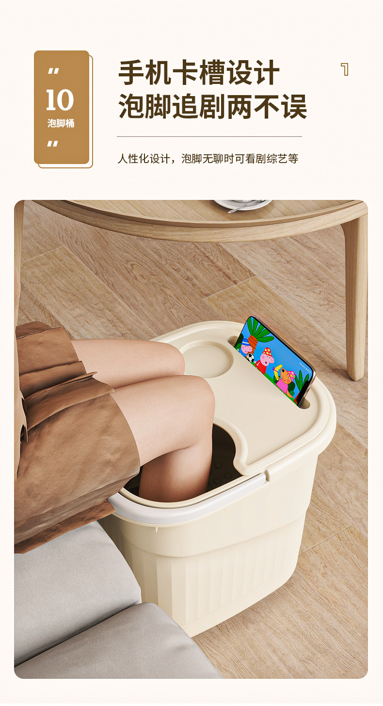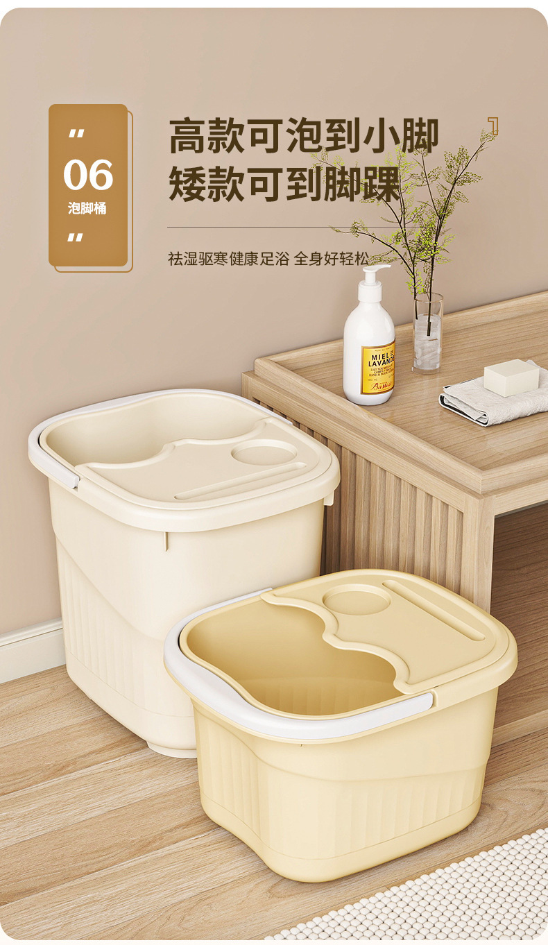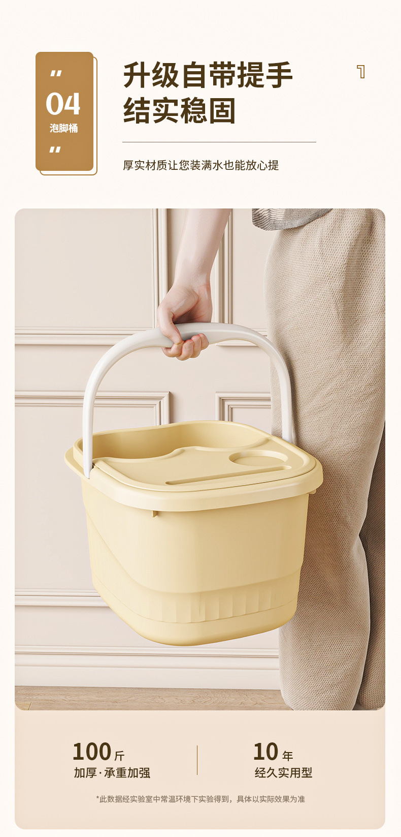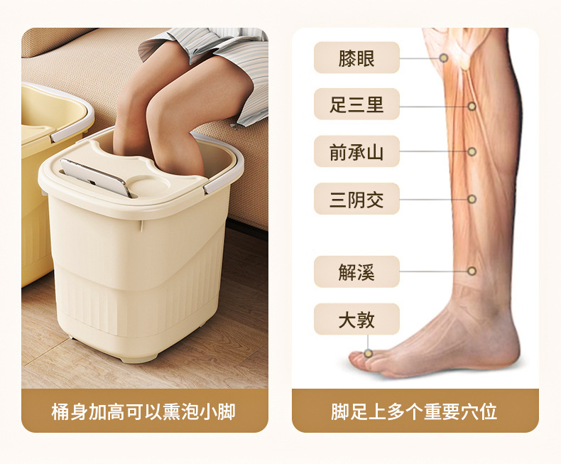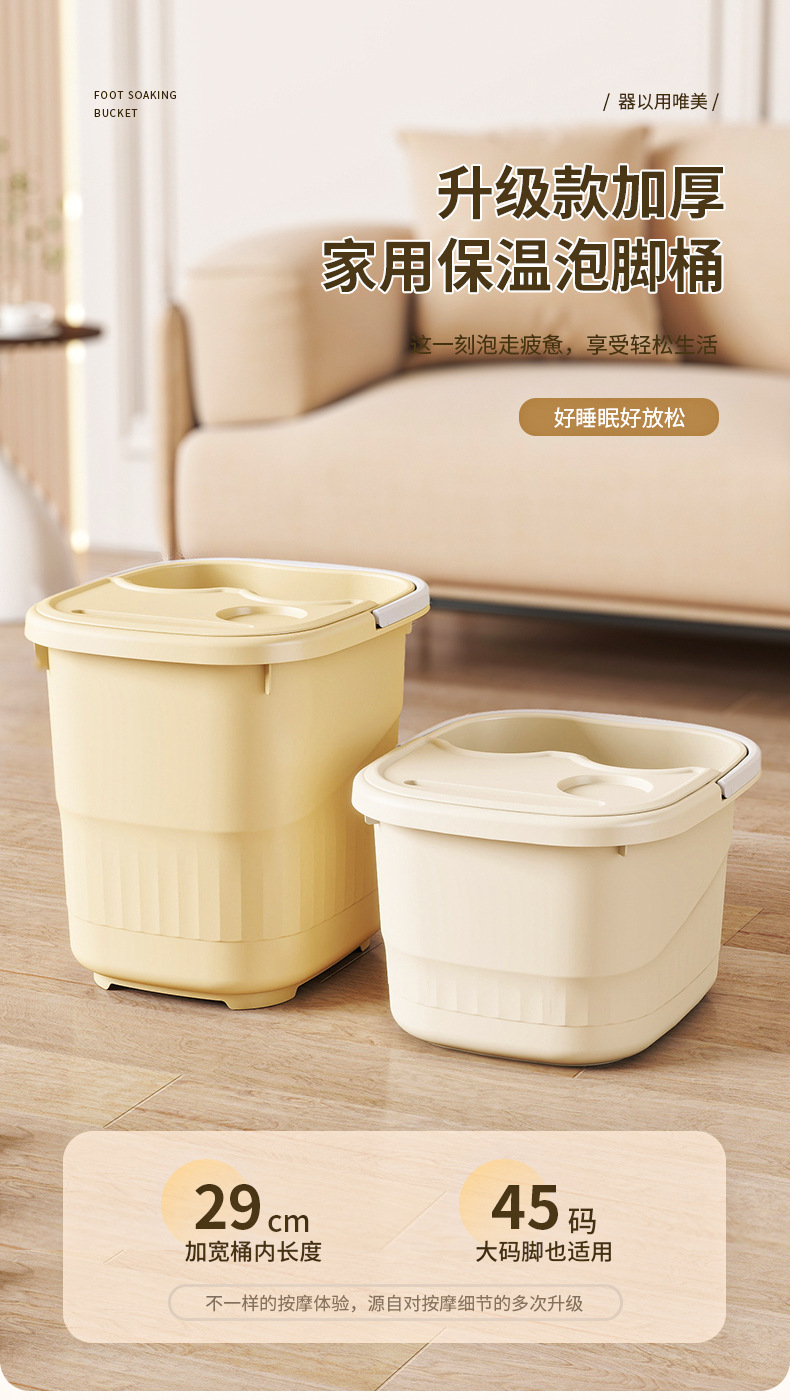 【这一刻泡走疲惫,享受轻松生活!】泡脚桶家用加厚加高 带滚轮便携足浴桶 过小腿保温按摩 洗脚桶洗脚盆-QB