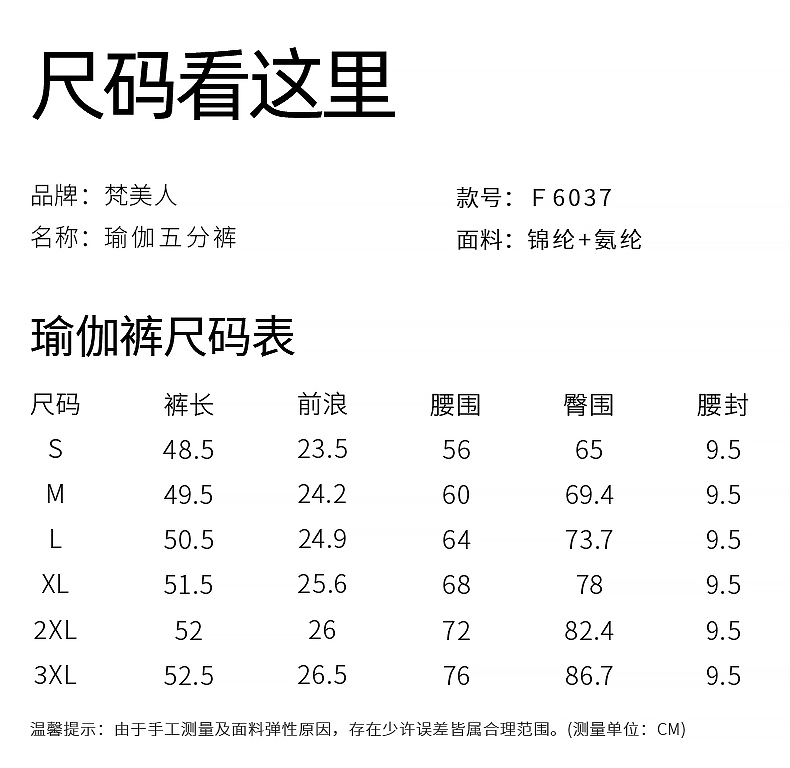 梵美人 F6037 瑜伽五分裤 金标莱卡塑形面料