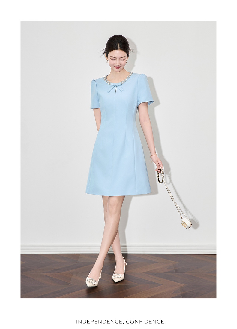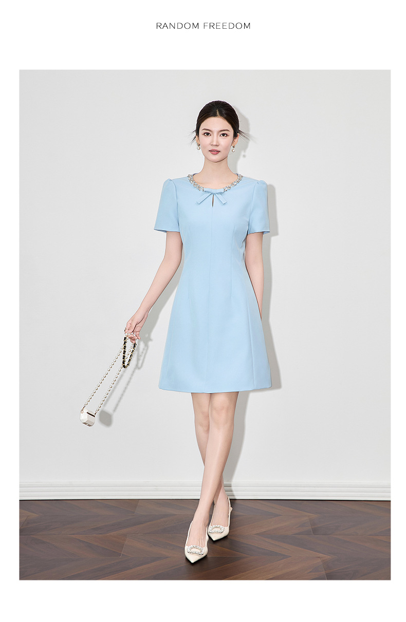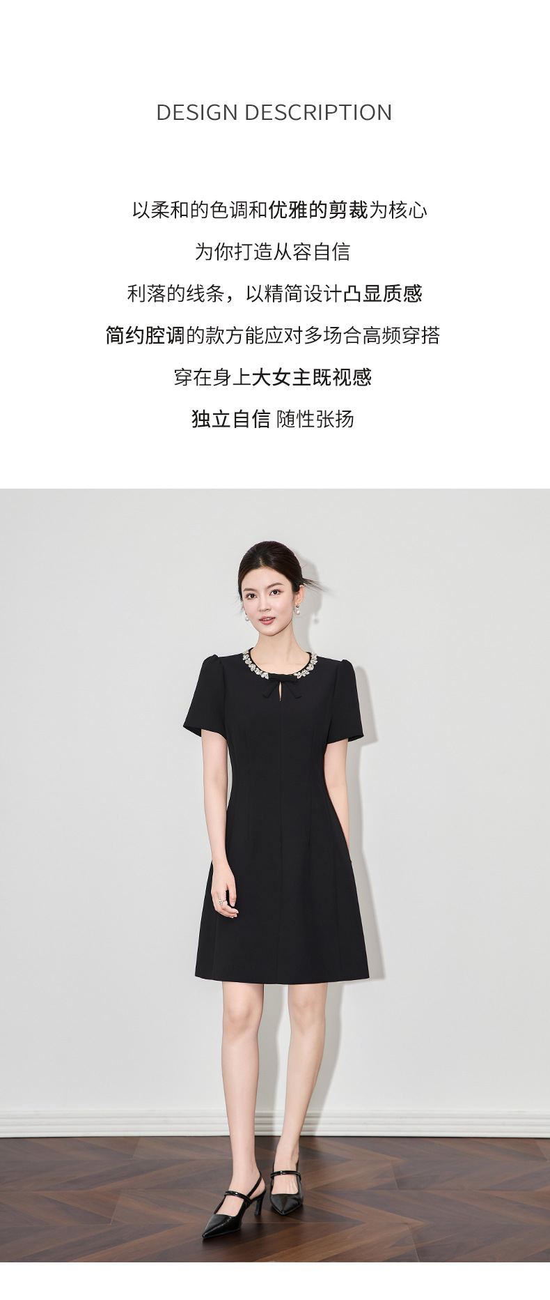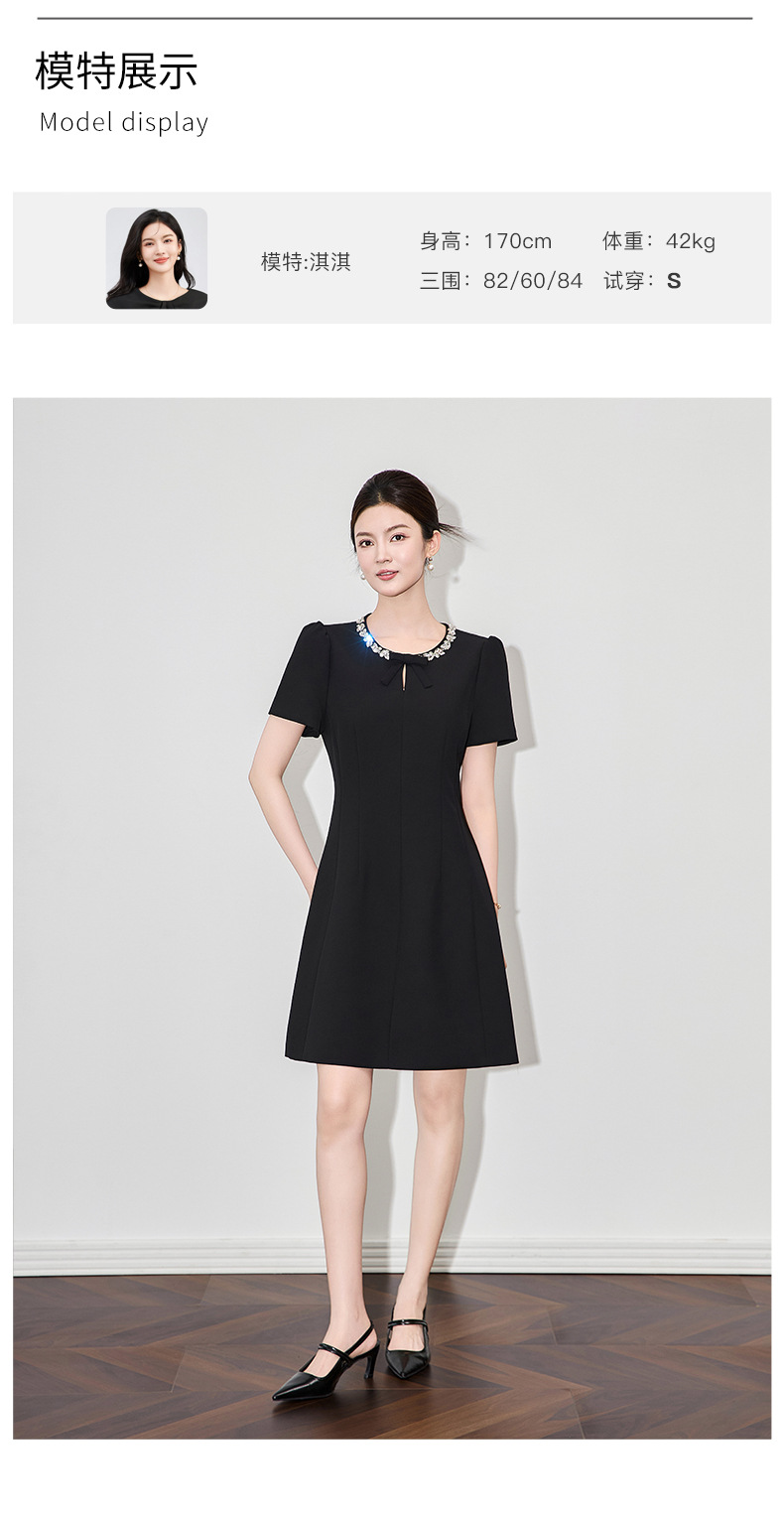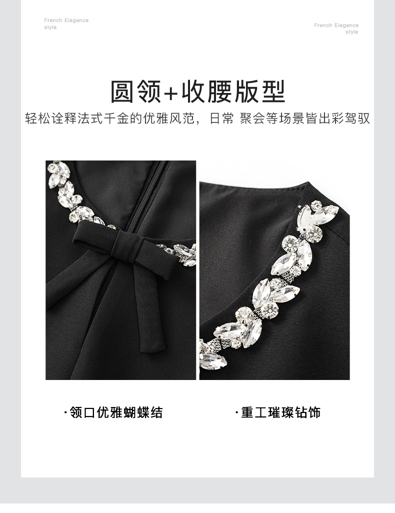 「高货wl」全新升级【铂金会员330/天猫439/差价109】(92650)洛诗琳法式千金风重工钉钻连衣裙2025夏季收腰显瘦裙子女