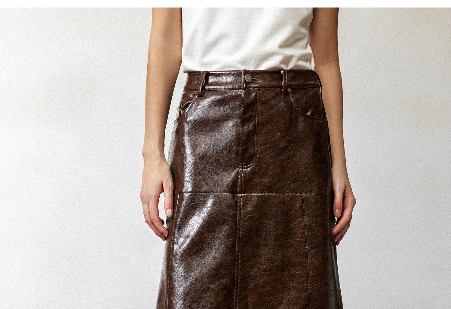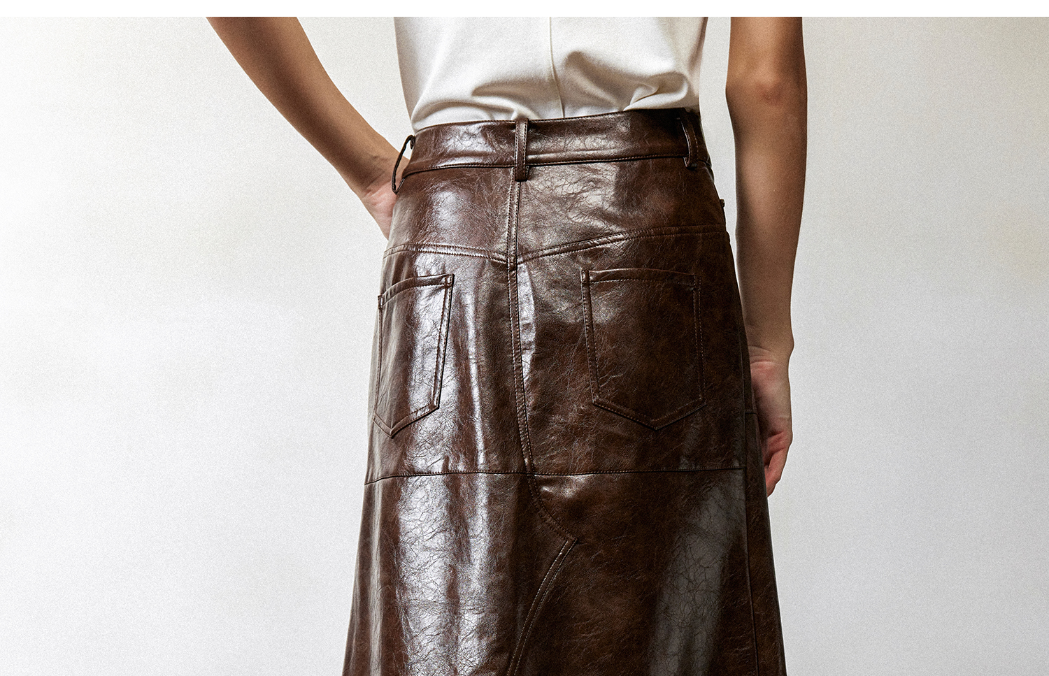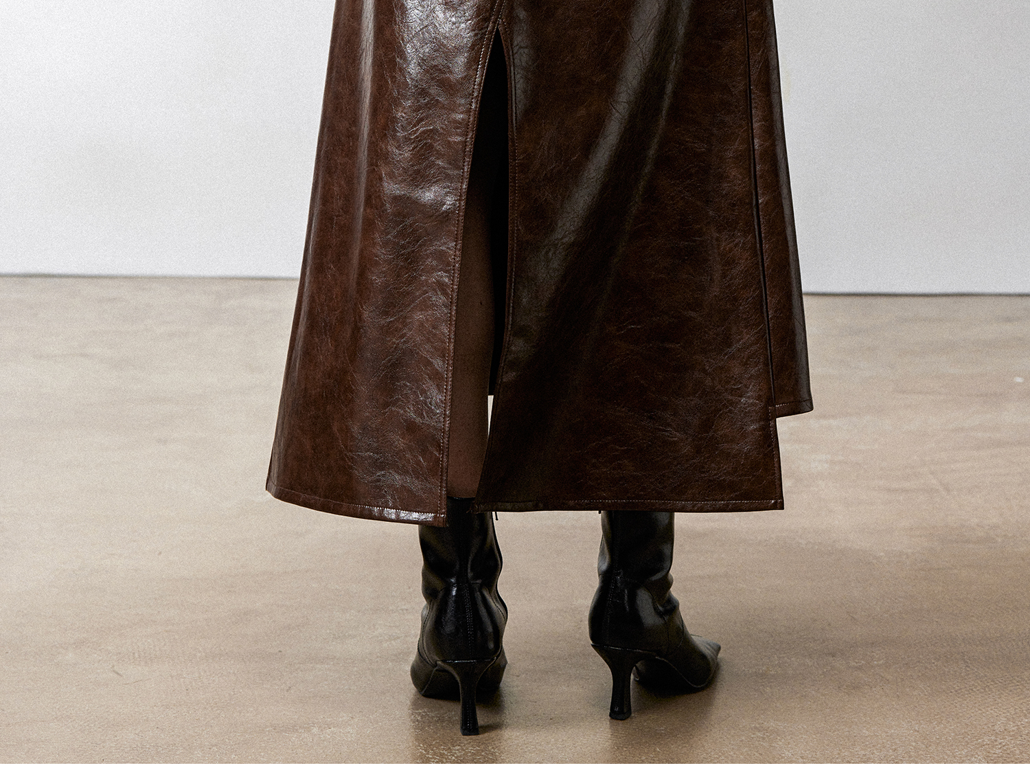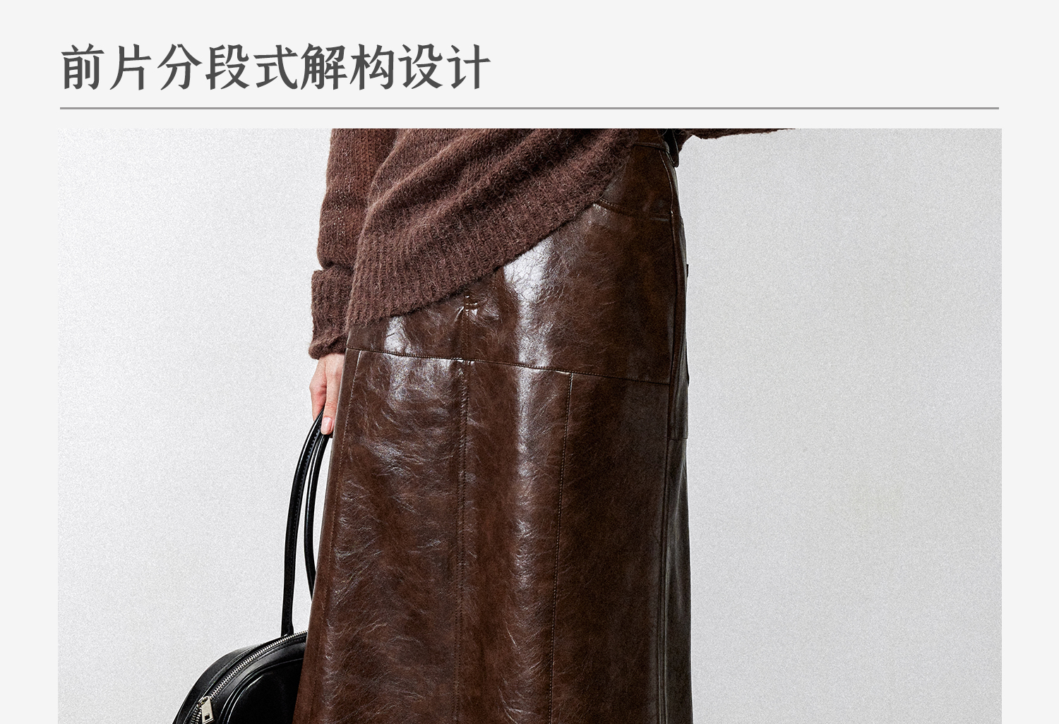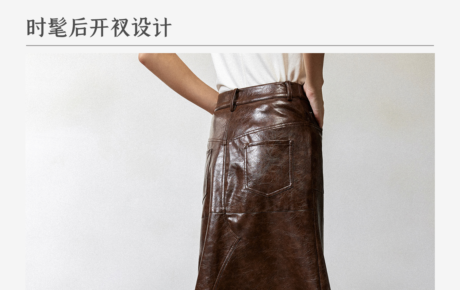 西嘉|PU油蜡皮美拉德棕色皮裙半身裙女2024年冬季解构后开衩A字裙