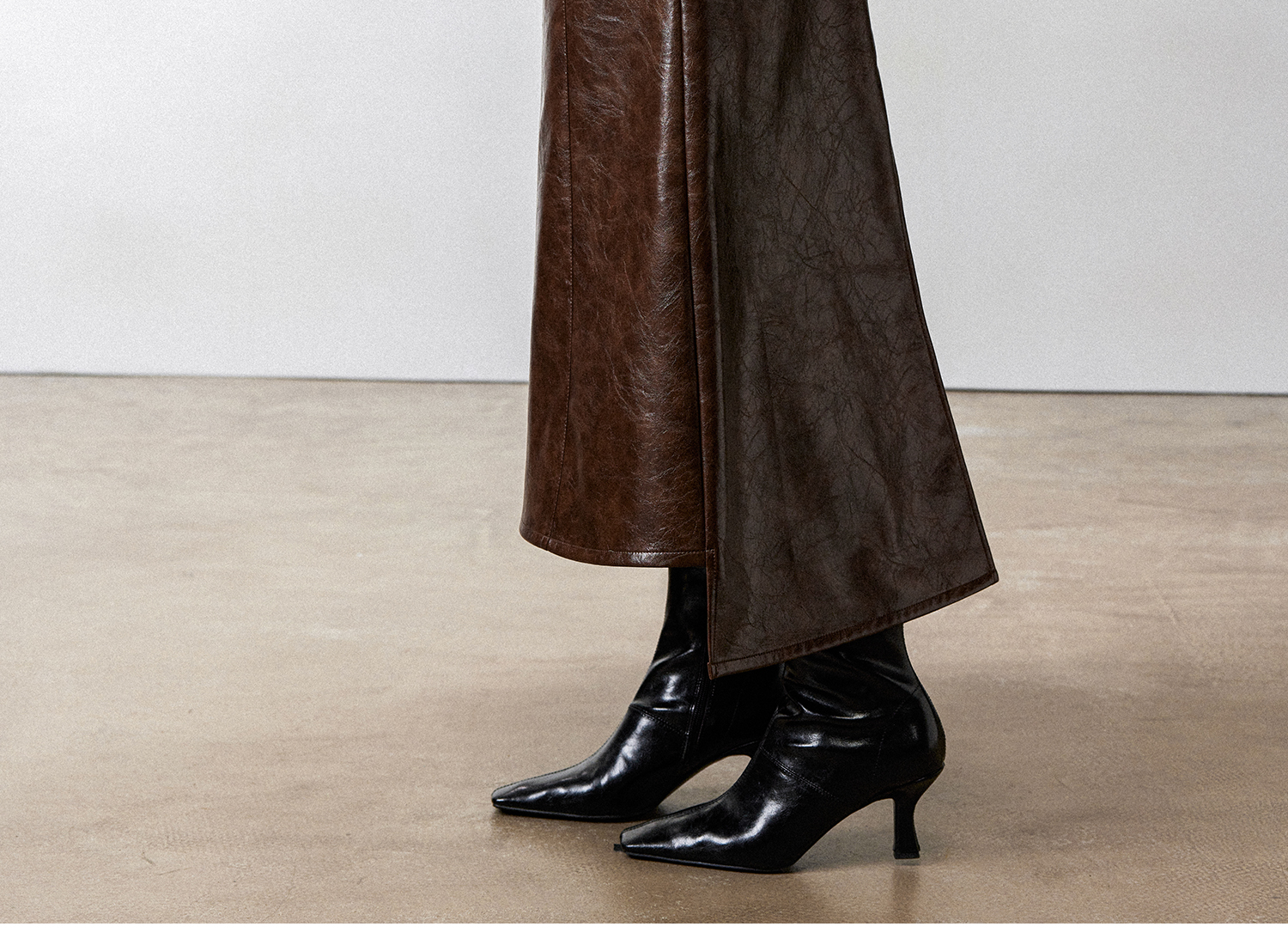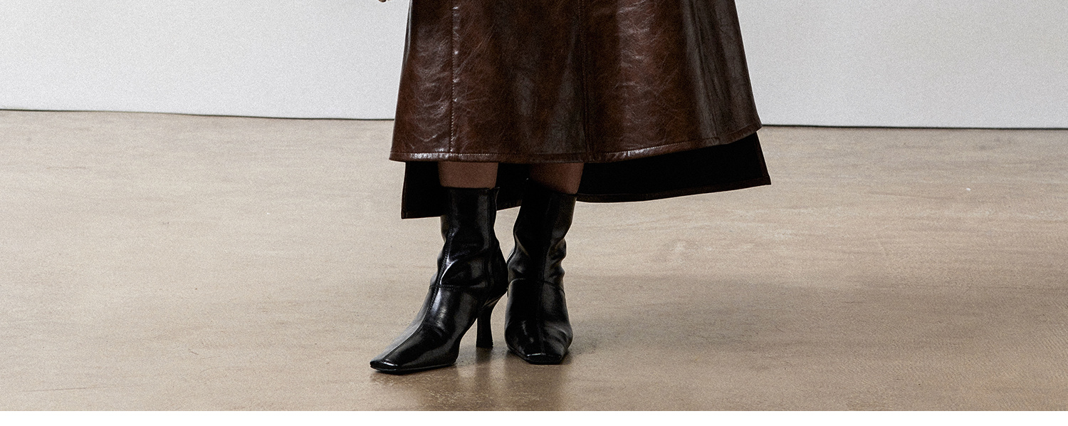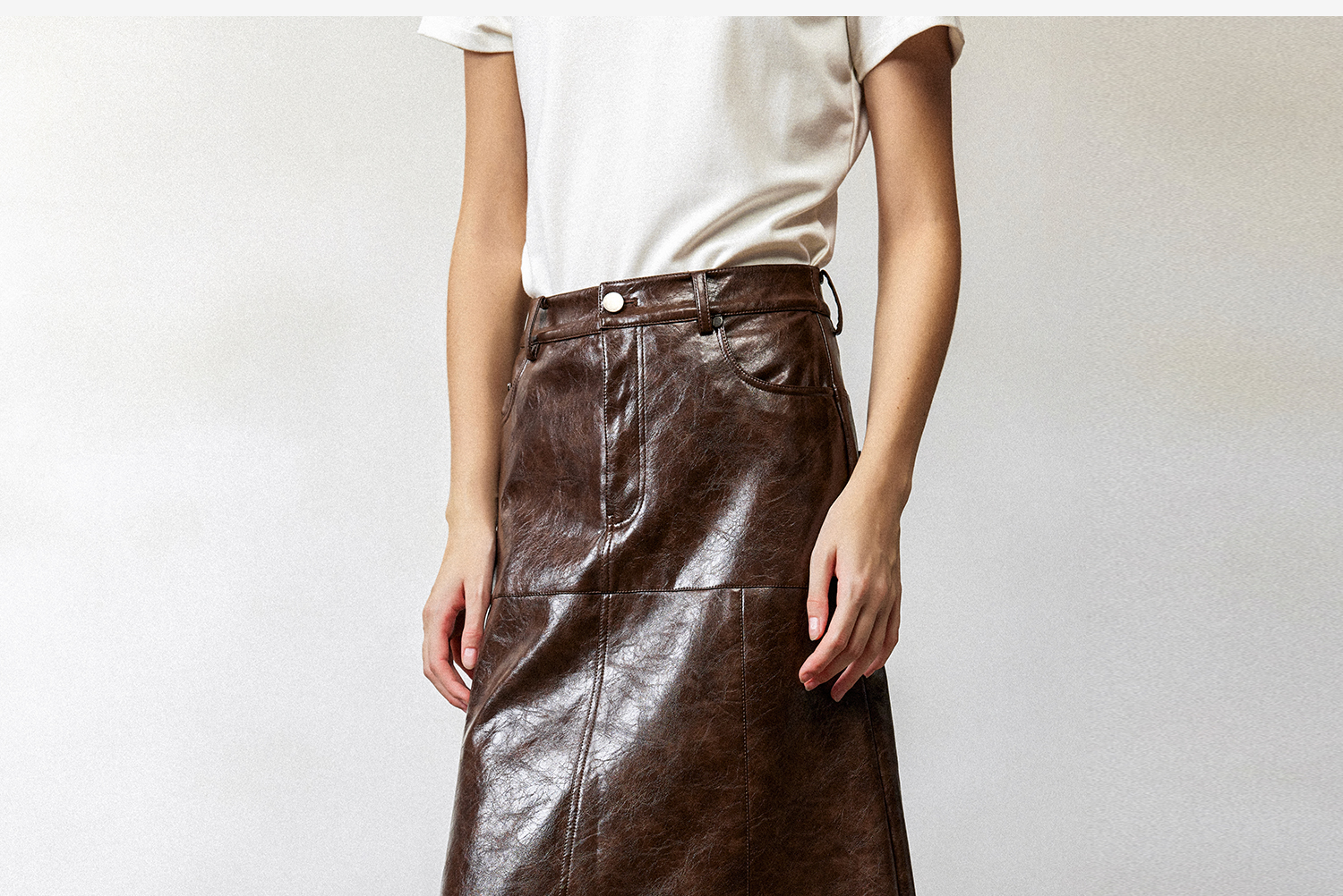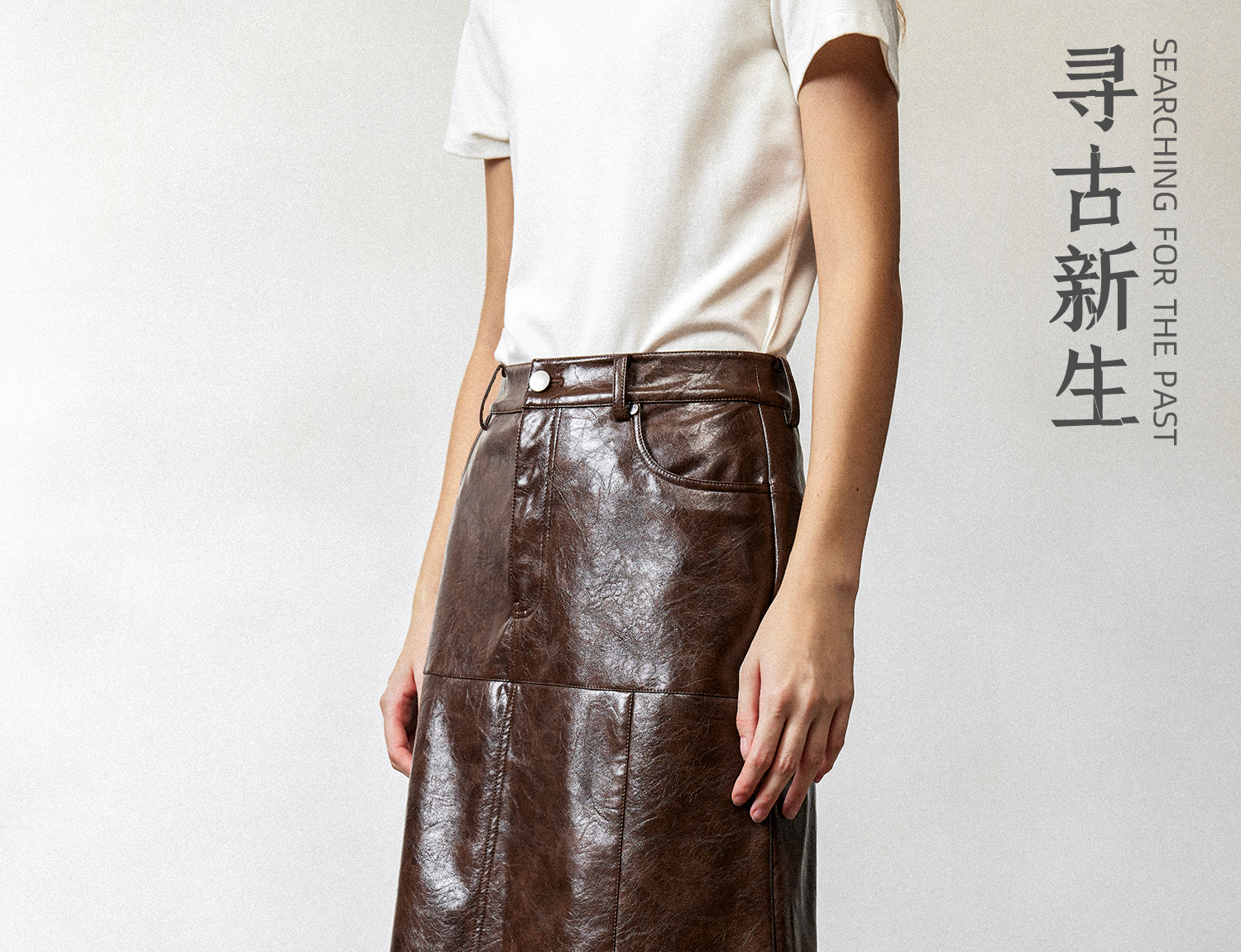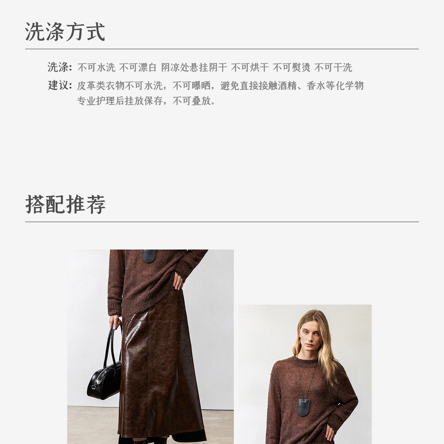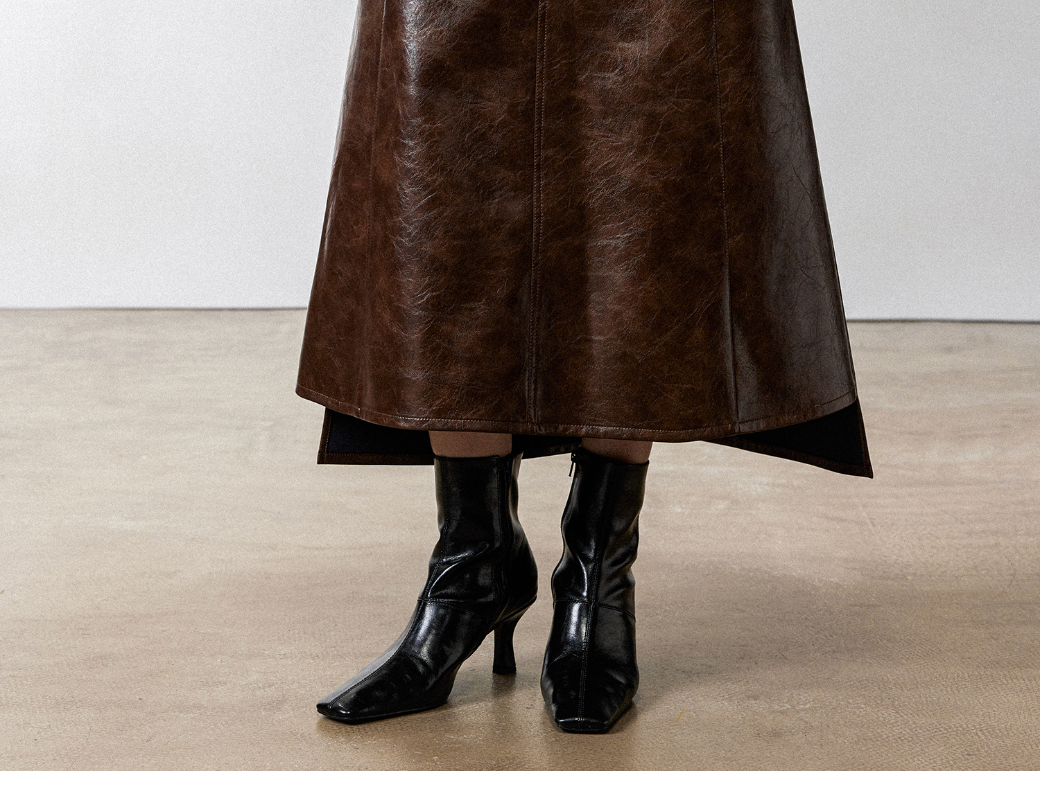 西嘉|PU油蜡皮美拉德棕色皮裙半身裙女2024年冬季解构后开衩A字裙