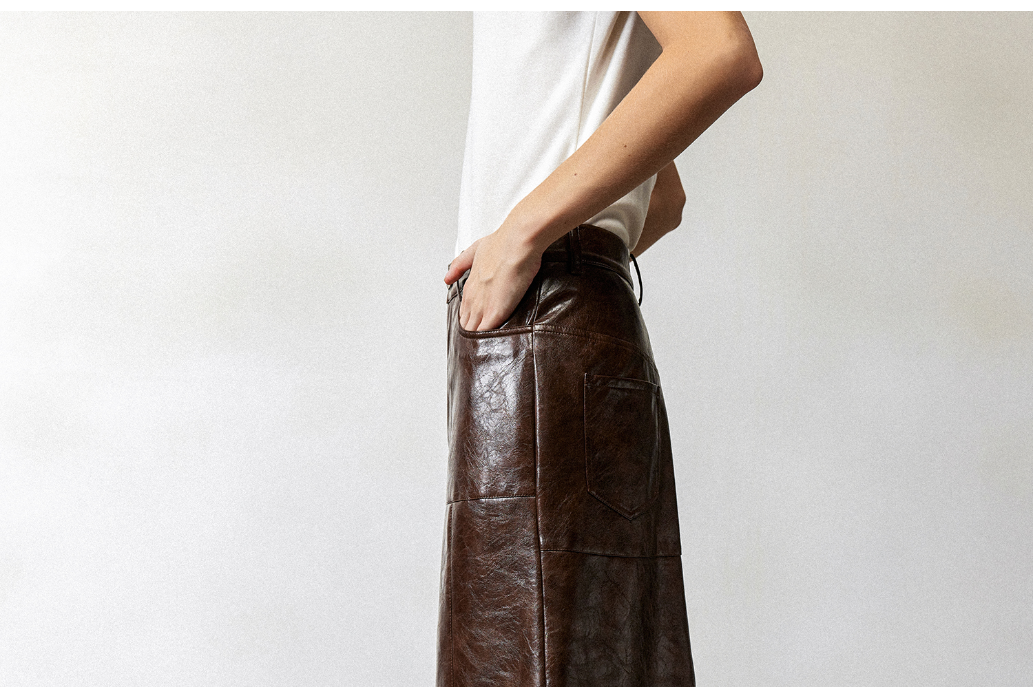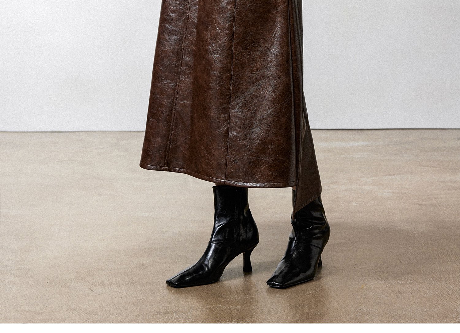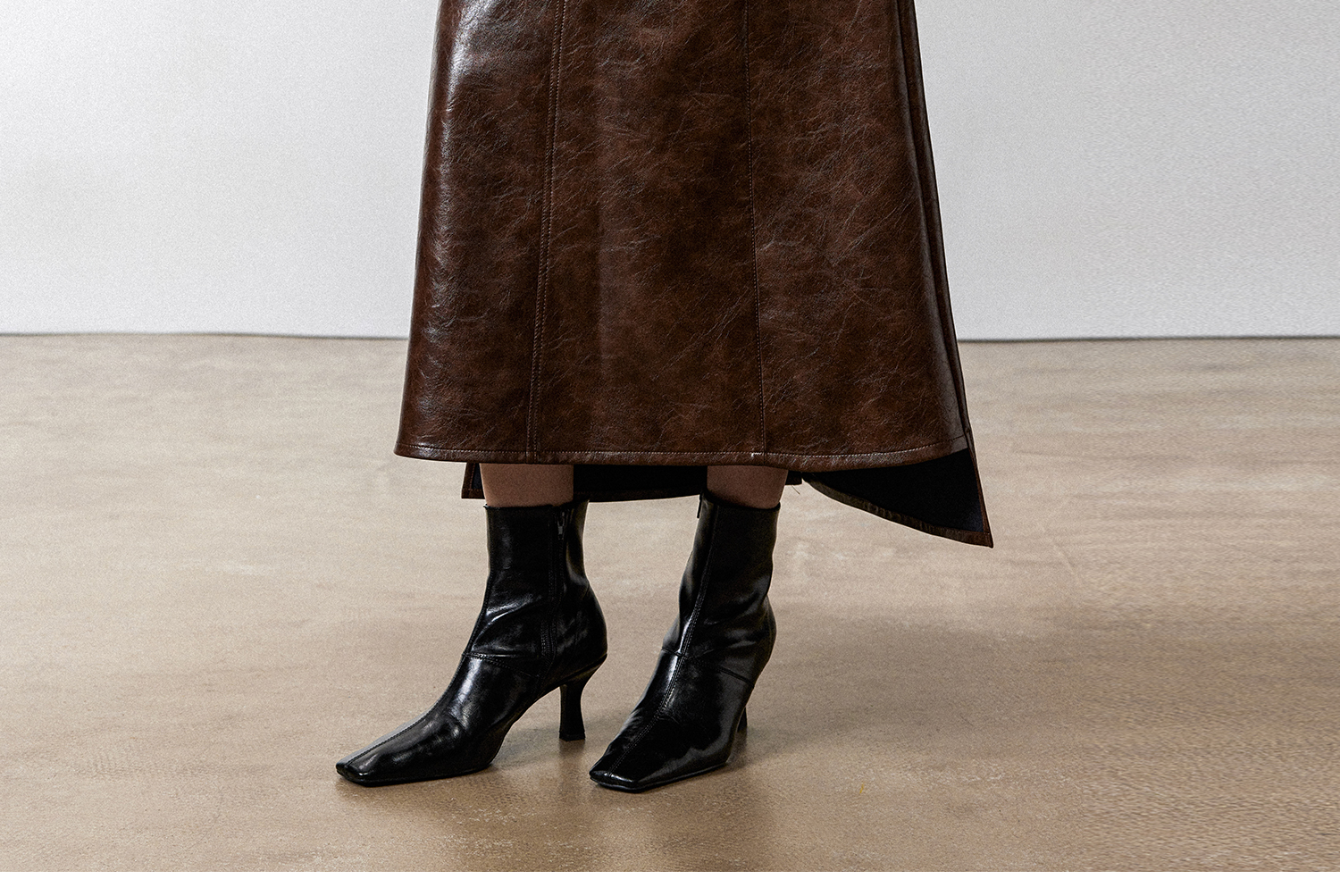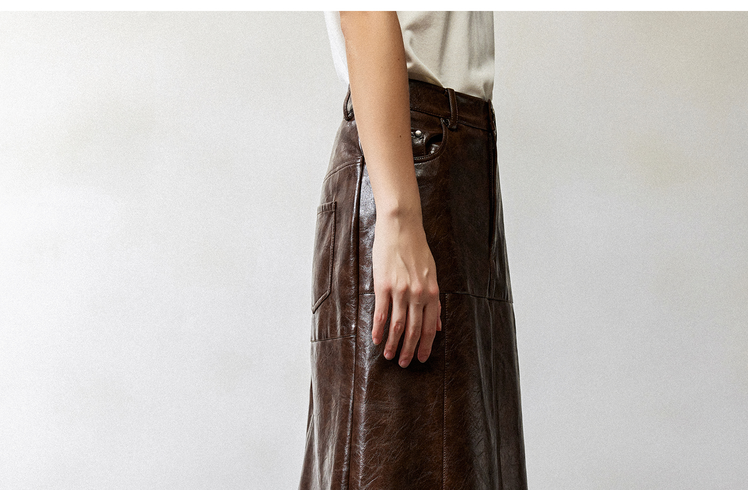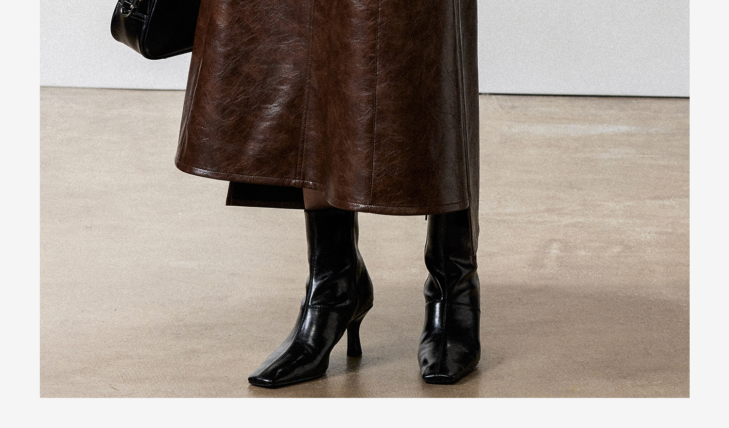 西嘉|PU油蜡皮美拉德棕色皮裙半身裙女2024年冬季解构后开衩A字裙