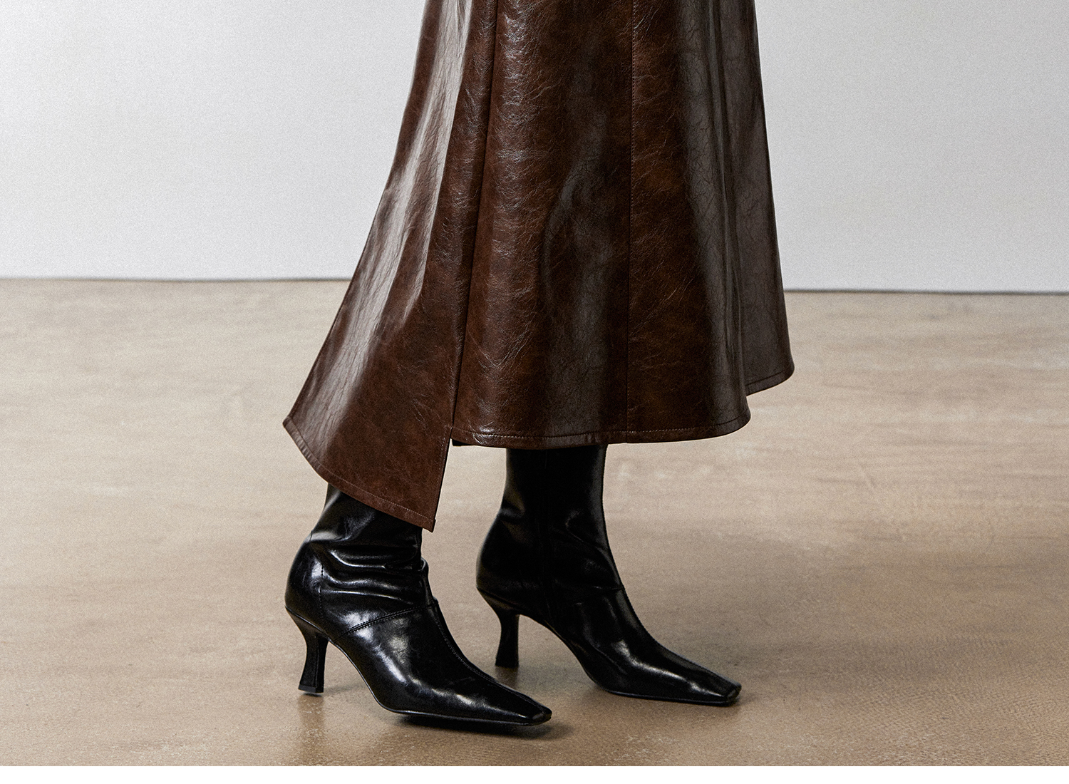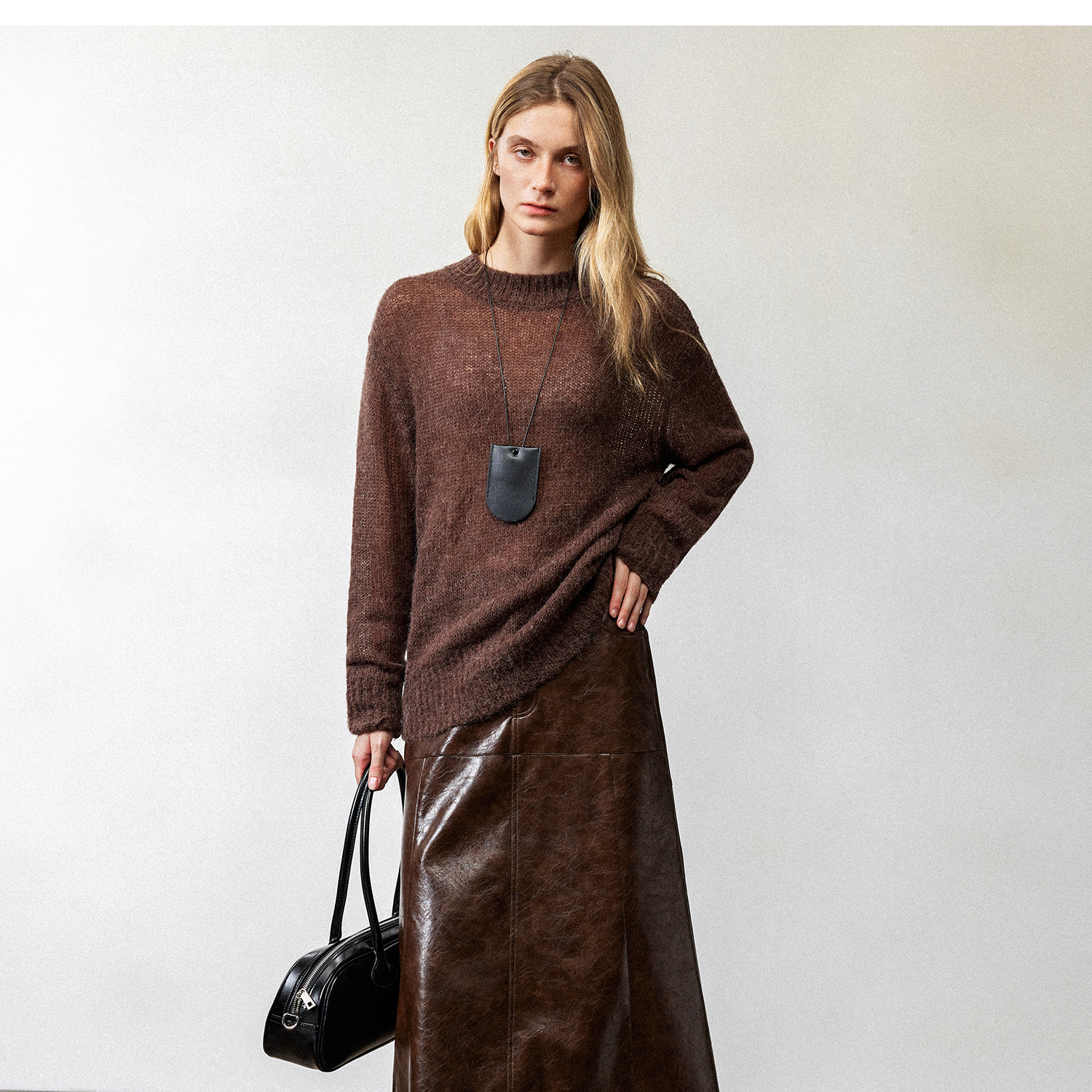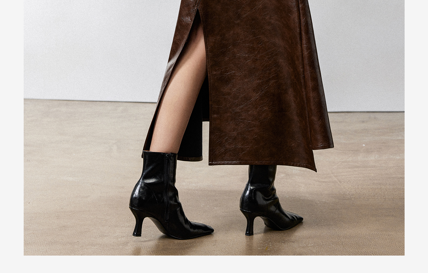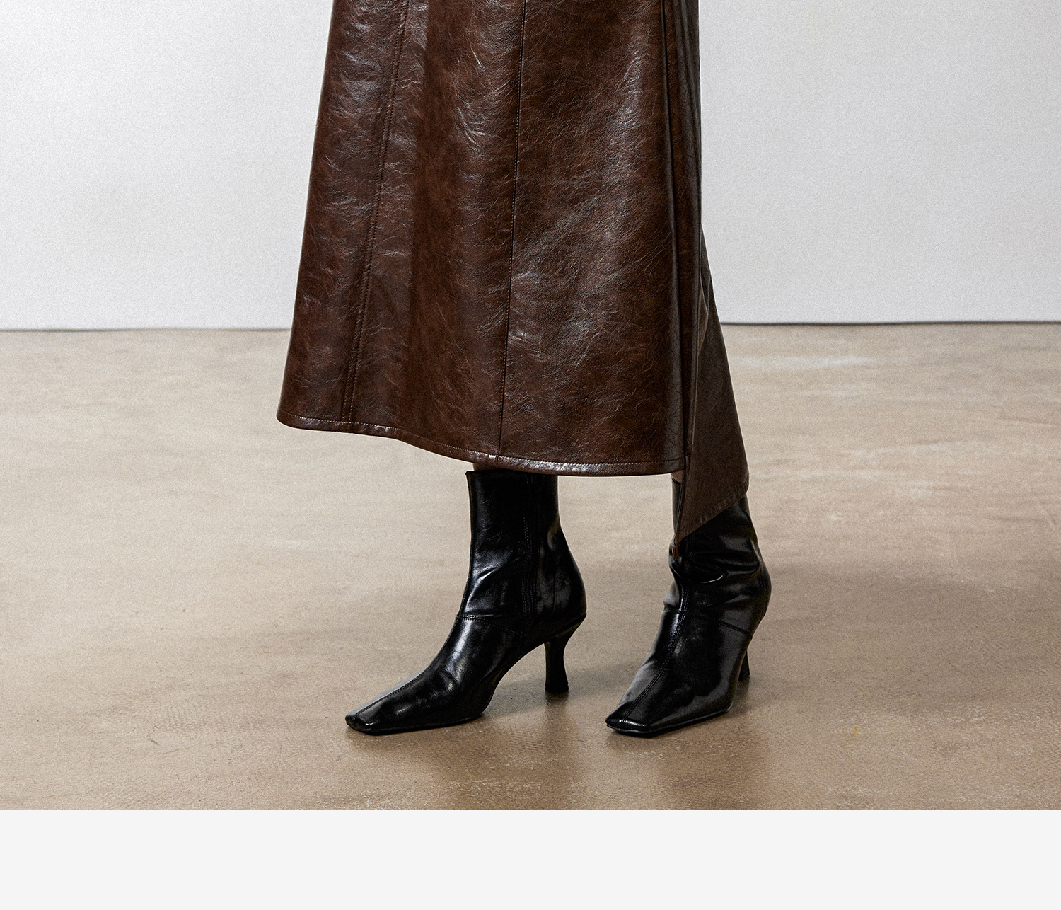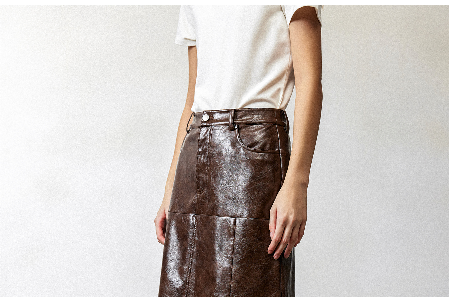 西嘉|PU油蜡皮美拉德棕色皮裙半身裙女2024年冬季解构后开衩A字裙