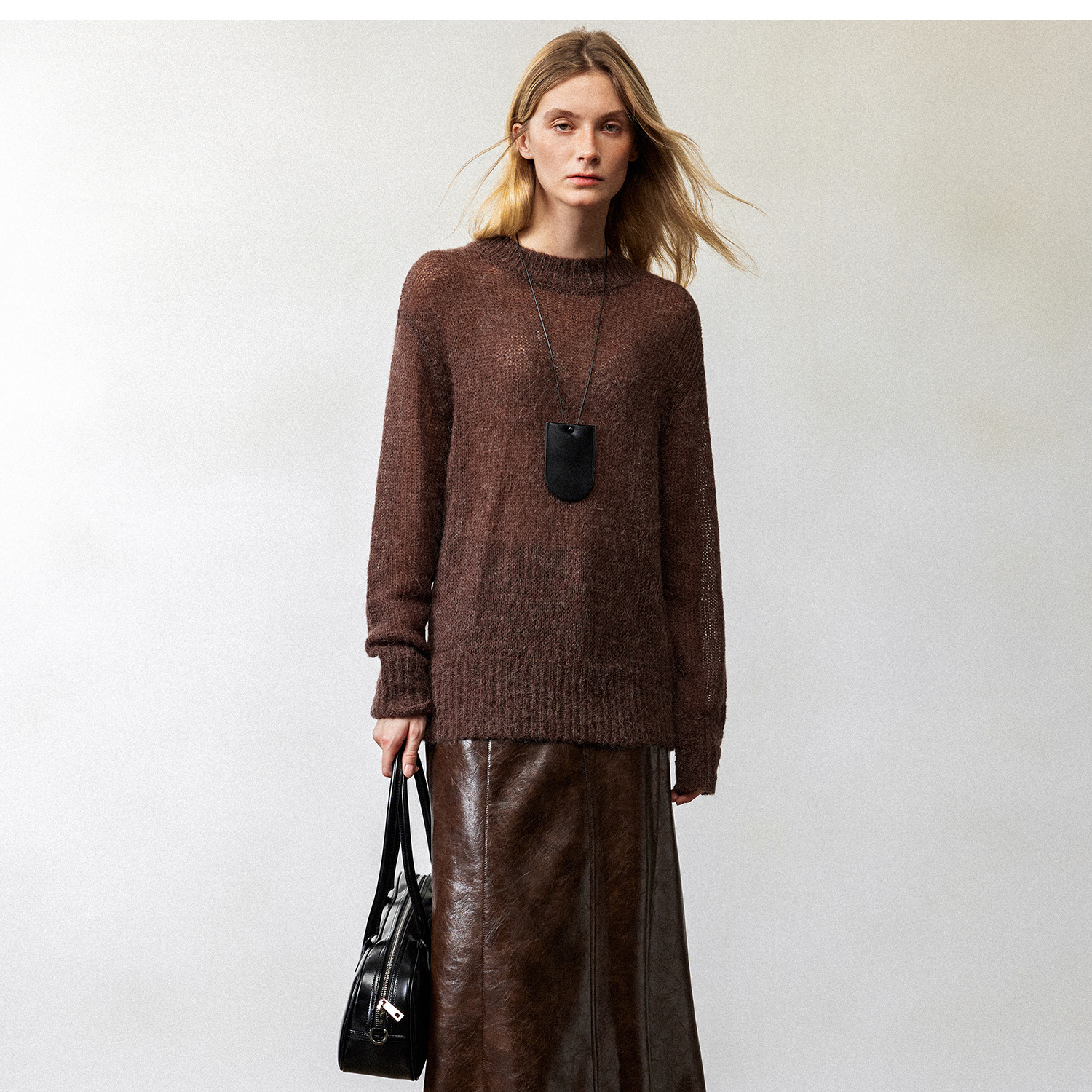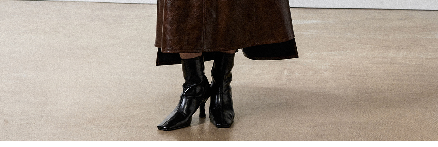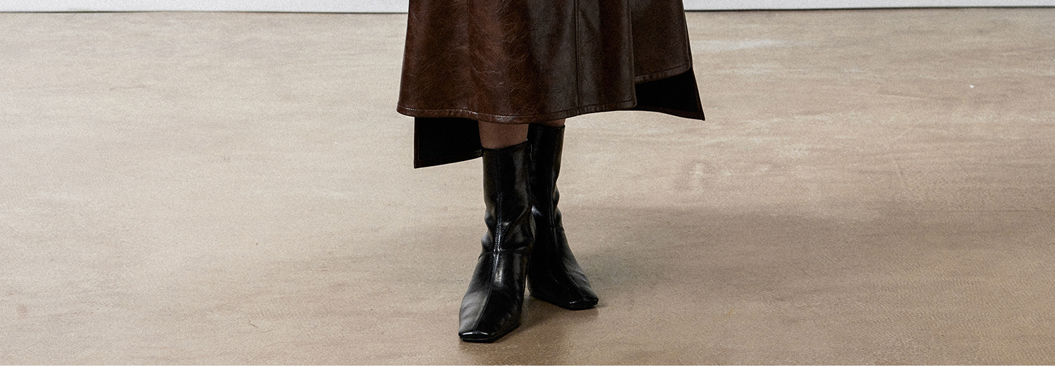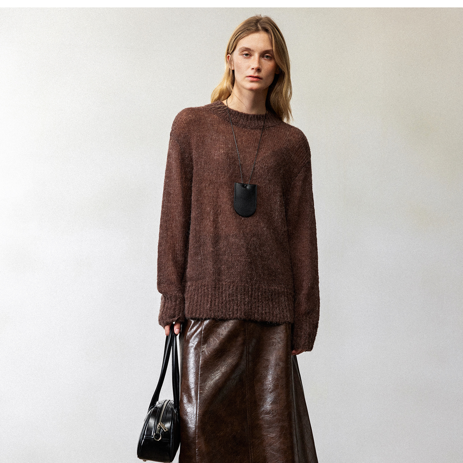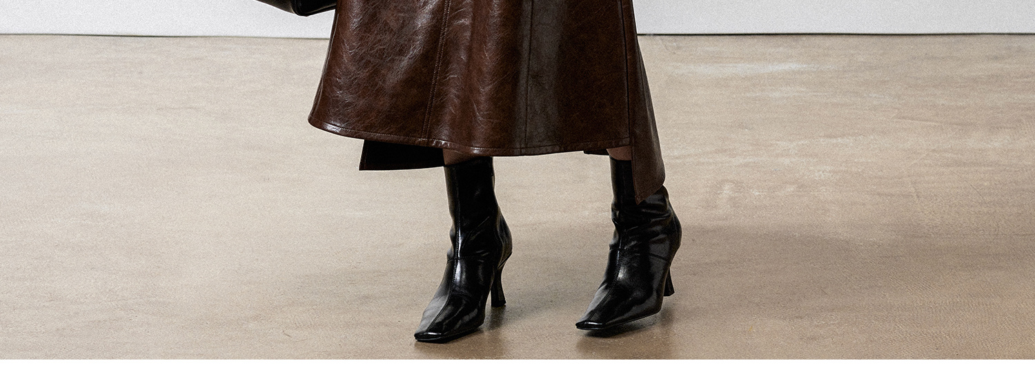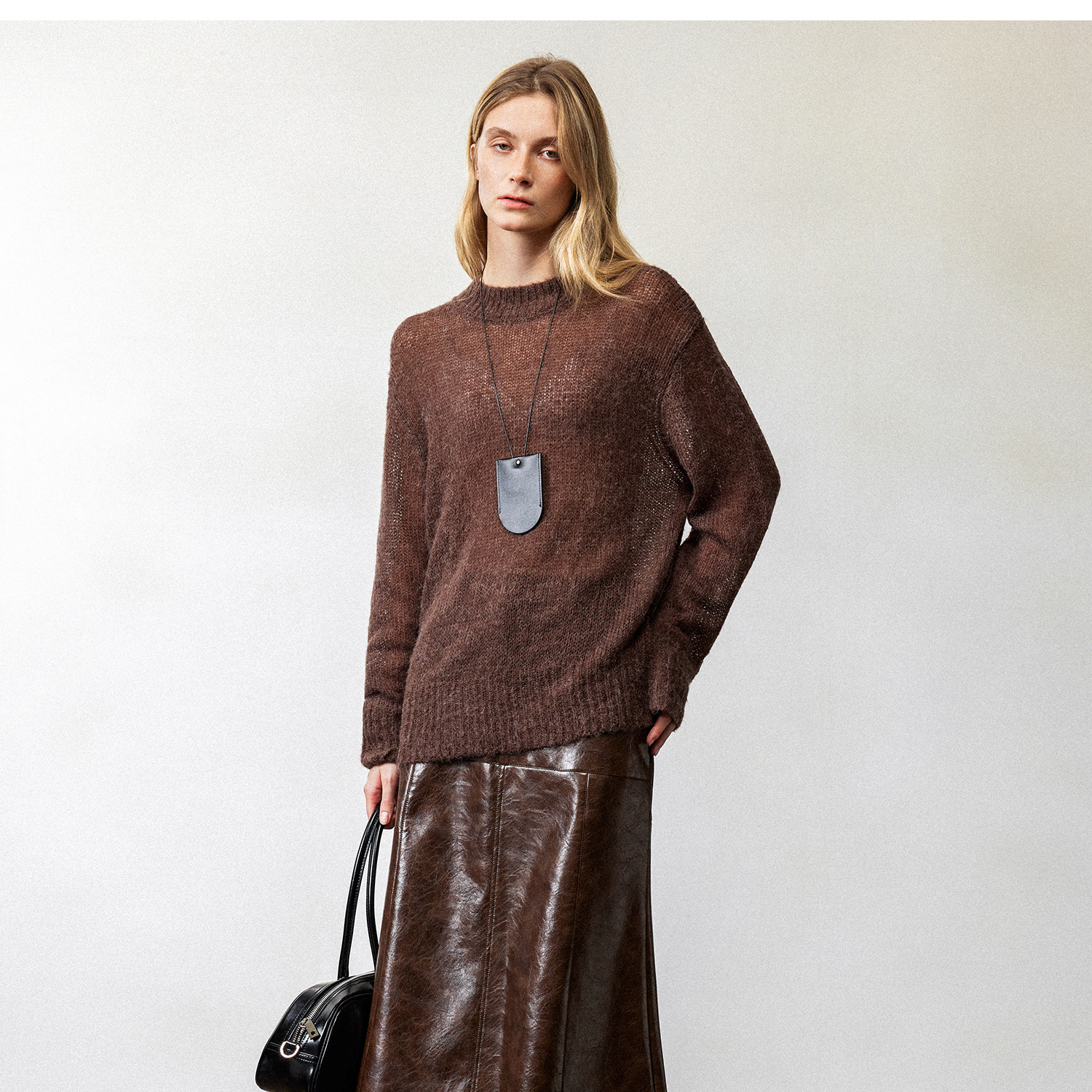 西嘉|PU油蜡皮美拉德棕色皮裙半身裙女2024年冬季解构后开衩A字裙