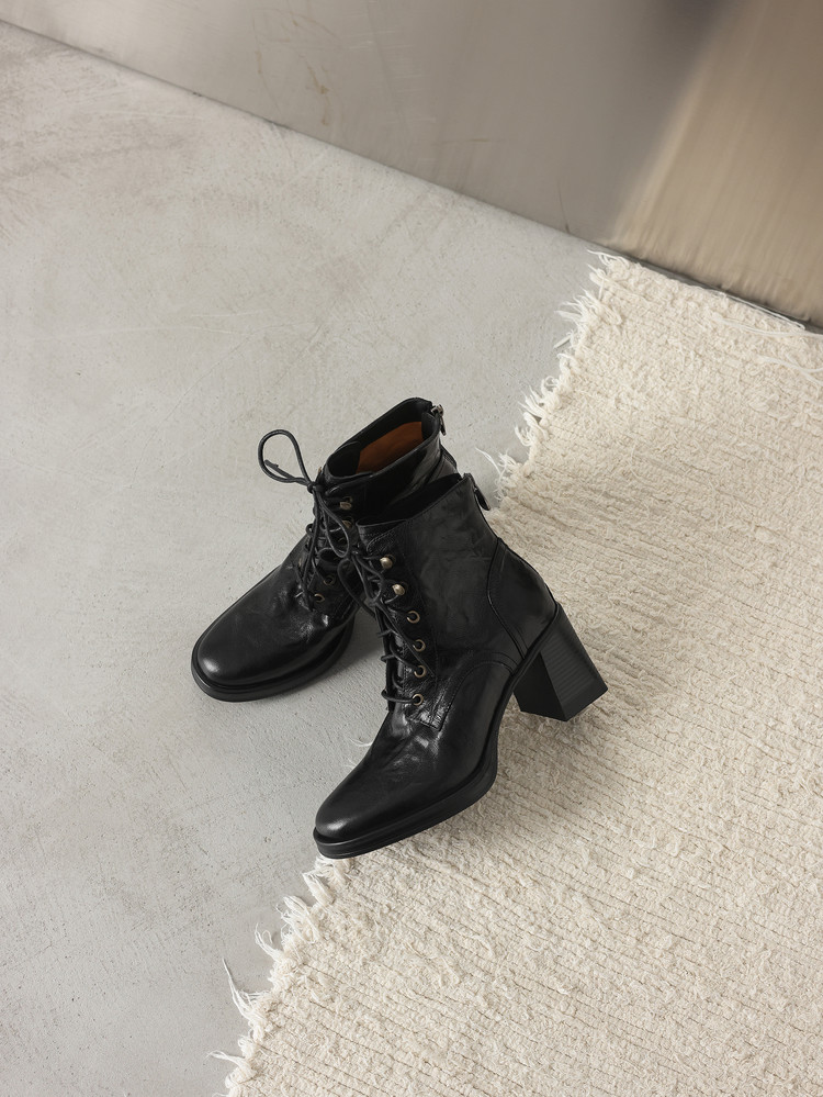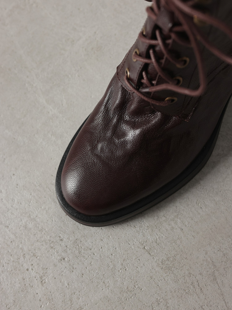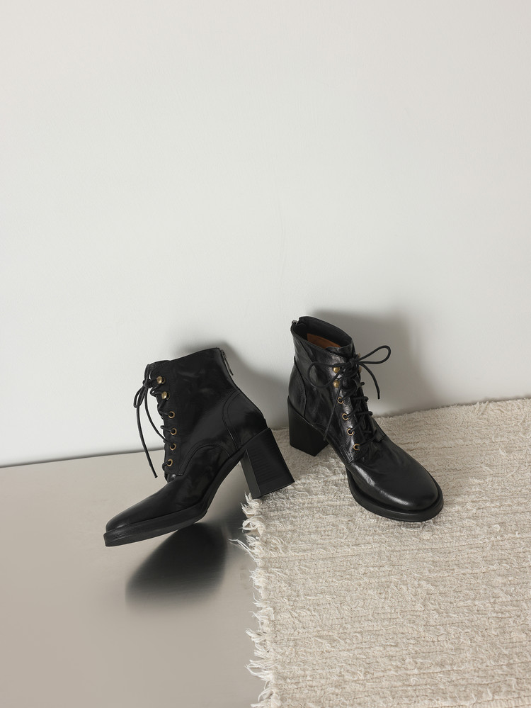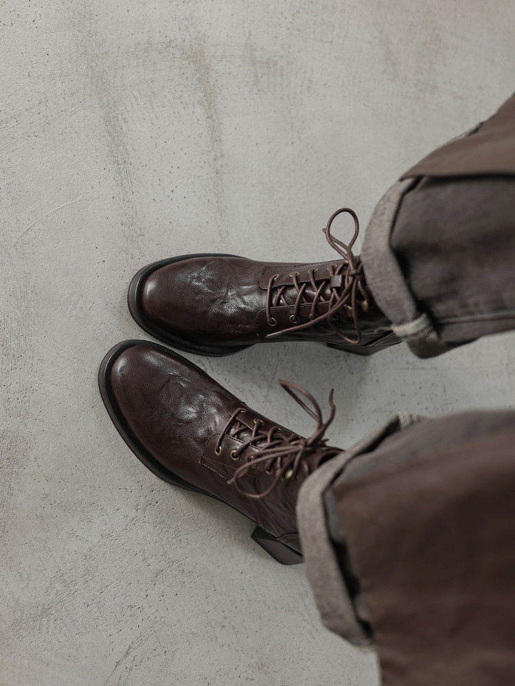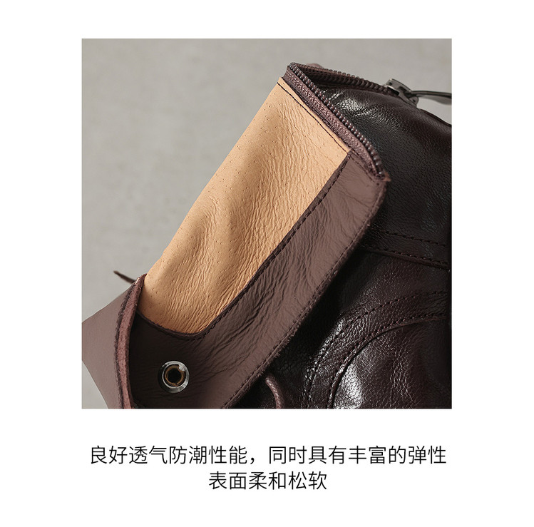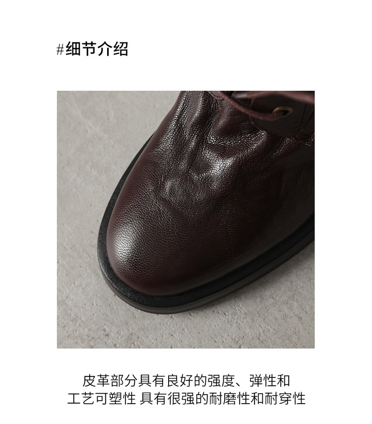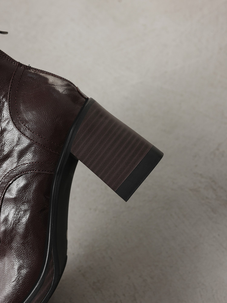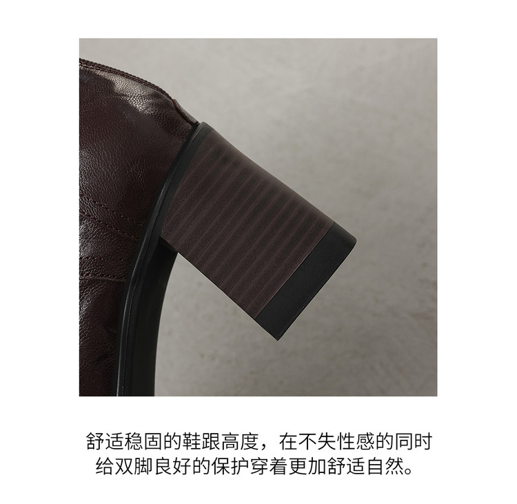 【预售5天】真皮方头粗跟马丁靴女秋冬英伦风复古百搭高跟系带短靴HB&1408