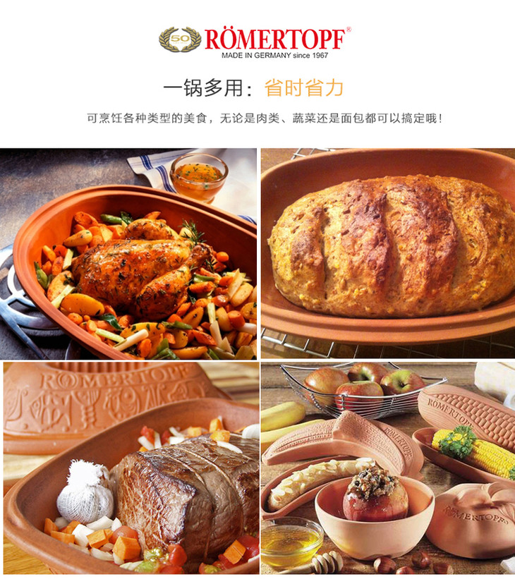 德国原产ROMERTOPF陶制烤锅多功能多用途烤锅现代造型