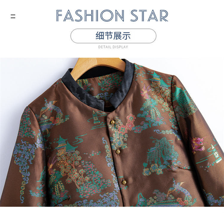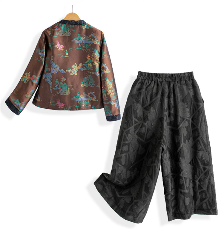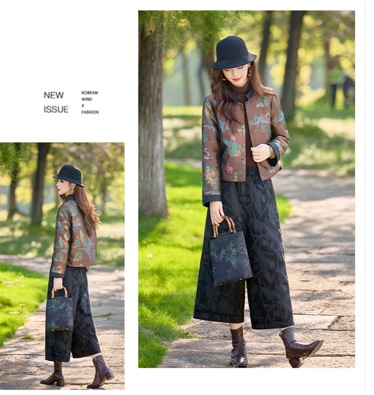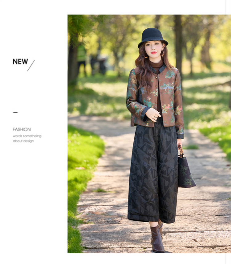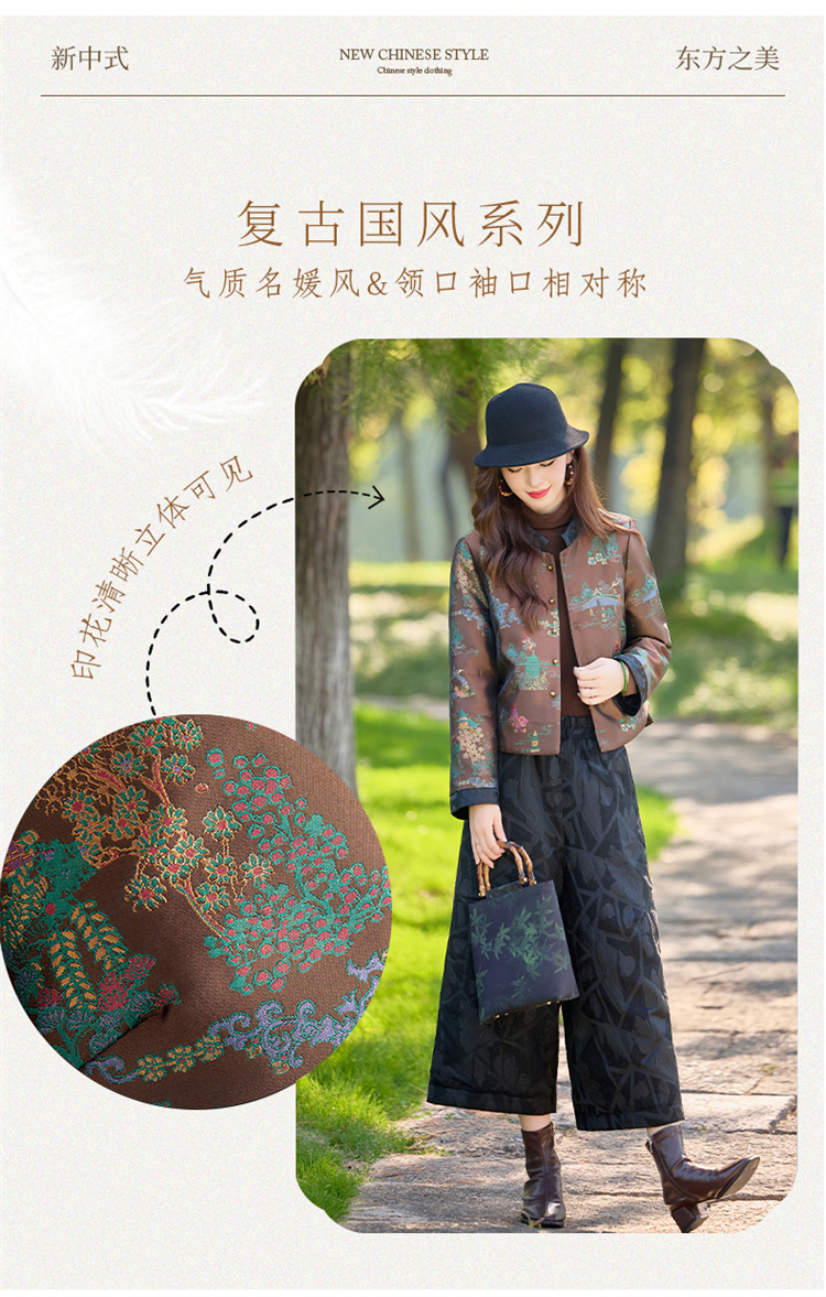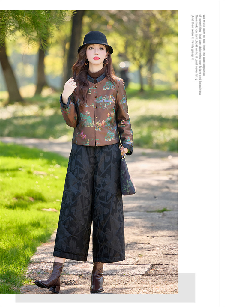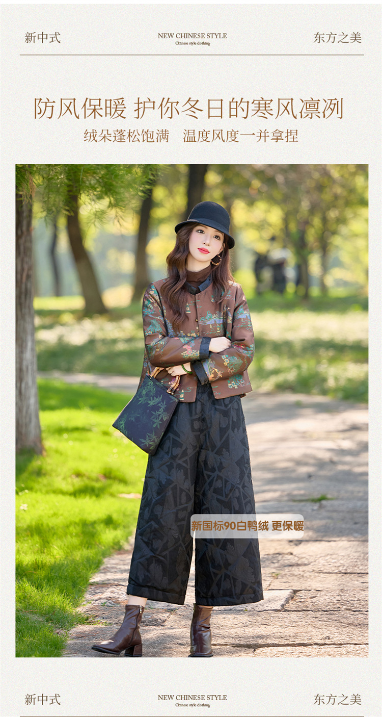 新中式短款提花羽绒短外套,阔腿九分羽绒裤两件套HR-SYY2718A-2