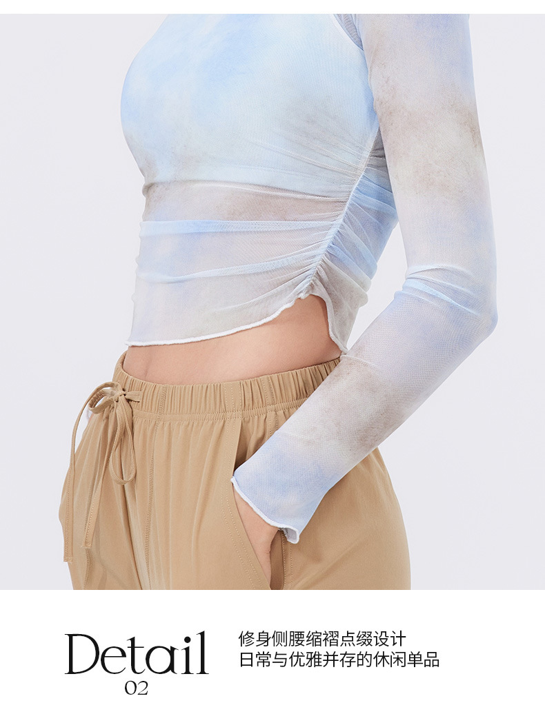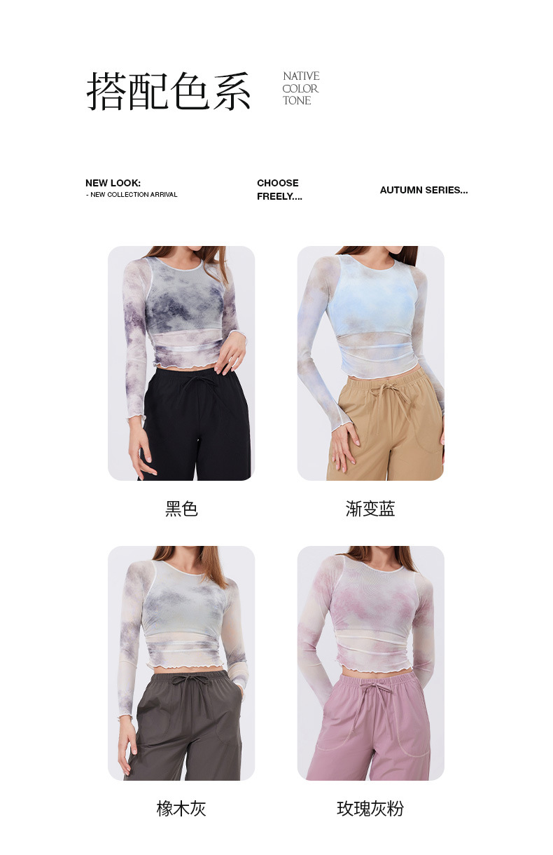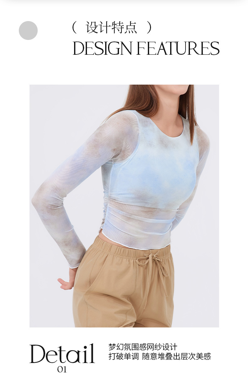 跃牌【禅语梵心】渐变纱假两件运动T恤女长袖带胸垫瑜珈服网纱上衣CX4073