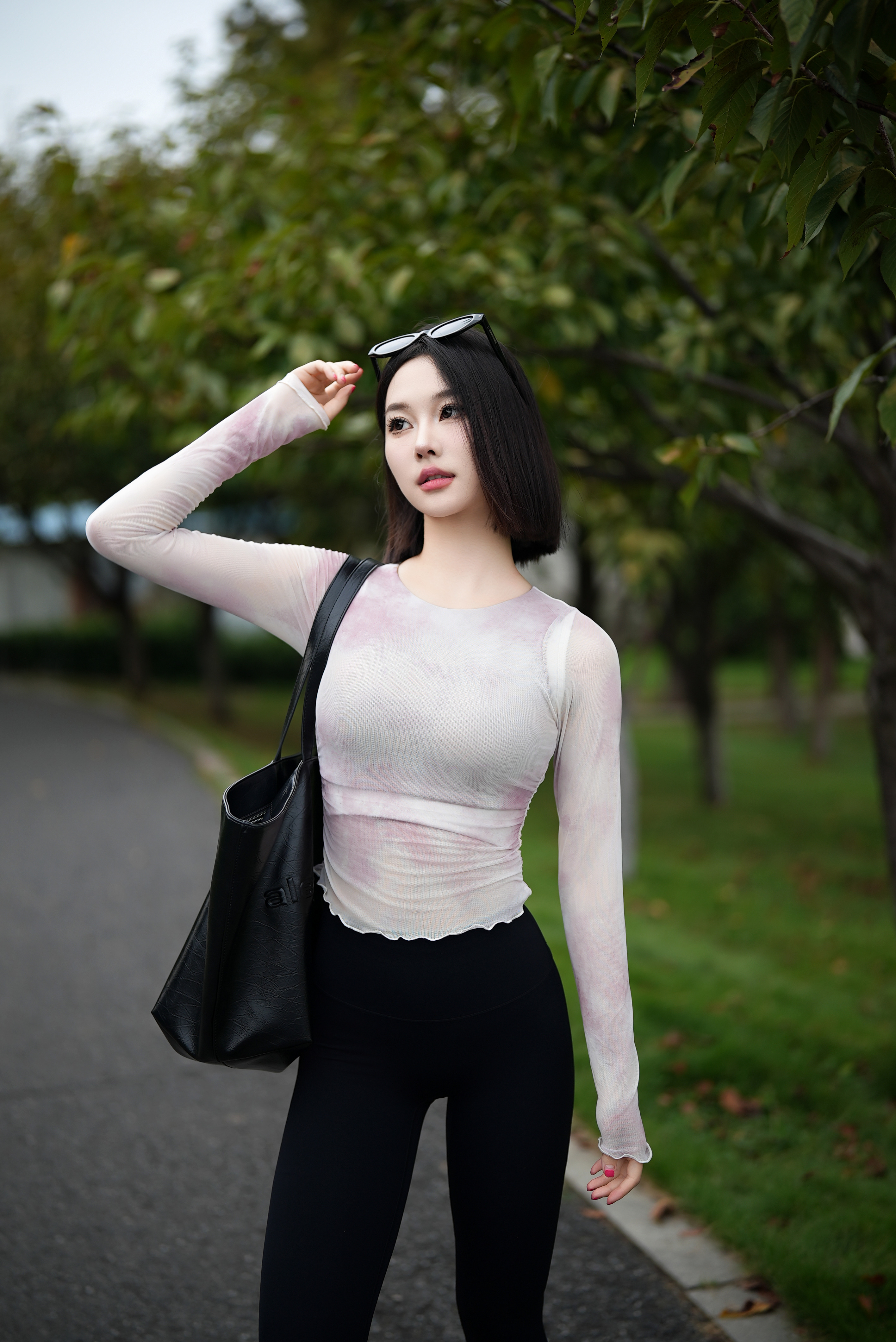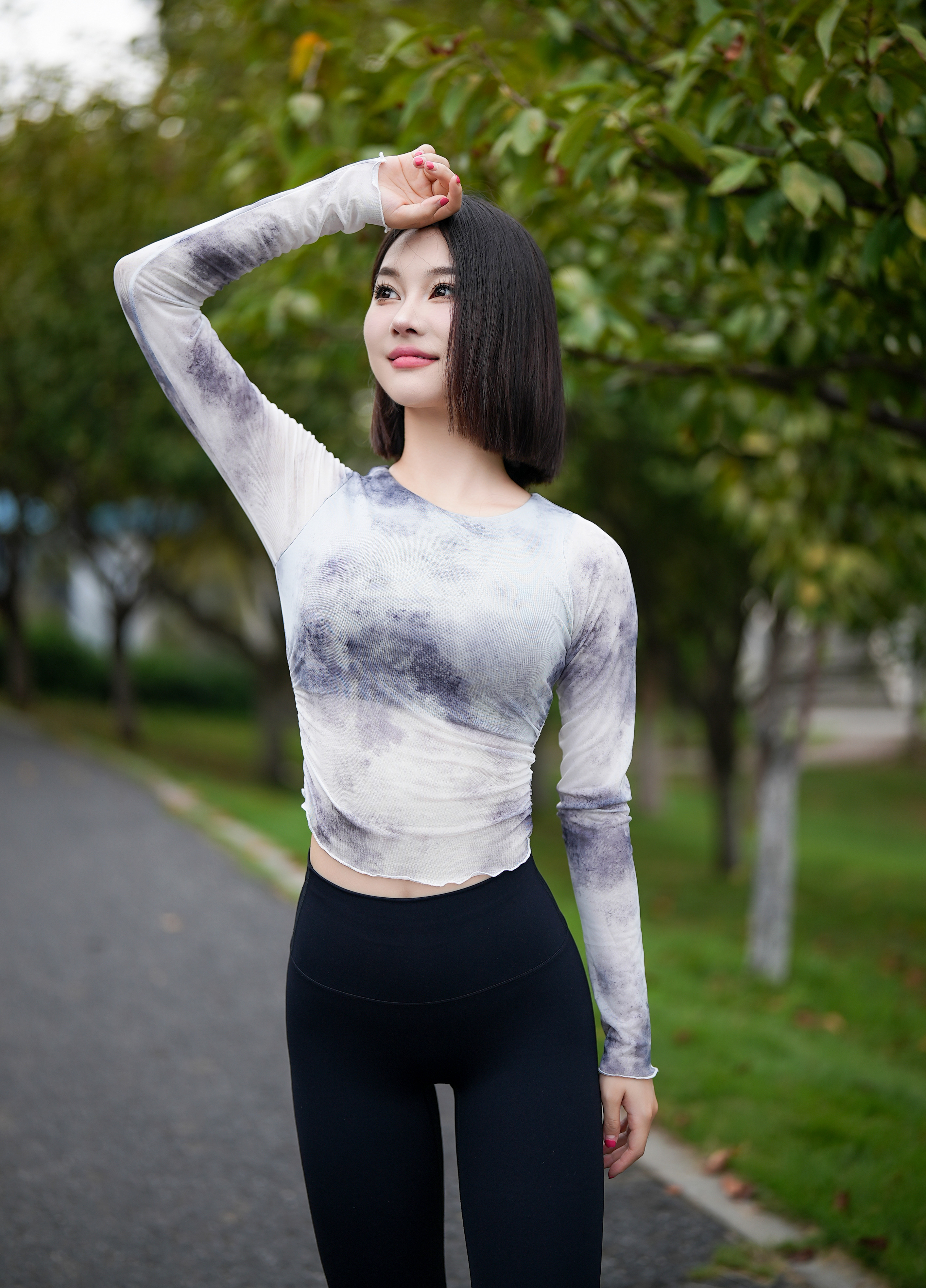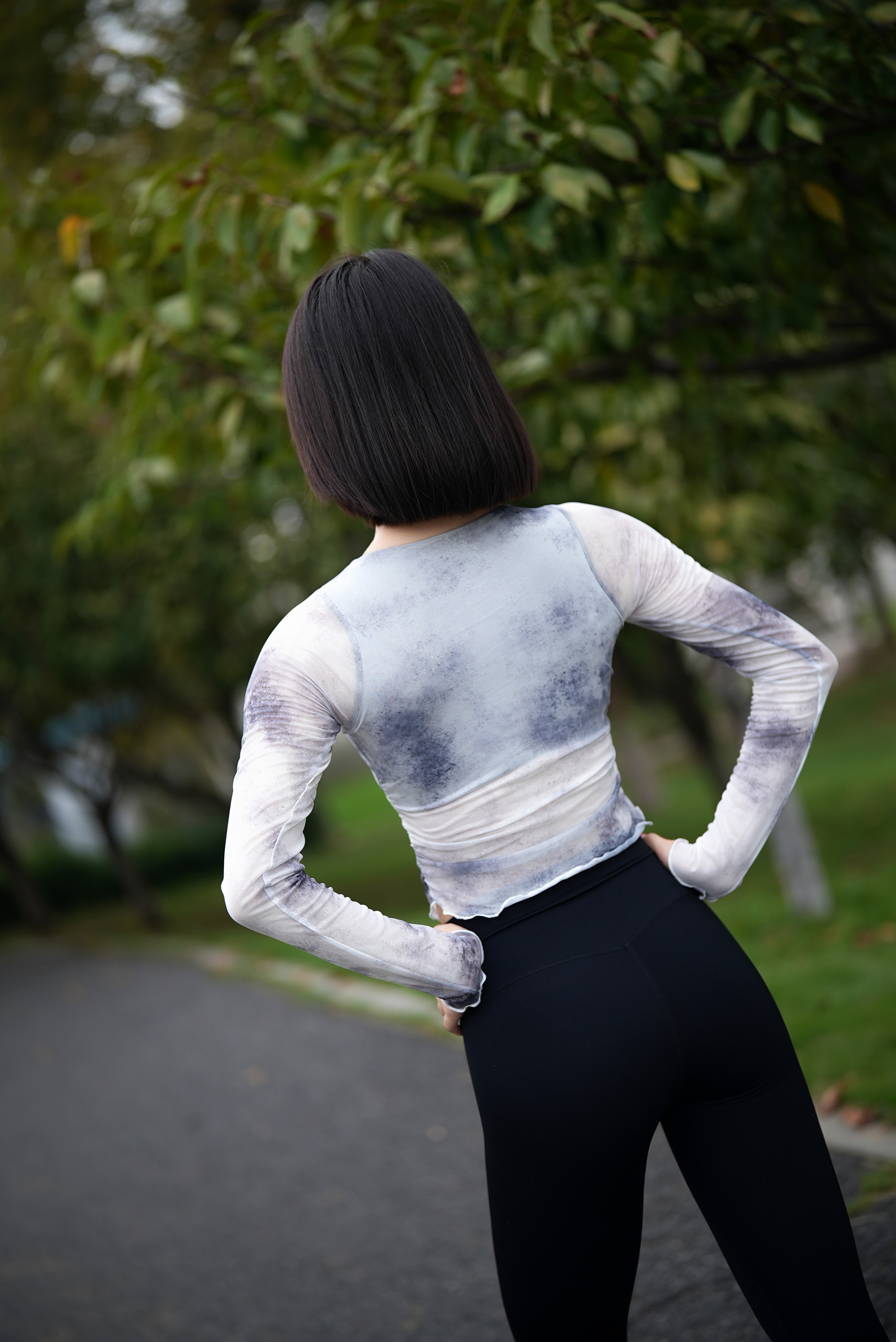 跃牌【禅语梵心】渐变纱假两件运动T恤女长袖带胸垫瑜珈服网纱上衣CX4073
