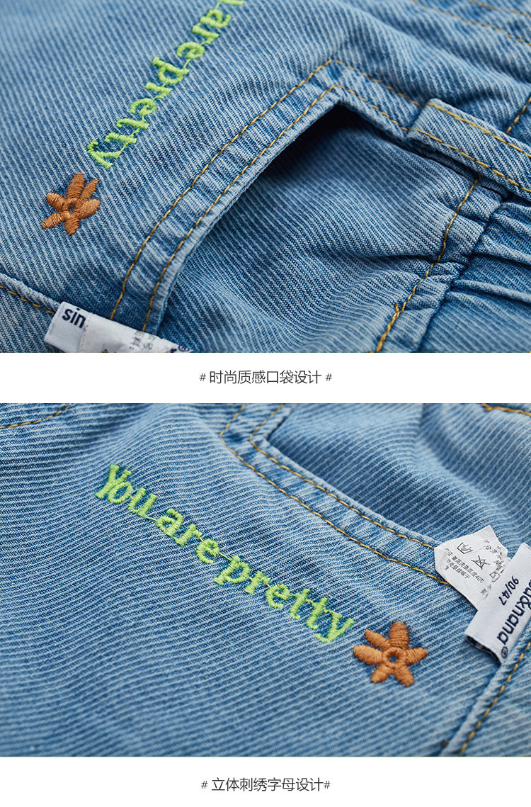 【辛巴娜娜】simbanana前卫潮范棉弹水洗柠檬线高腰宽松百搭型牛仔裤