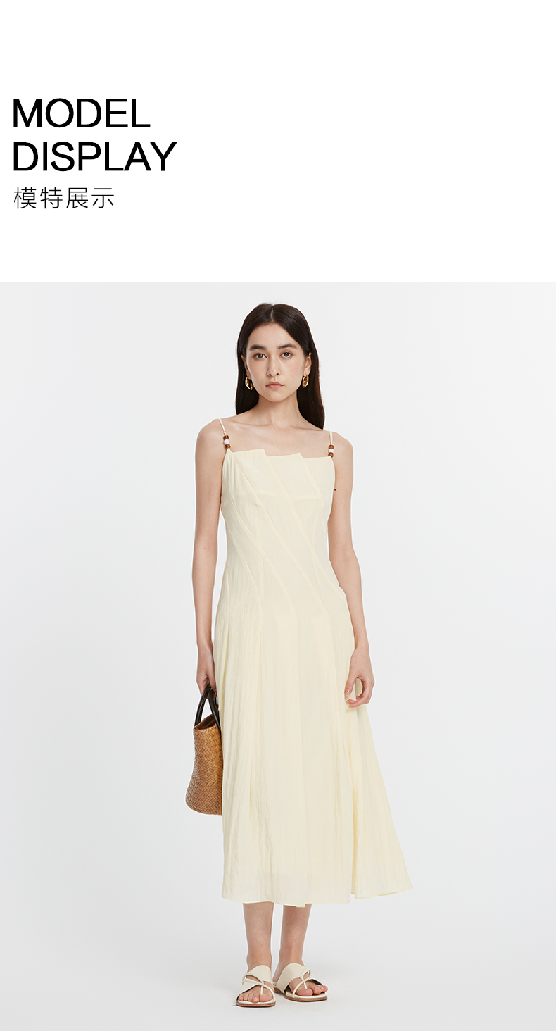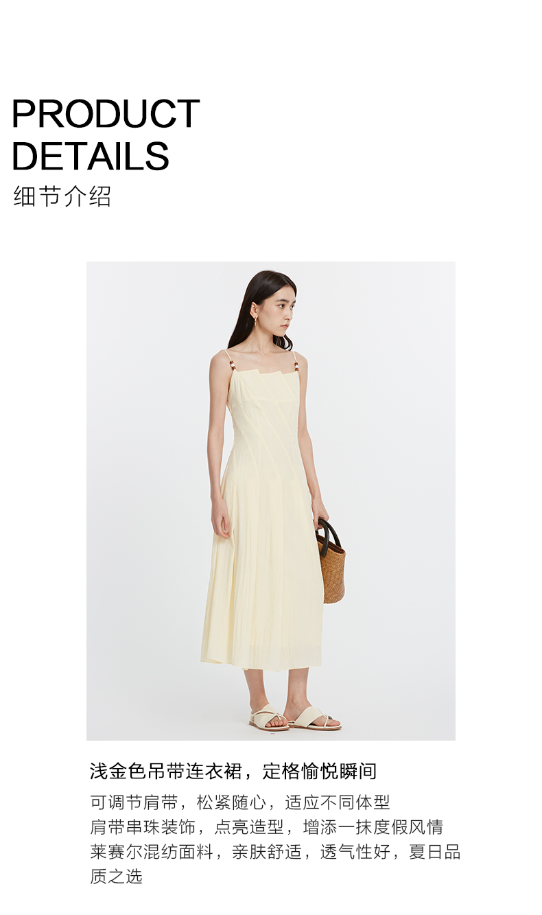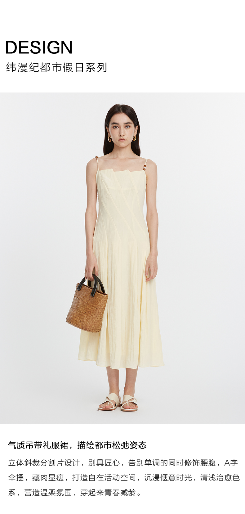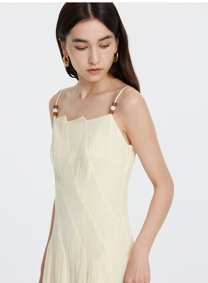 VIMAGE纬漫纪设计感温柔浪漫肩带珠串A字吊带连衣裙夏季新款V2377909