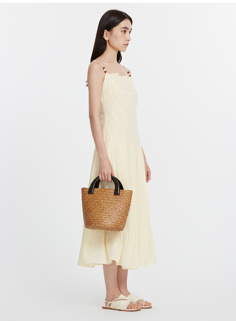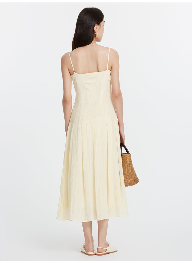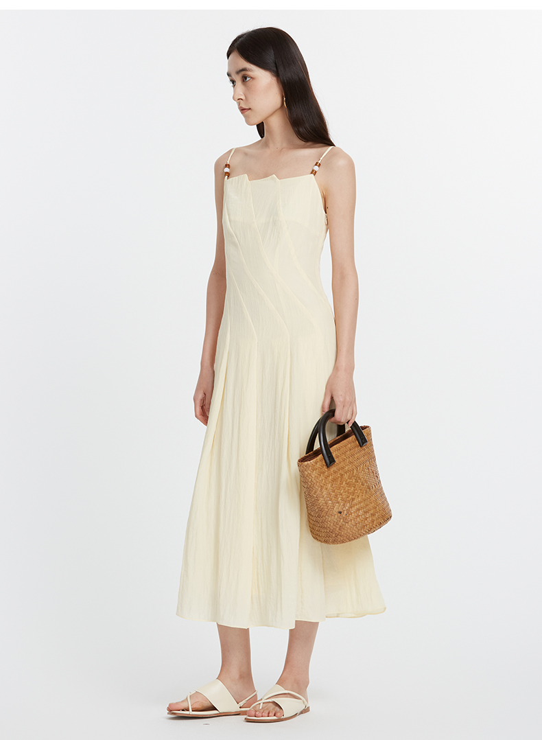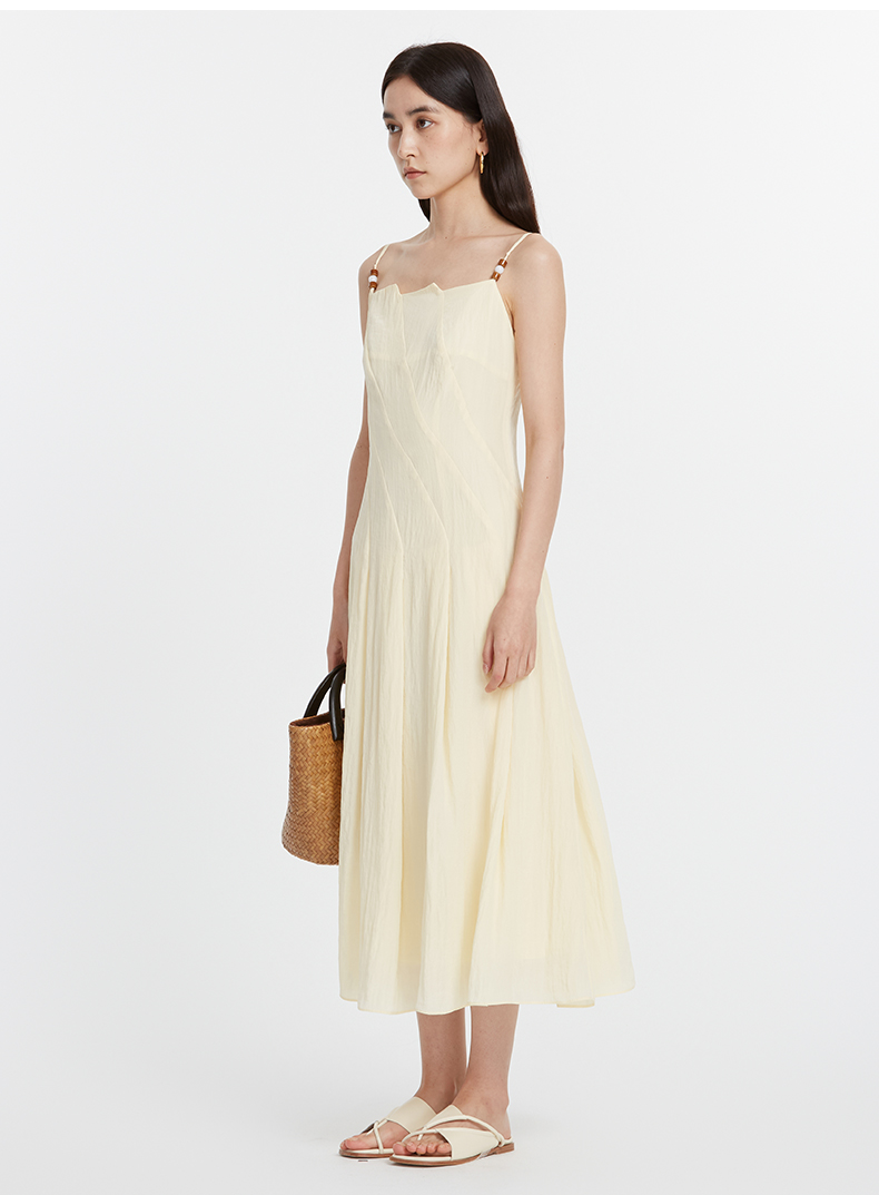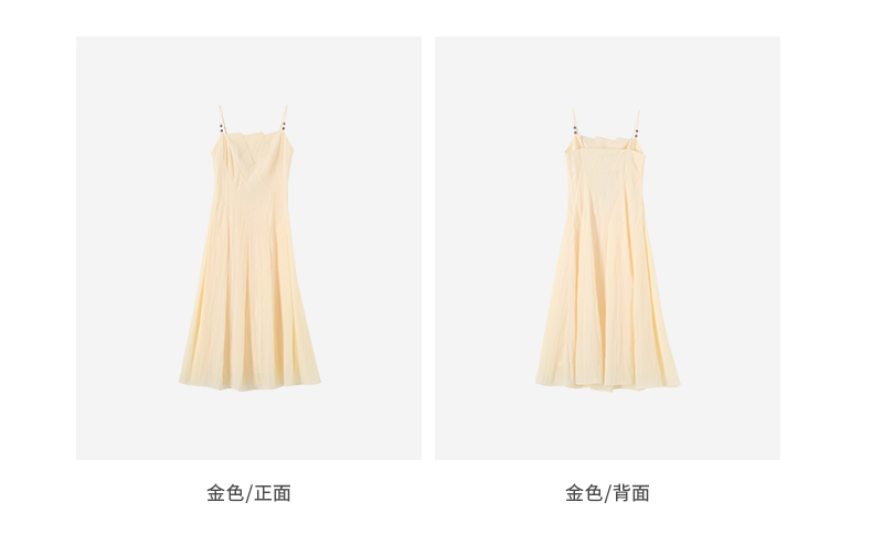 VIMAGE纬漫纪设计感温柔浪漫肩带珠串A字吊带连衣裙夏季新款V2377909