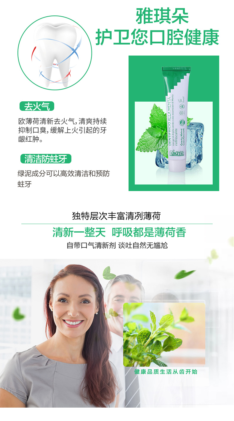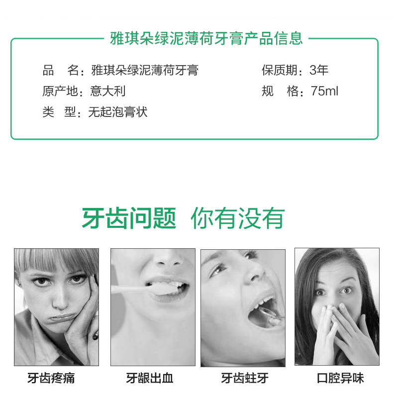 雅琪朵天然绿泥薄荷牙膏 75ML/支