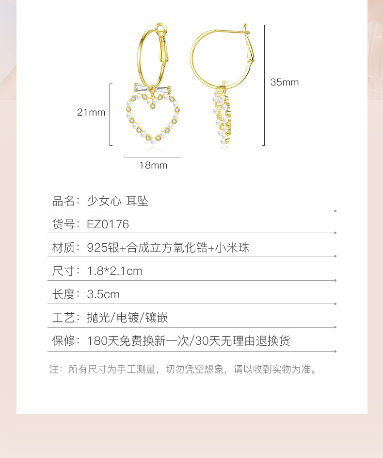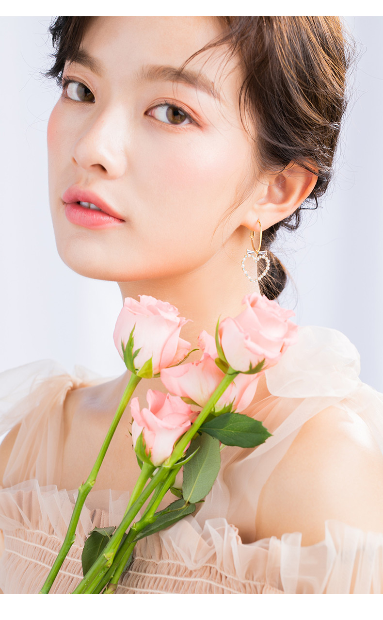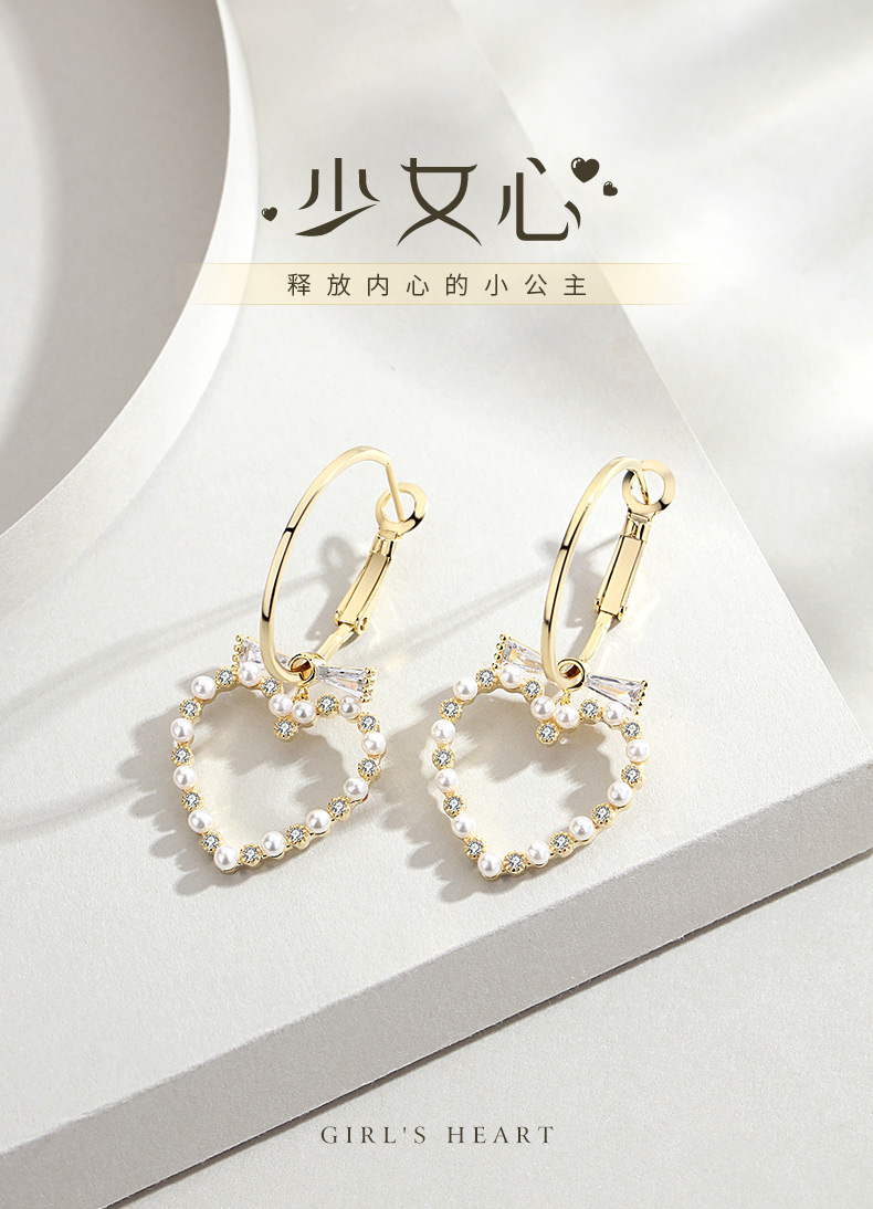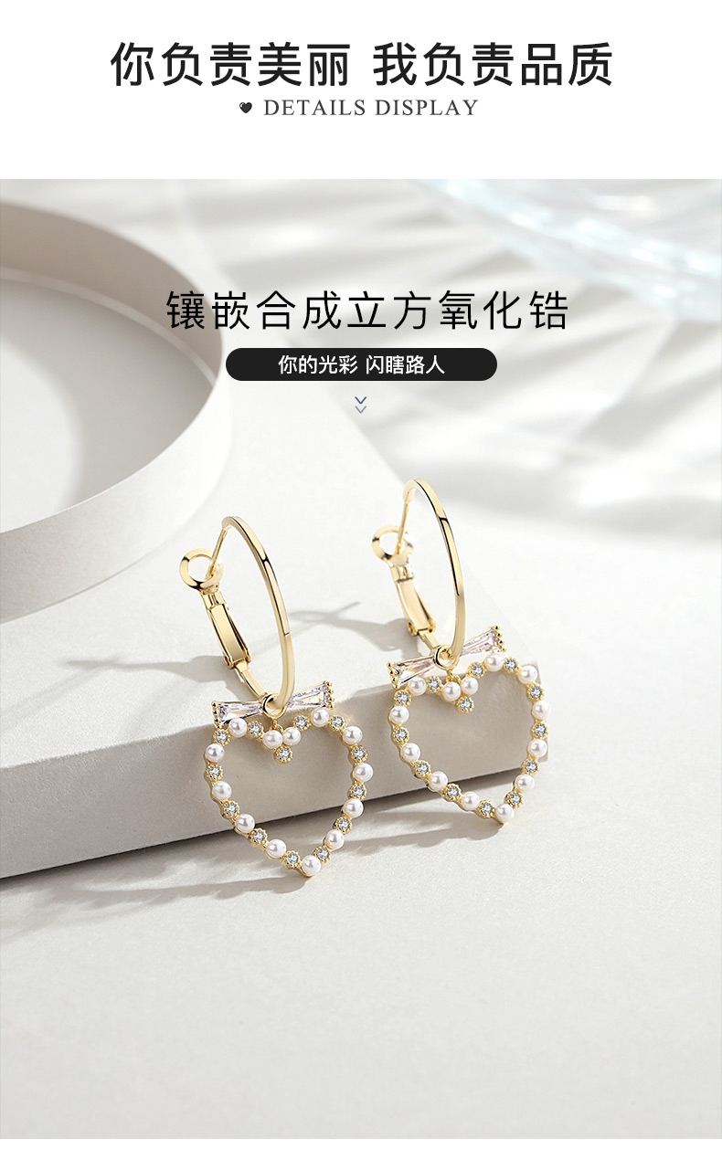 银千惠/s925纯银爱心耳坠女气质百搭耳钉新款潮个性网心形耳环