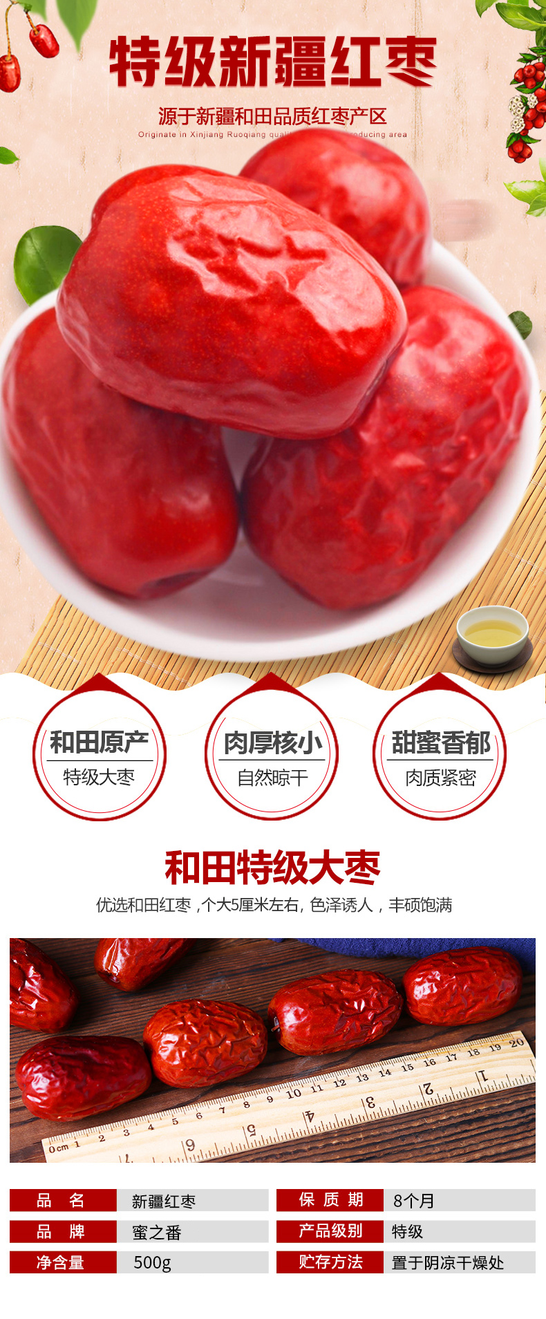 蜜之番(松匠人子品牌)新疆特产和田大枣500g 又大又软,超大个,果肉密实FX