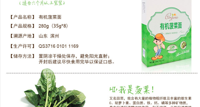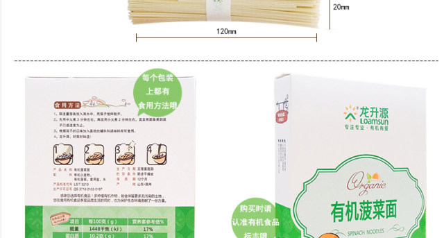 龙升源有机菠菜面380g/盒