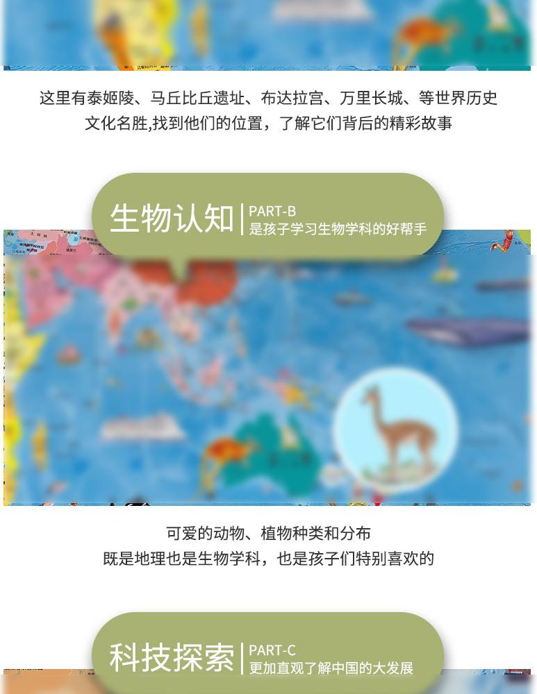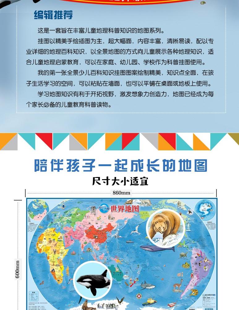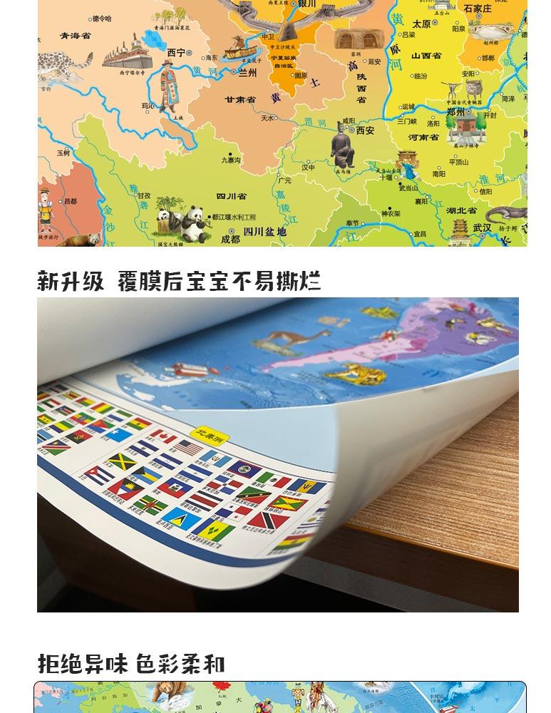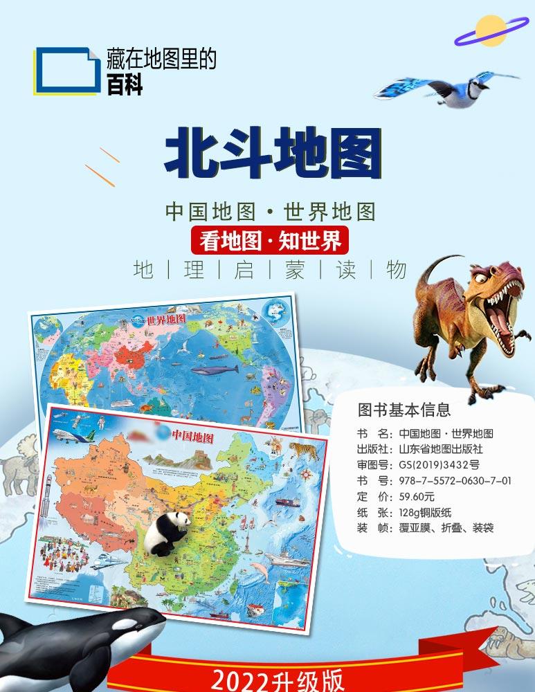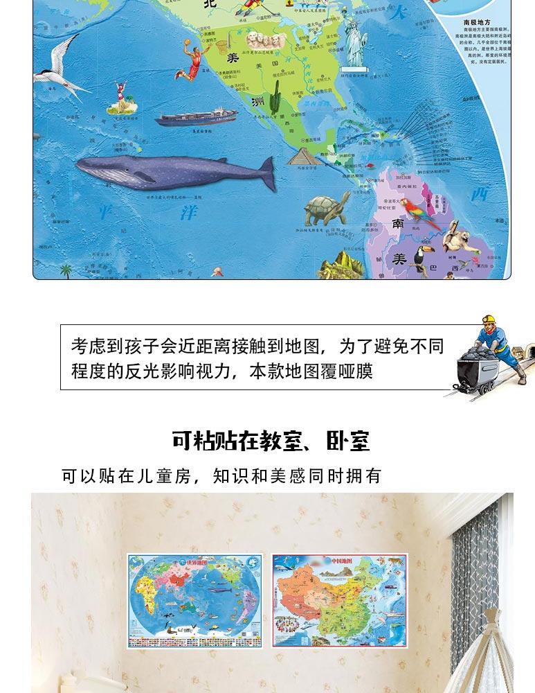 北斗 儿童版中国地图+世界地图 套装全2张 精美可爱地理百科知识