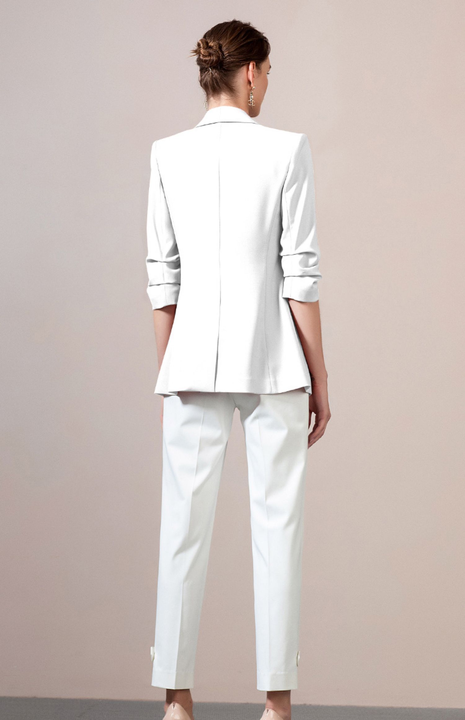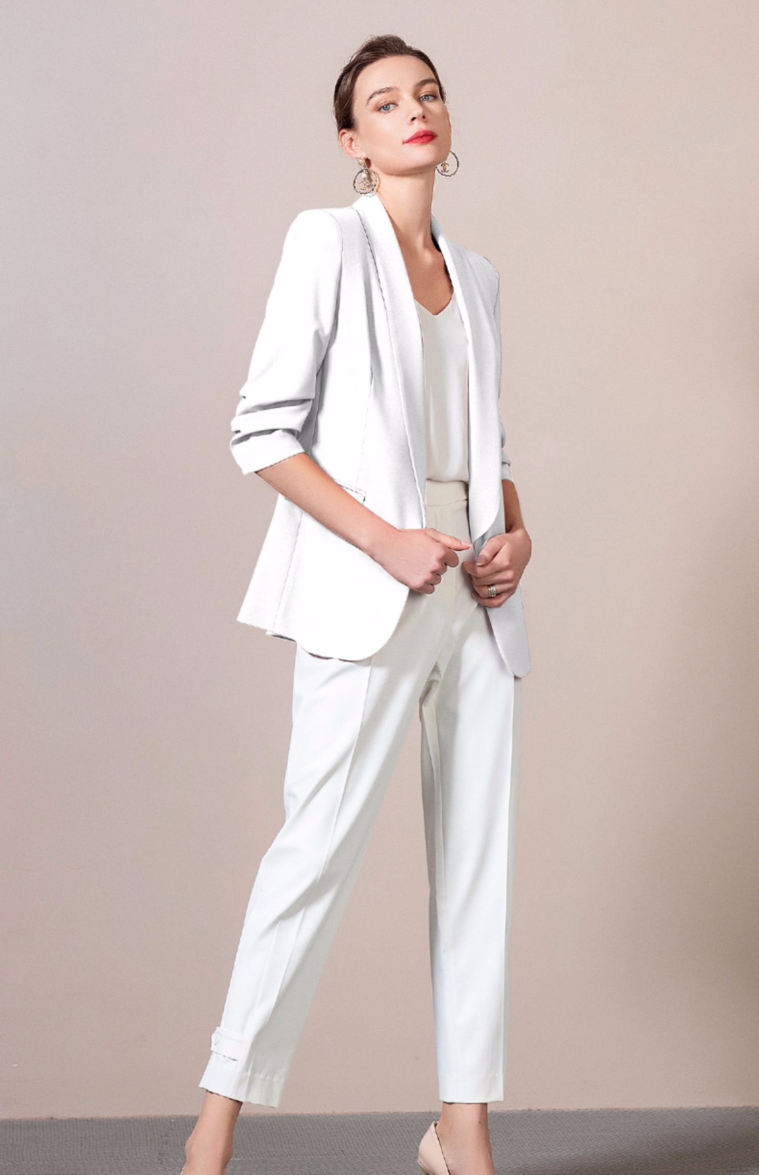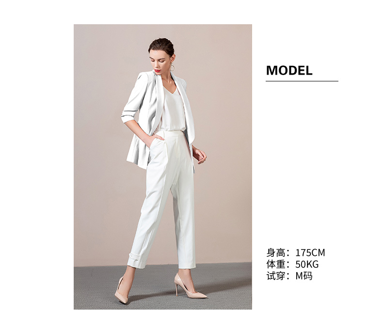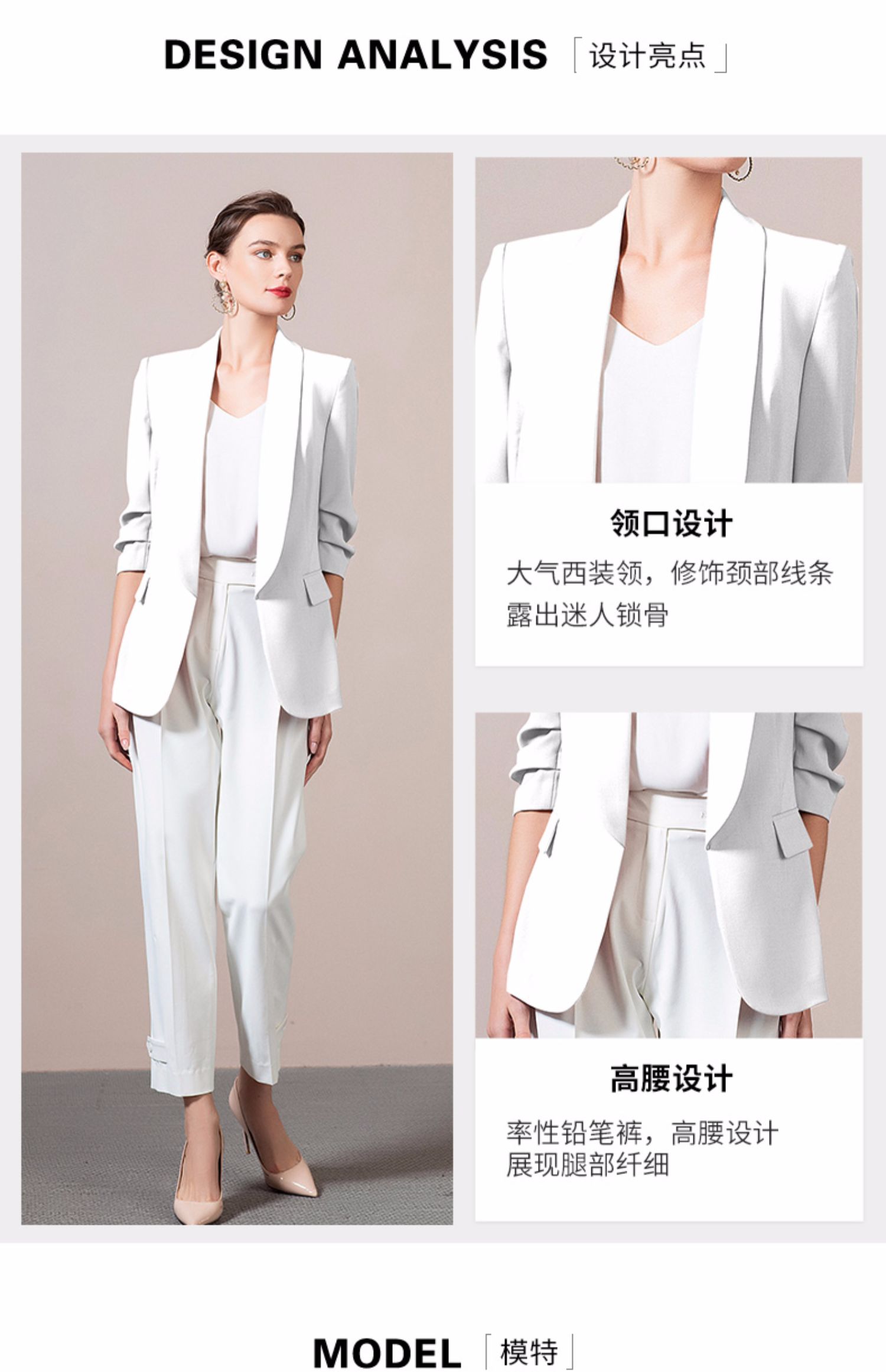 IWY/白色女西装套装短袖职业装时尚气质面试通勤正装修身工作西服 212061C1+212072P1(白)