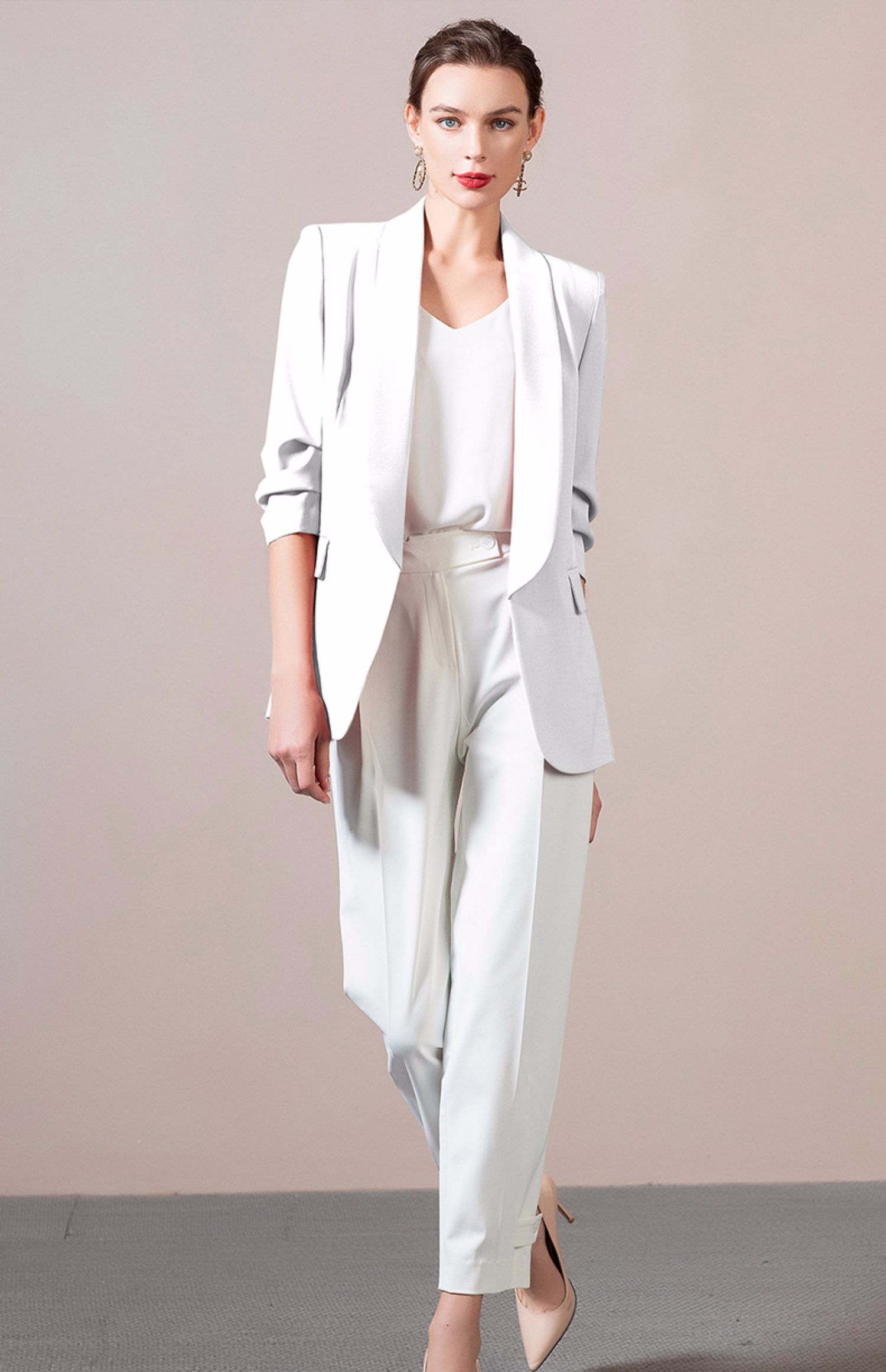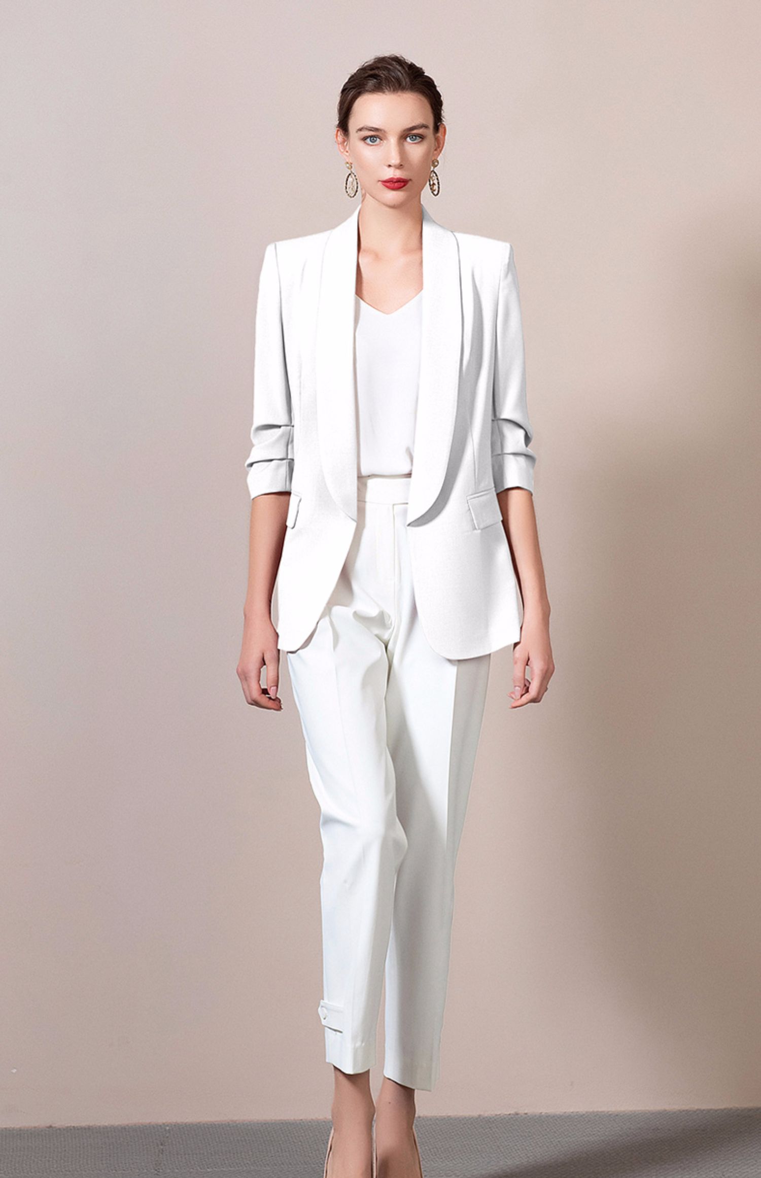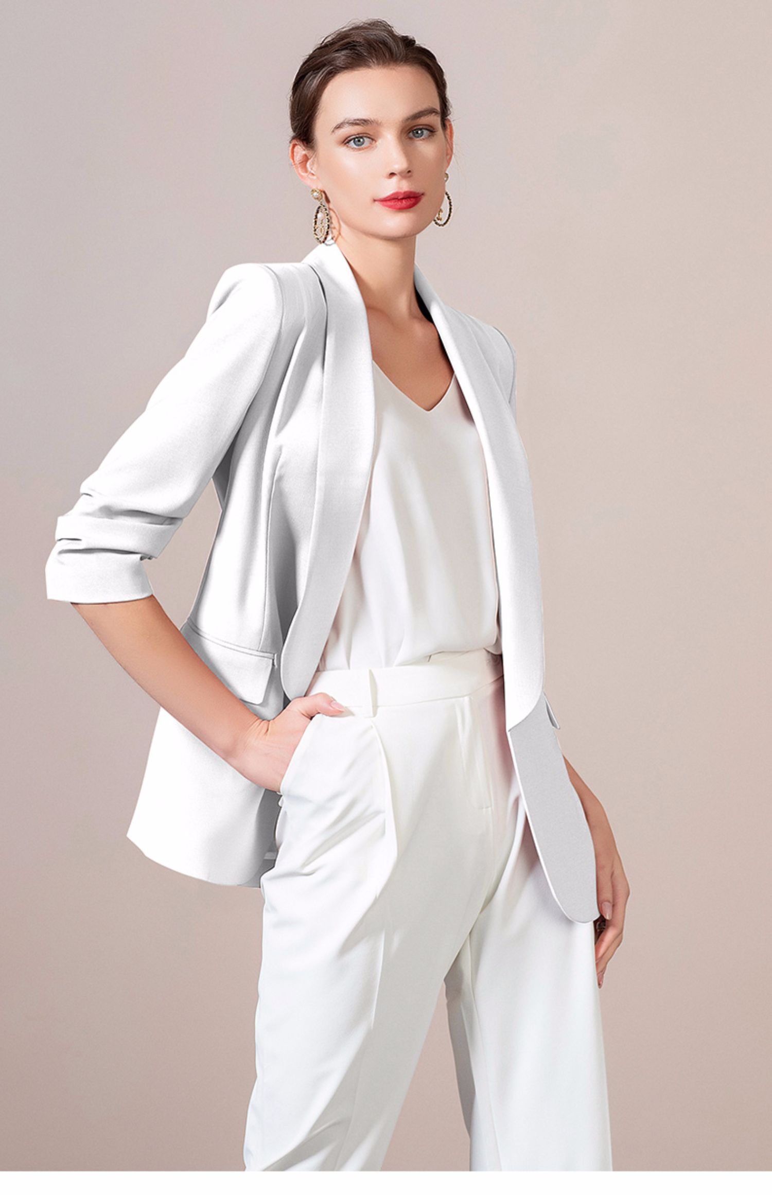 IWY/白色女西装套装短袖职业装时尚气质面试通勤正装修身工作西服 212061C1+212072P1(白)