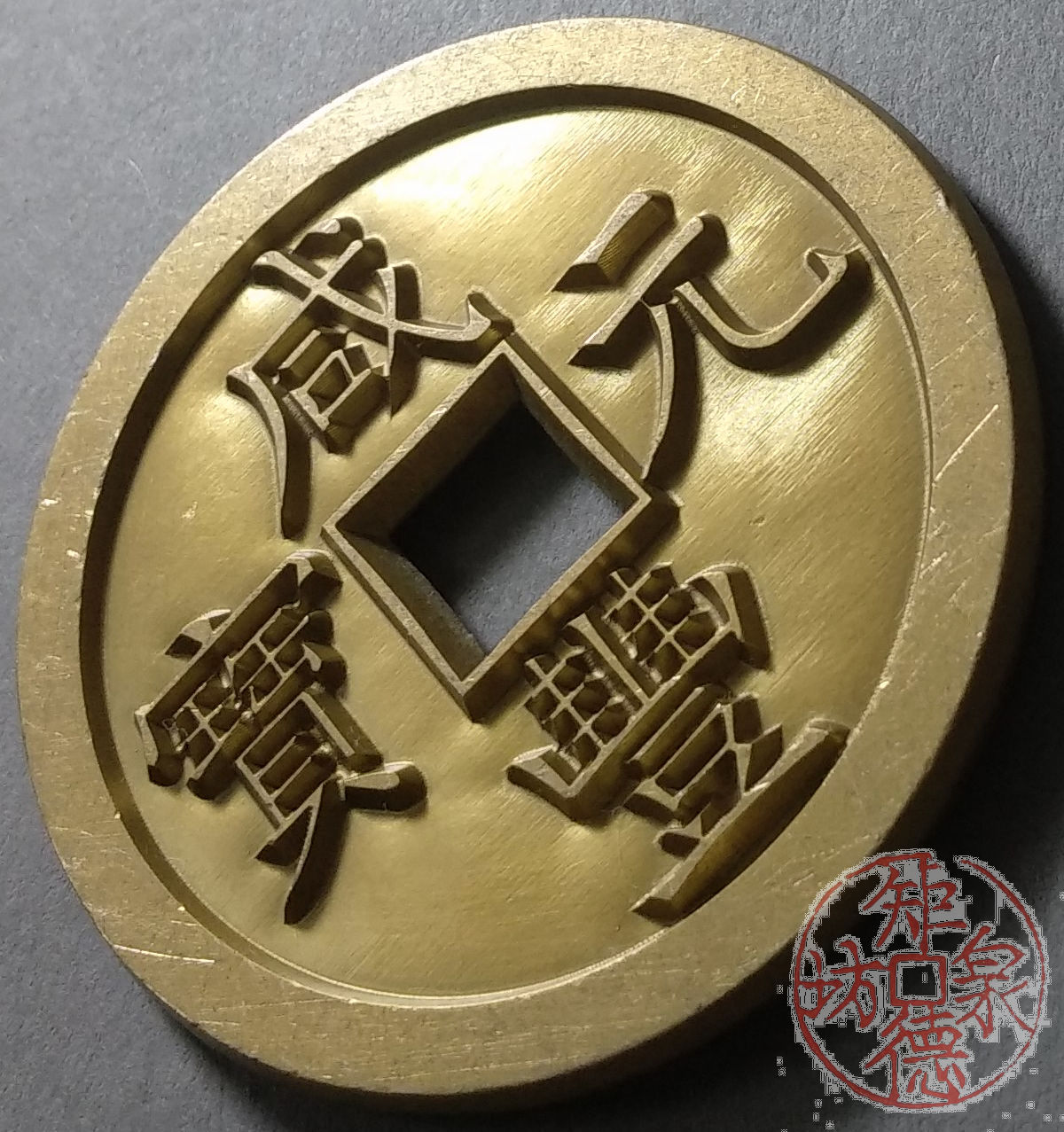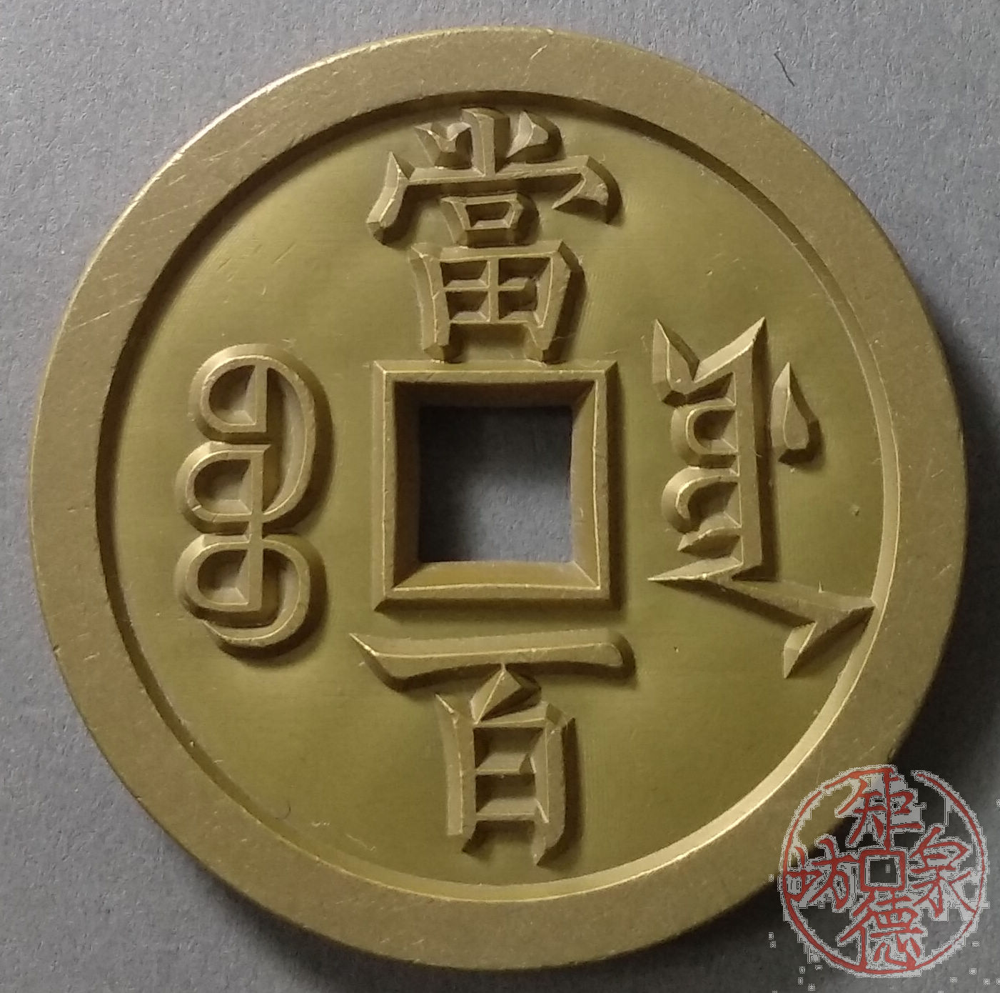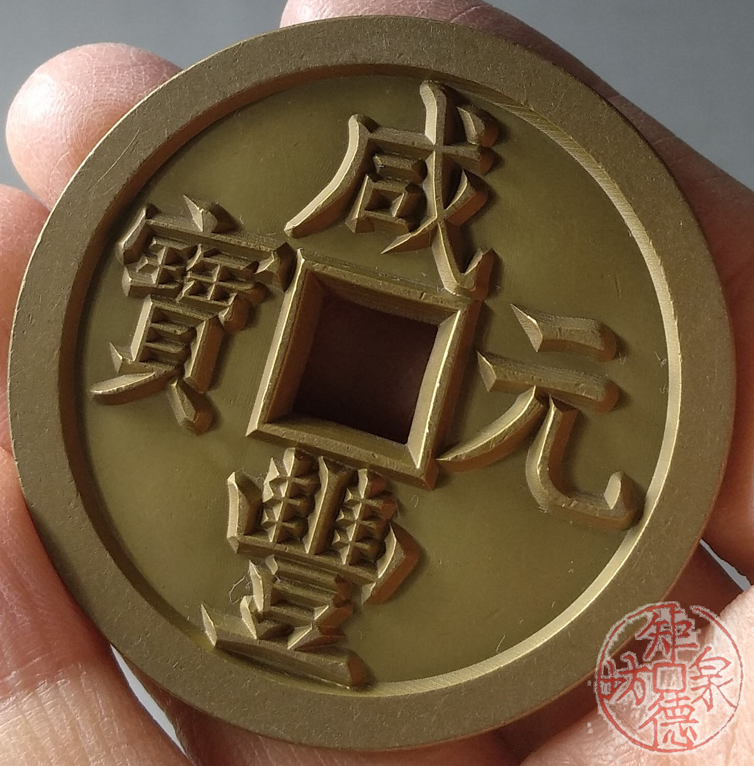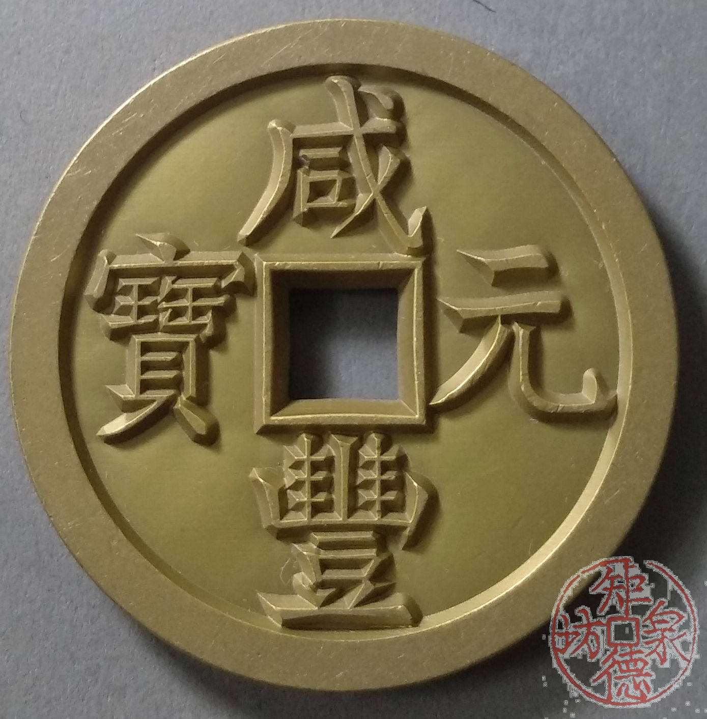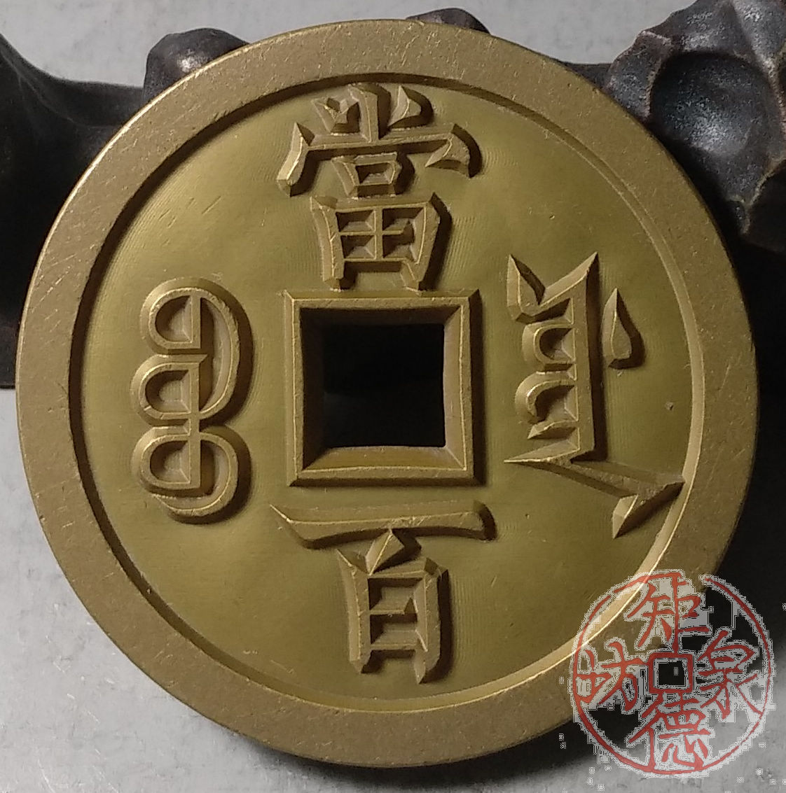 古泉书馆文创 咸丰元宝 宝源当百 雕母 文房铜镇 DM0015