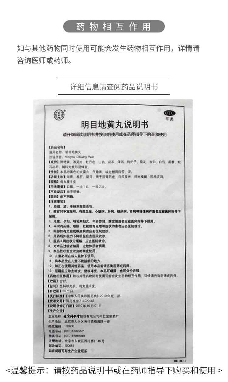 同仁堂 明目地黄丸9g*10丸