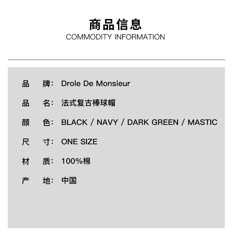 Drole De Monsieur La Casquette Slogan 法式复古经典标语棒球帽
