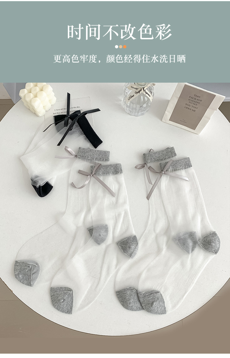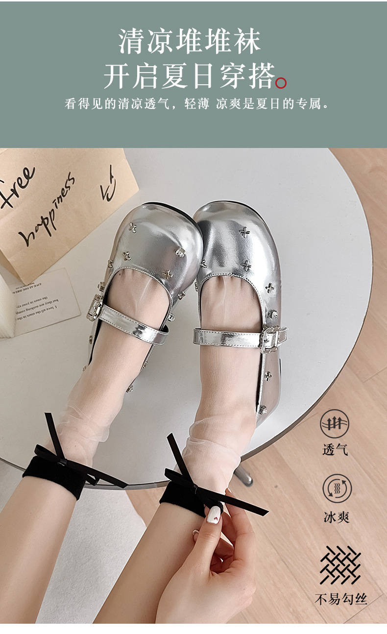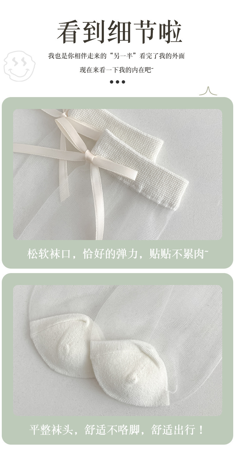 【清凉堆堆袜!开启夏日穿搭】玻璃丝袜子女春夏季薄款卡丝袜轻薄透气百搭可爱蝴蝶结花边女袜子。ry