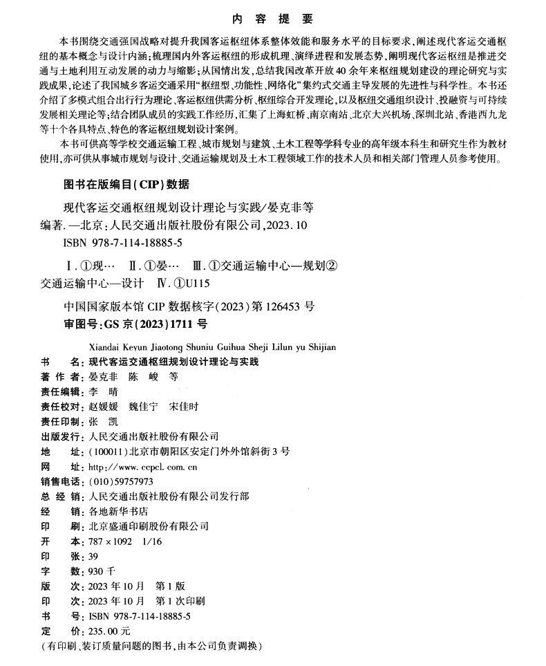 书名:现代客运交通枢纽规划设计理论与实践