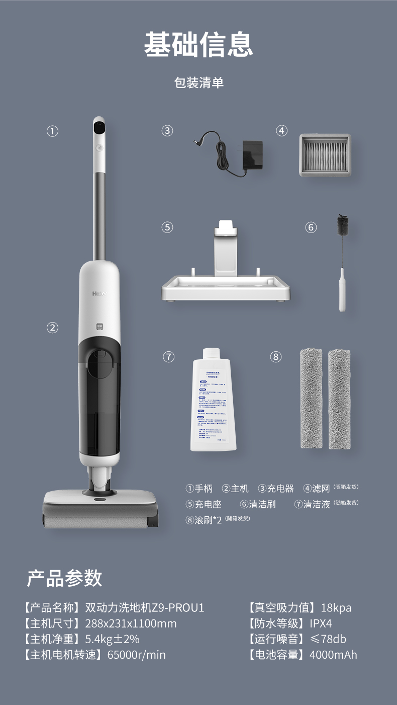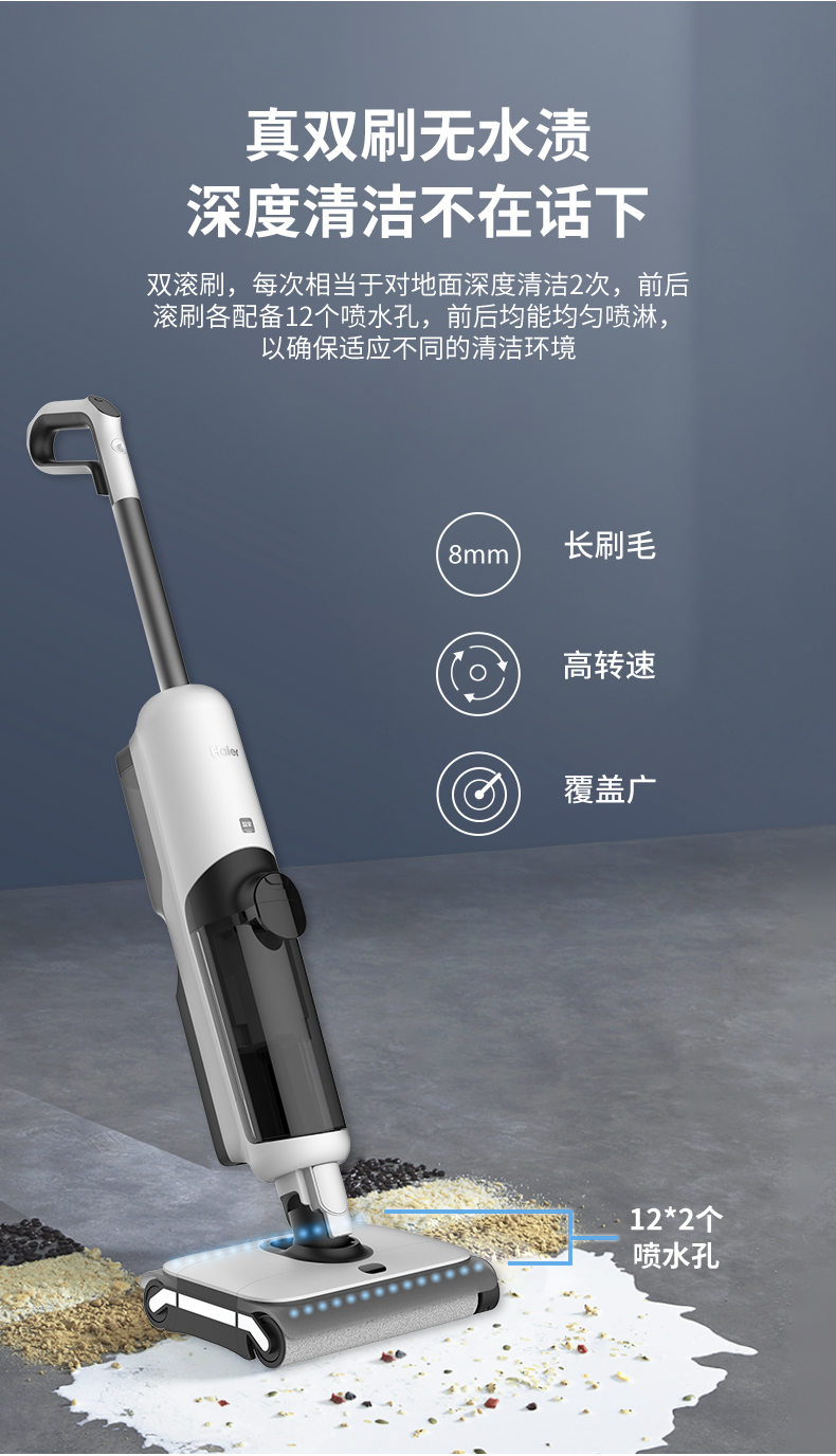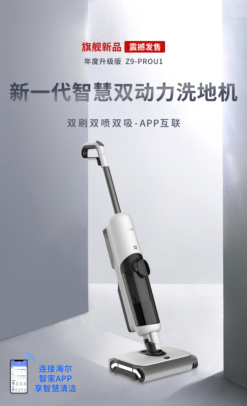 【珍珍Z9-Pro】海尔(Haier)无线智能双滚刷双动力家用洗地机Z9吸拖一体吸尘器 APP智能交互