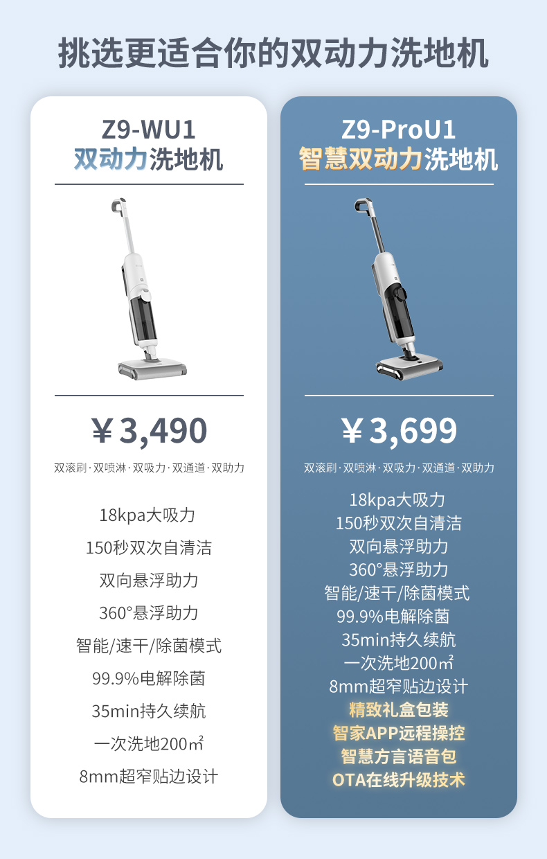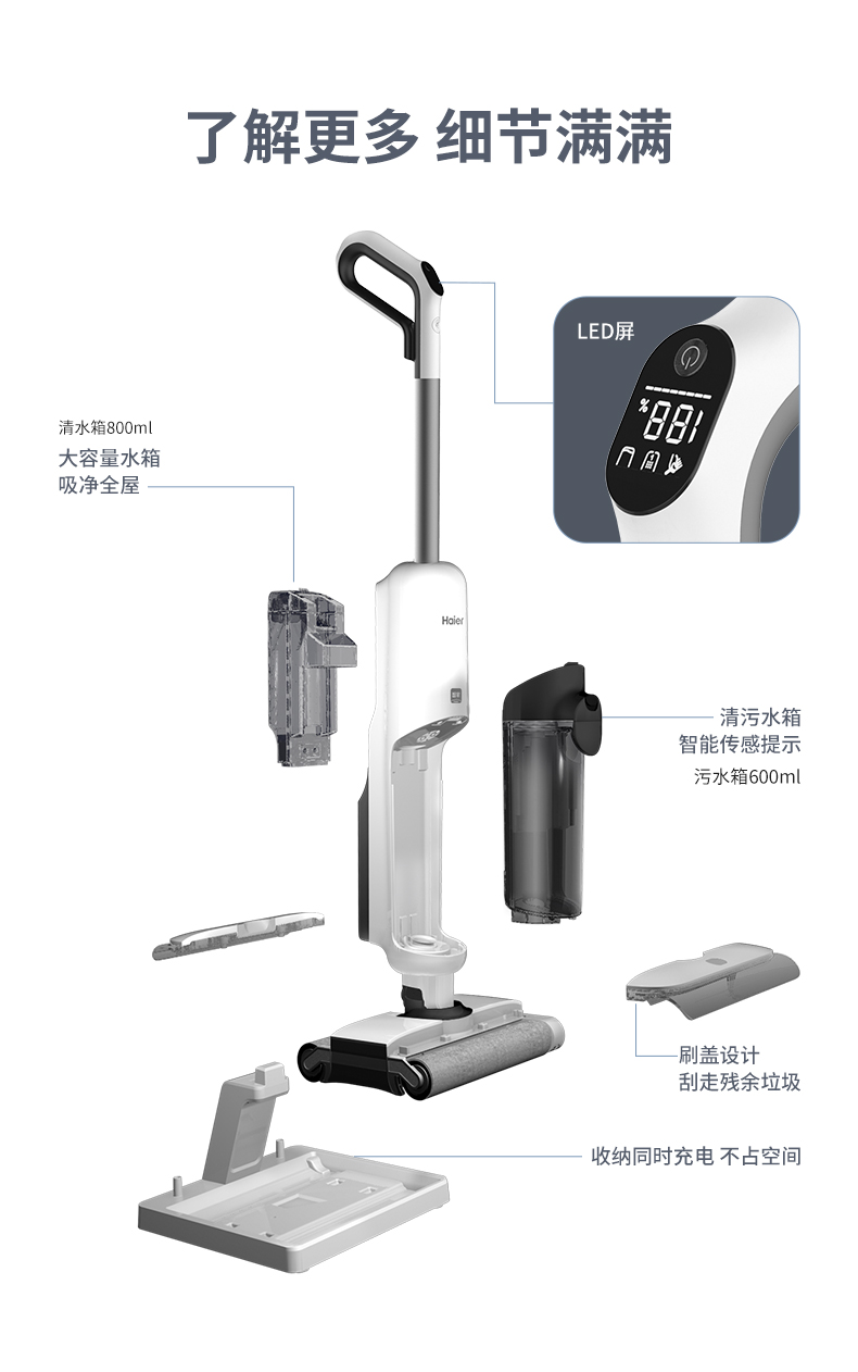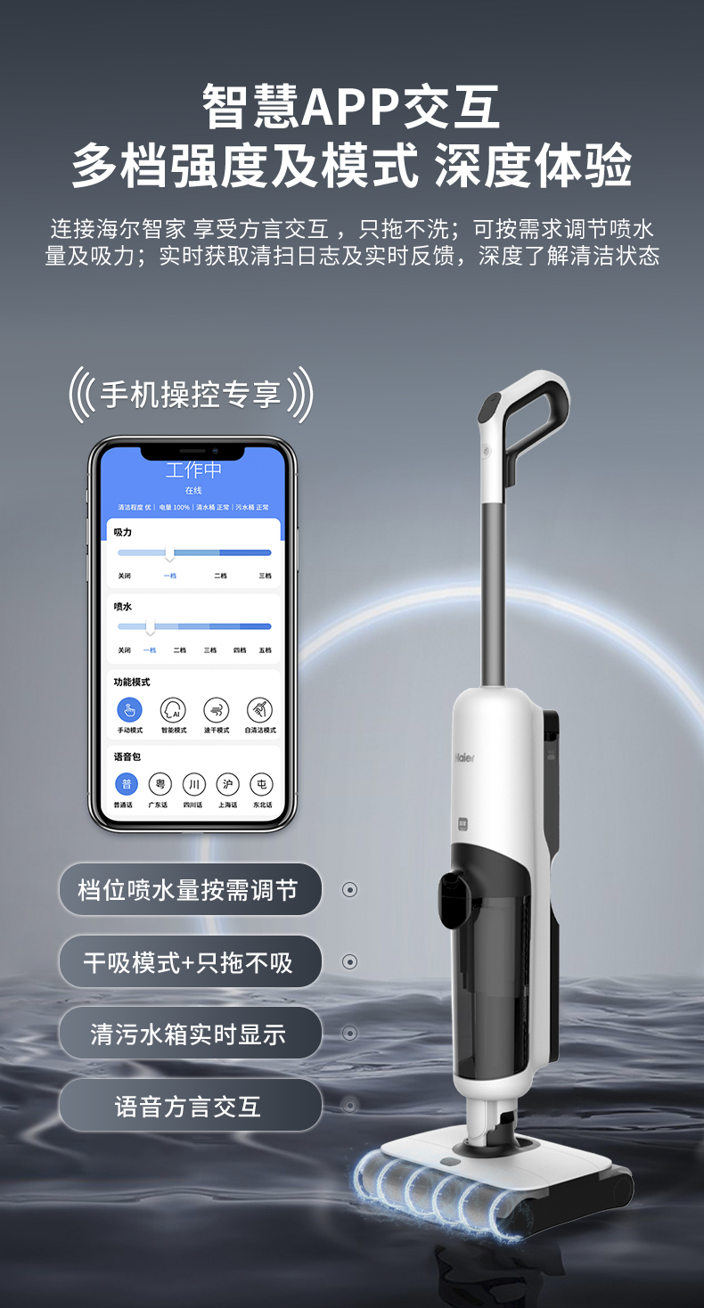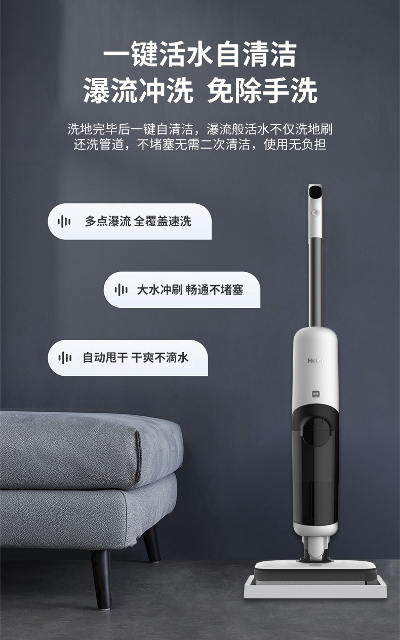 【珍珍Z9-Pro】海尔(Haier)无线智能双滚刷双动力家用洗地机Z9吸拖一体吸尘器 APP智能交互