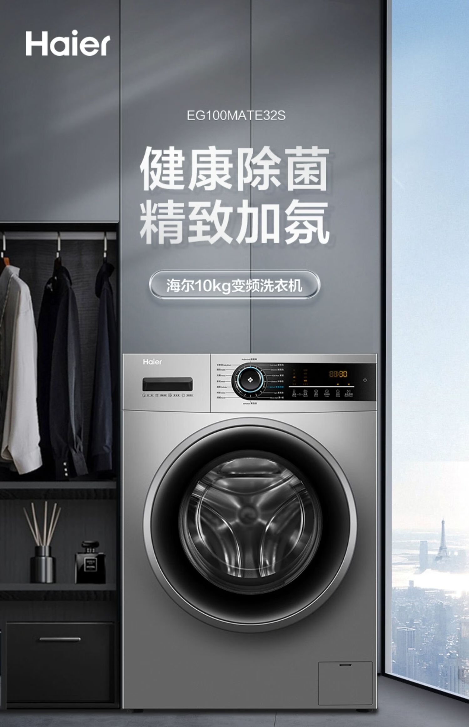 海尔10公斤 大容量 滚筒洗衣机 全自动 变频超薄 香薰除螨 EG100MATE32S
