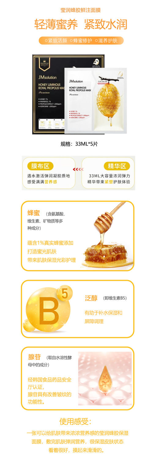【预售 急单慎拍】JM蜂胶滋养紧致弹力韩新款双仓面膜 5片/盒
