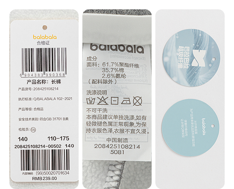巴拉巴拉balaOne童装儿童加绒运动裤子男童女童长裤2025冬季新款