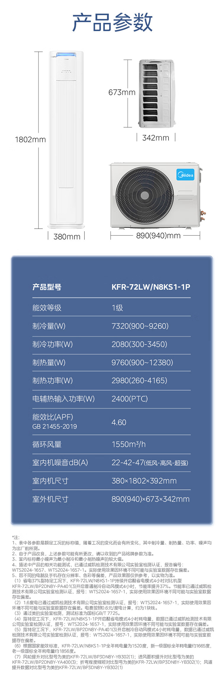 美的(Midea)空调 KFR-72LW/N8KS1-1P 酷省电Pro