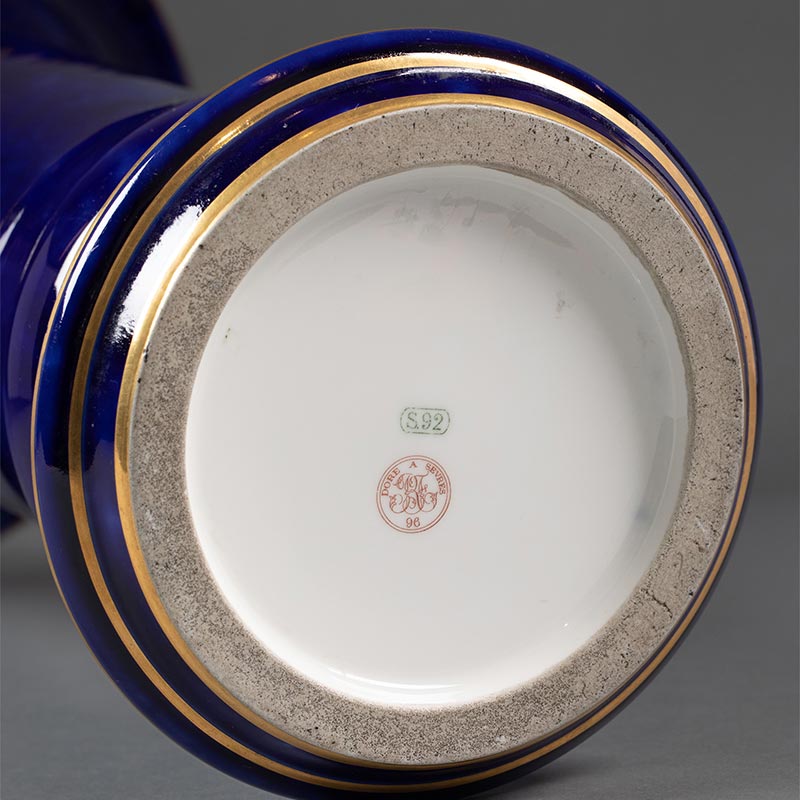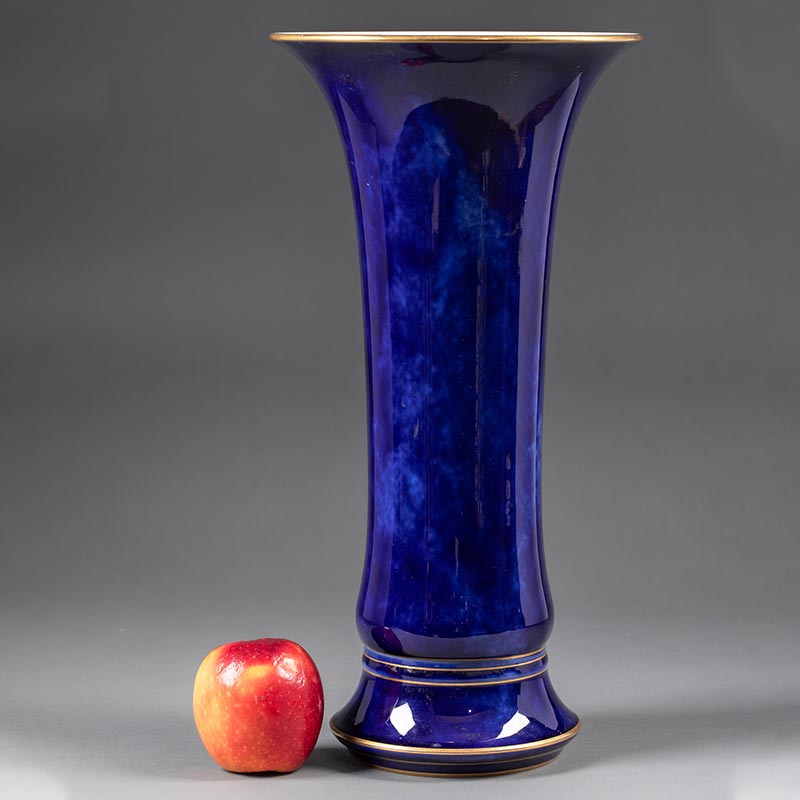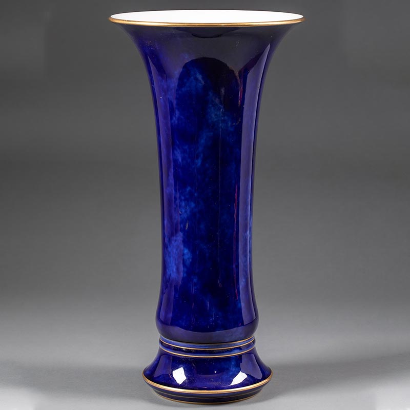 1892-1896年代法国御窑塞弗尔出品手绘描金装饰云朵蓝釉瓷花觚