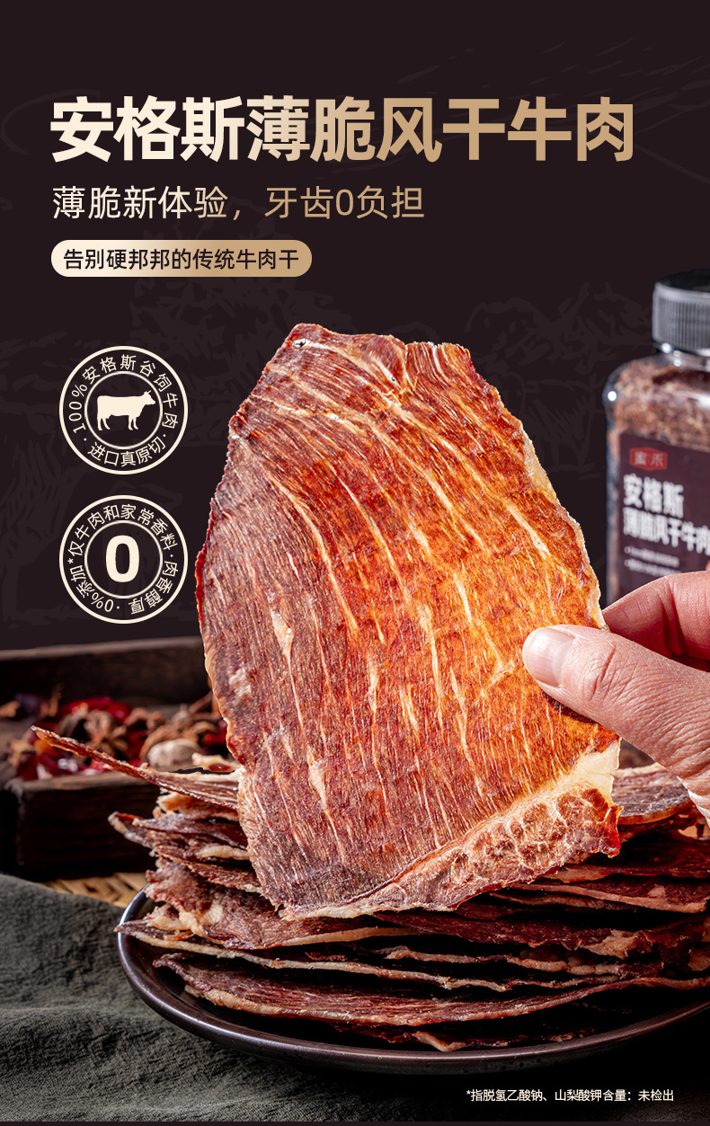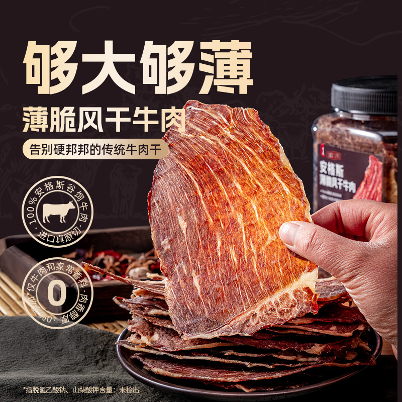 【格斯牛排脆】够大够薄高蛋白牛肉片,薄脆易嚼口满足,雪花纹理分明,奶香浓郁,好吃不油腻,越嚼越香,风干牛肉干牛脆脆即食解馋小零食品QQ