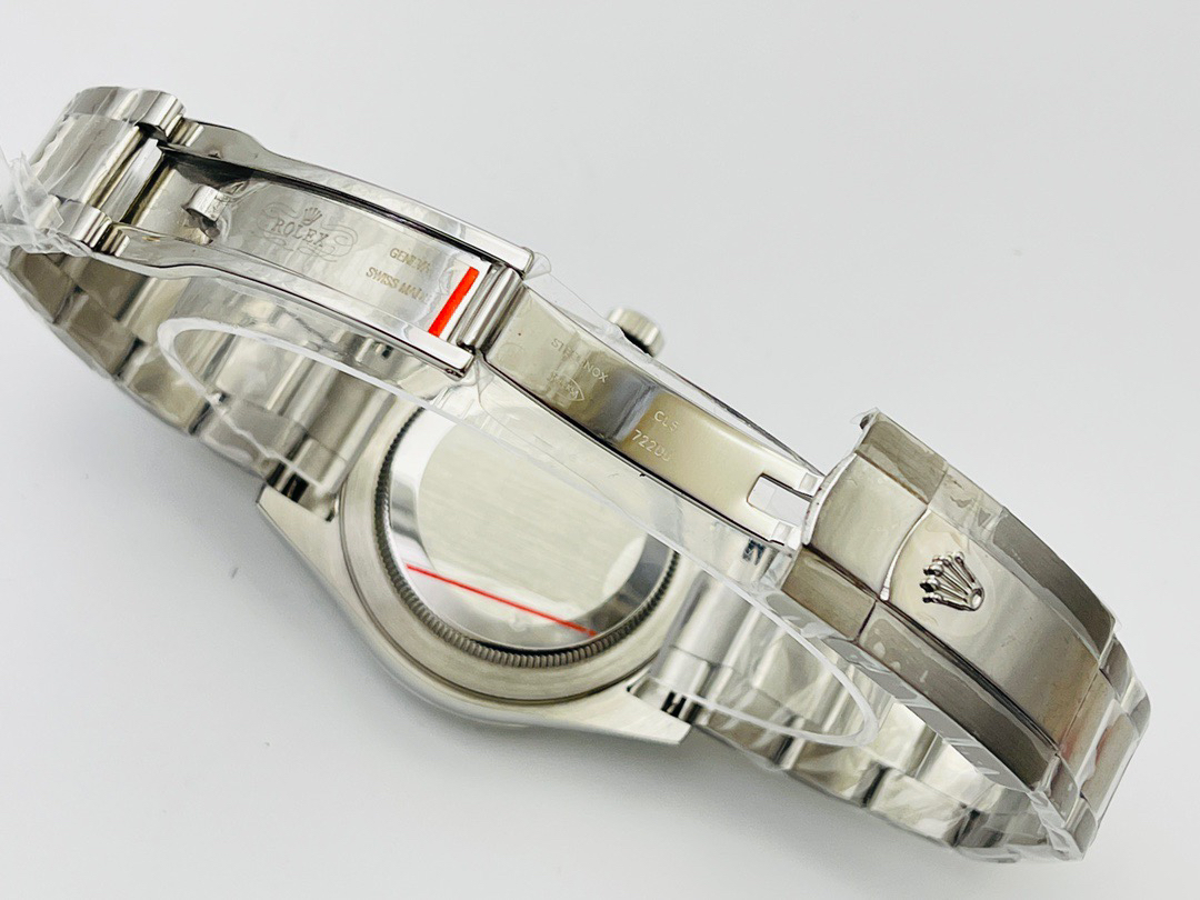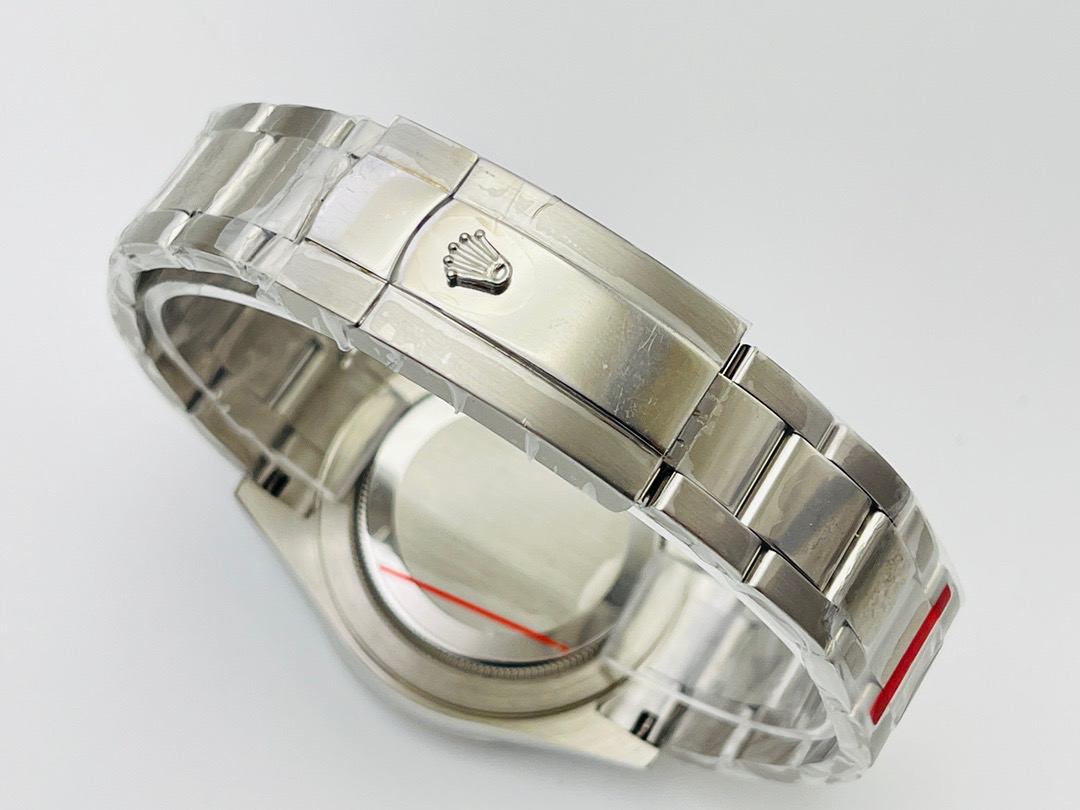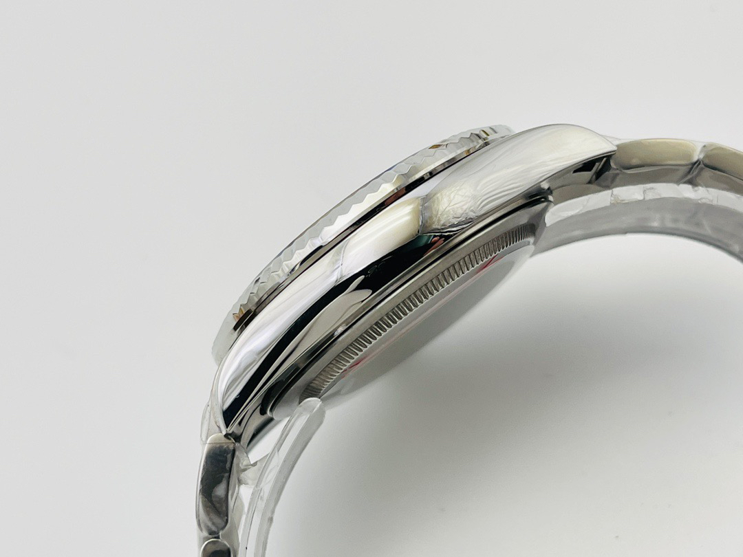 表圈采用劳力士Ring Command三角坑纹,旋转外圈可调转月份功能!