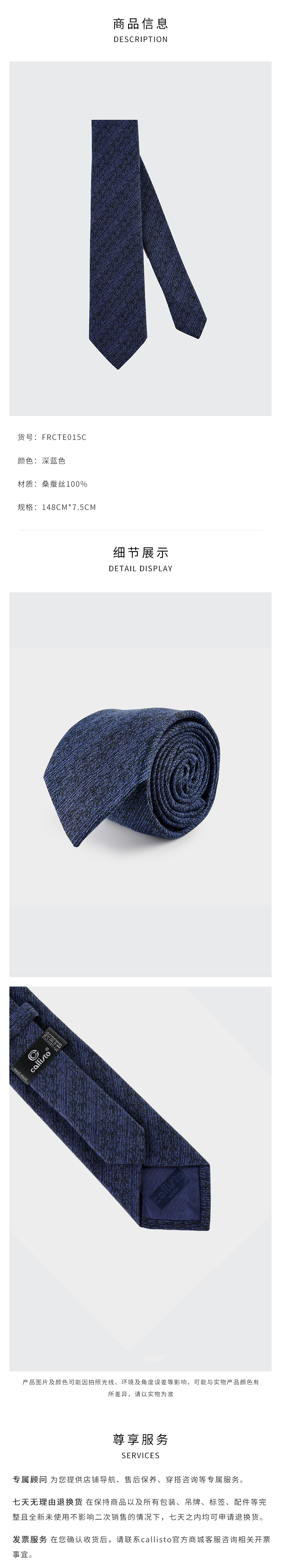 callisto深蓝色全桑蚕丝领带 FRCTE015C