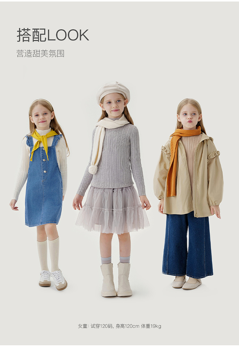 【绵羊毛】马克珍妮女童花边领毛衣儿童百搭打底衫秋冬新款241678