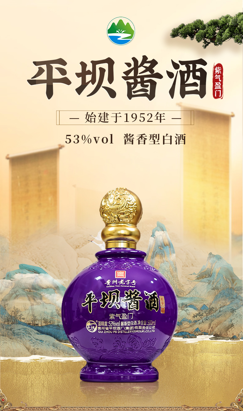 平坝酱酒·紫气盈门 53度酱香型白酒 500ml*6瓶/箱 精美礼盒